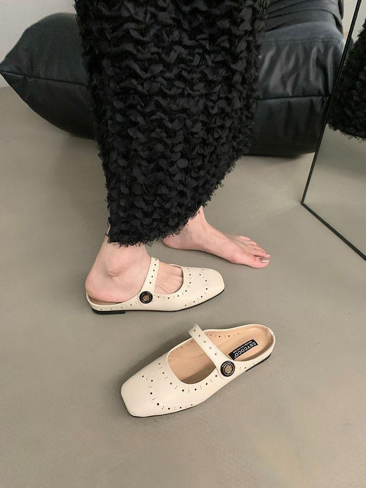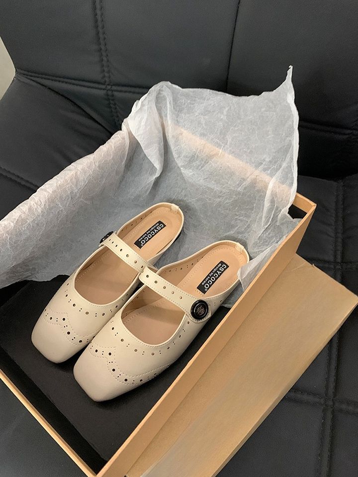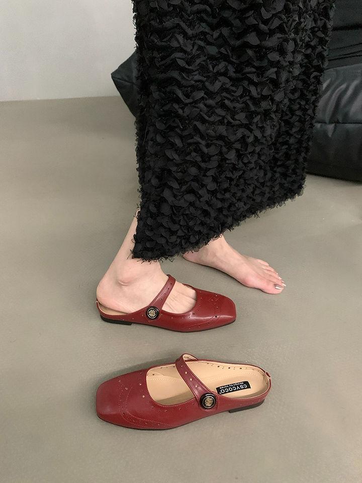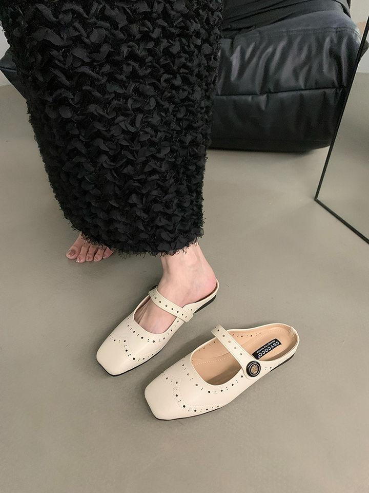 Sandalias Planas Talladas Vintage para Mujer Verano Nuevo Punta Cuadrada Estilo Francés Vestido con Sandalias Mary Jane