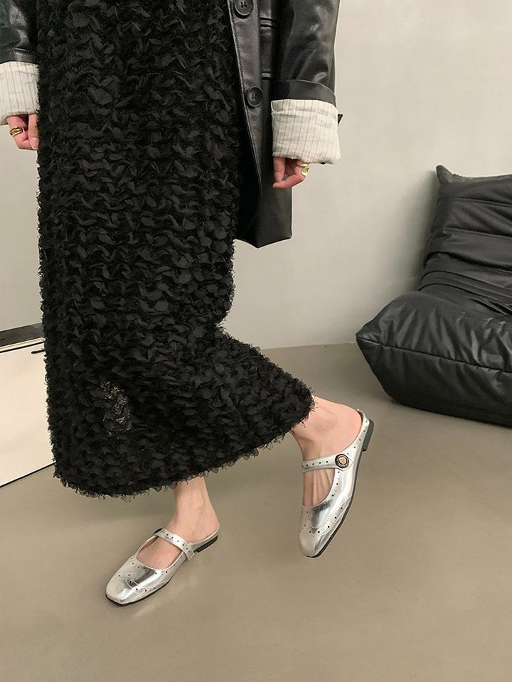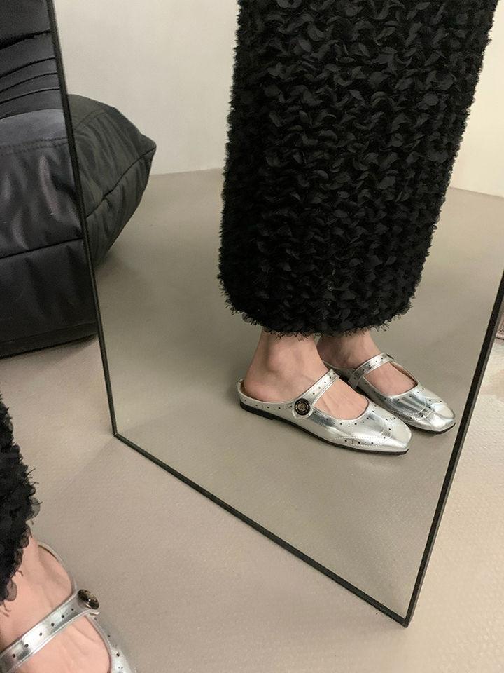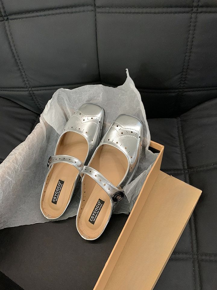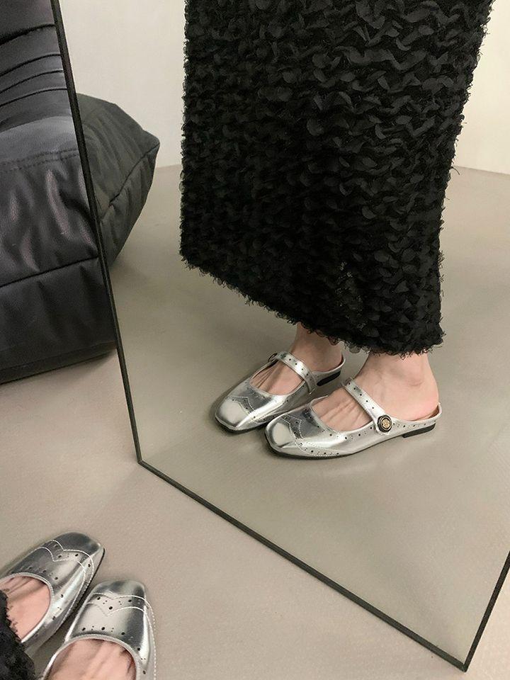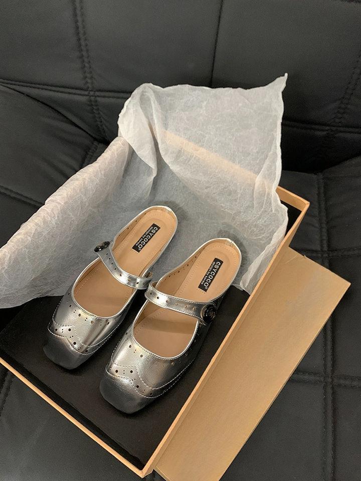 Sandalias Planas Talladas Vintage para Mujer Verano Nuevo Punta Cuadrada Estilo Francés Vestido con Sandalias Mary Jane