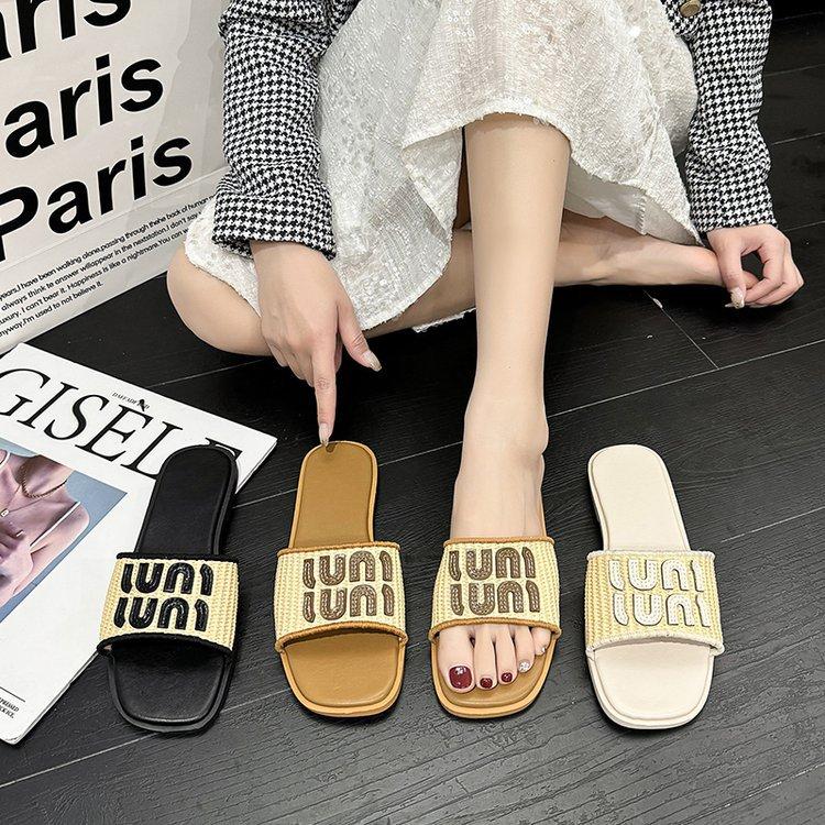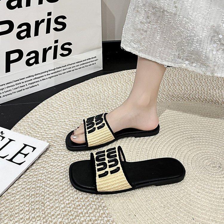 Talla grande Tipo Zapatos Planos de Playa Sandalias de Vestir Simples para Mujer Verano 2025 Nuevo Pantuflas de Exterior para Mujer