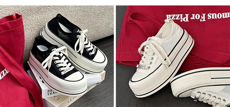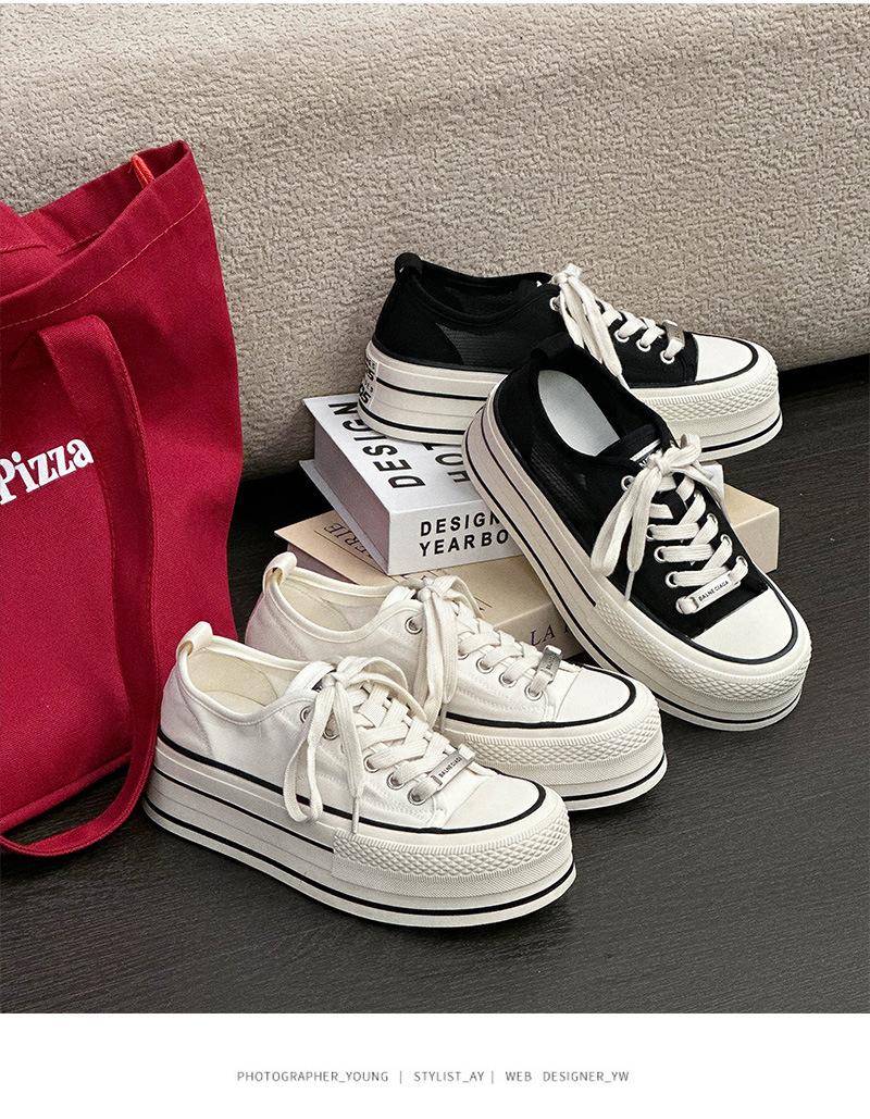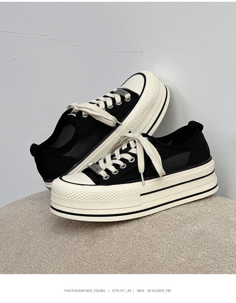 Zapatos Blancos de Plataforma Pequeña para Mujer 2025 Verano Nuevo Estilo Malla Transpirable Estilo Coreano Versátiles Zapatos Casuales