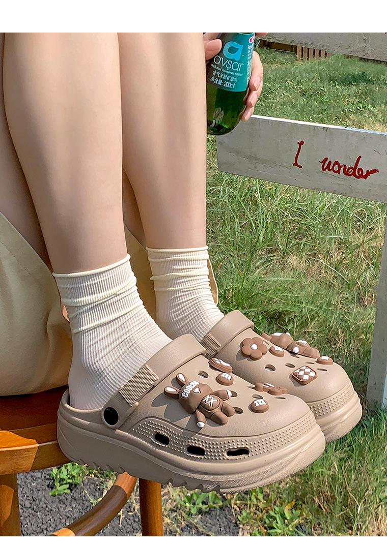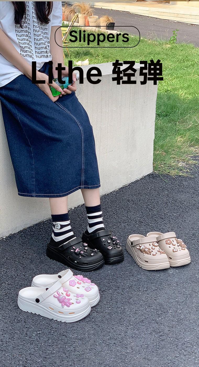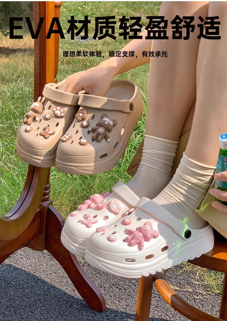 Sandalias Baotou de suela gruesa con agujeros de EVA para mujer, calzado de verano 2025, de tiro alto, antideslizantes, con dibujos animados
