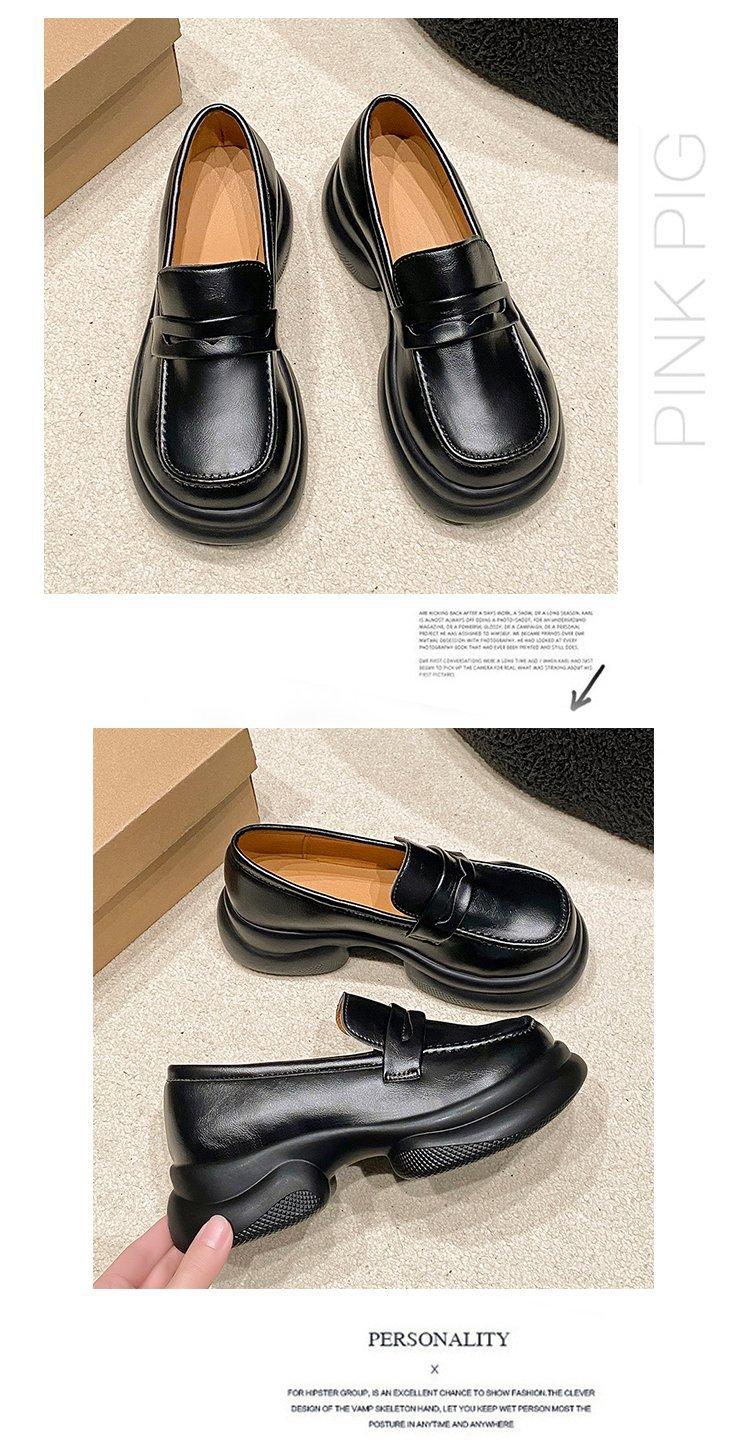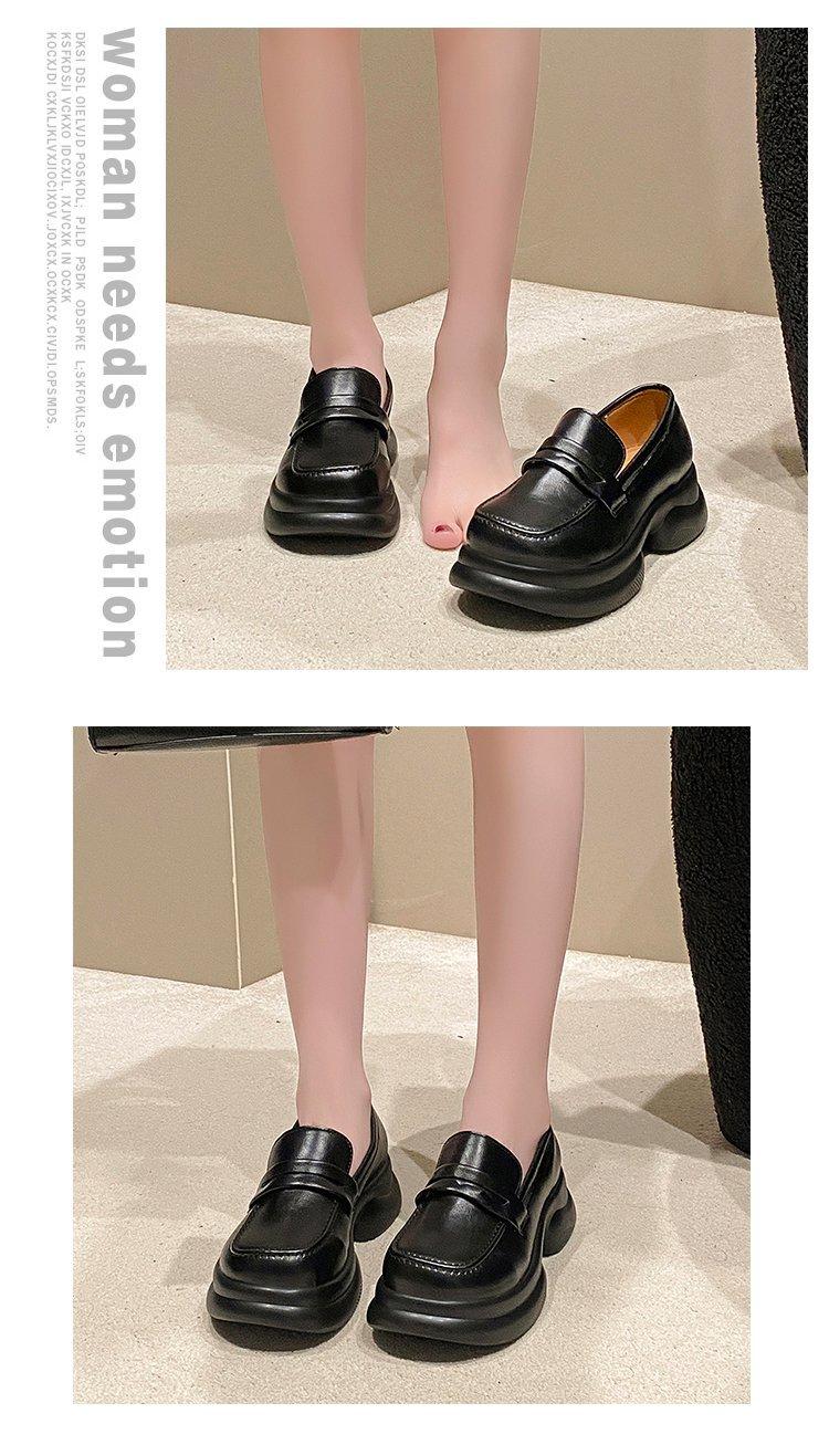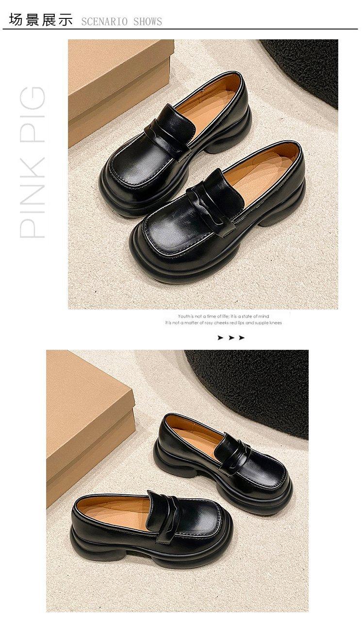 Mocasines de Tacón Grueso y Suela Gruesa para Mujer Primavera 2025 Nuevo Estilo Británico Slip-On Retro Plataforma para Viajero Zapatos Pequeños de Cuero