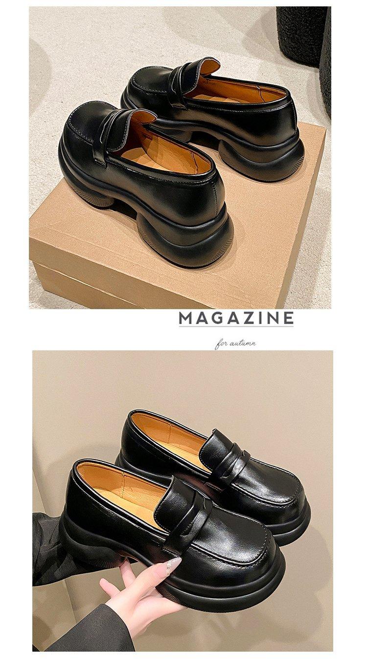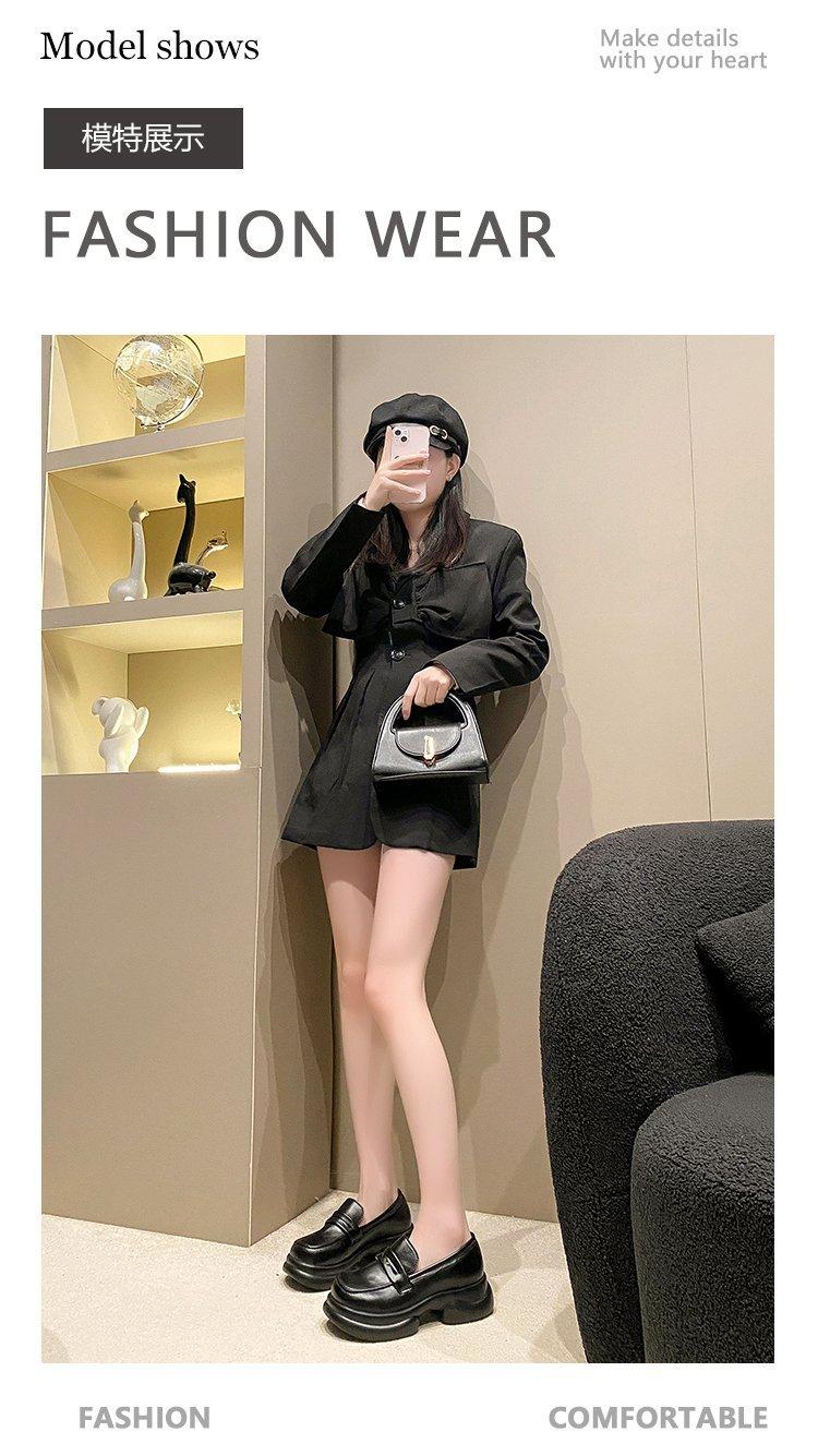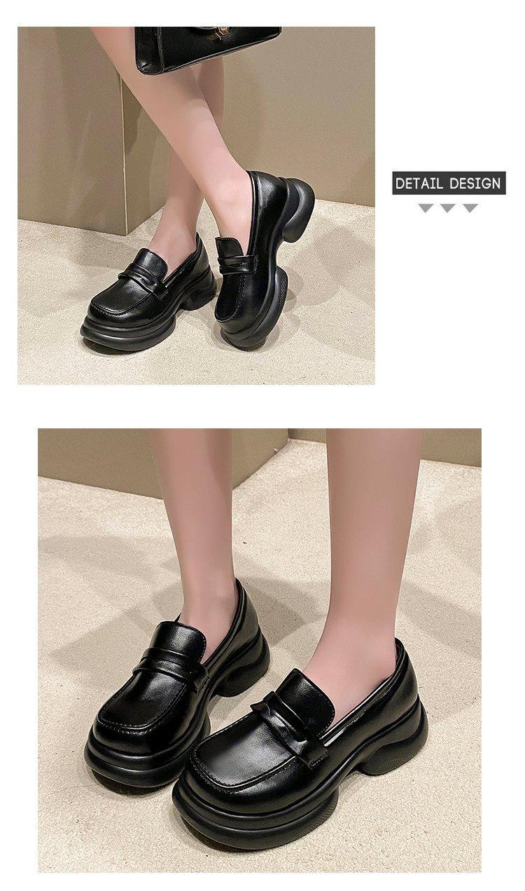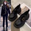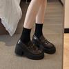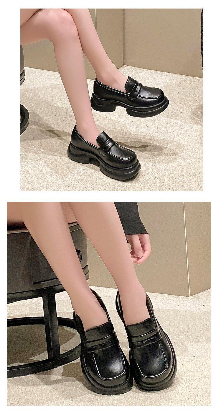 Mocasines de Tacón Grueso y Suela Gruesa para Mujer Primavera 2025 Nuevo Estilo Británico Slip-On Retro Plataforma para Viajero Zapatos Pequeños de Cuero