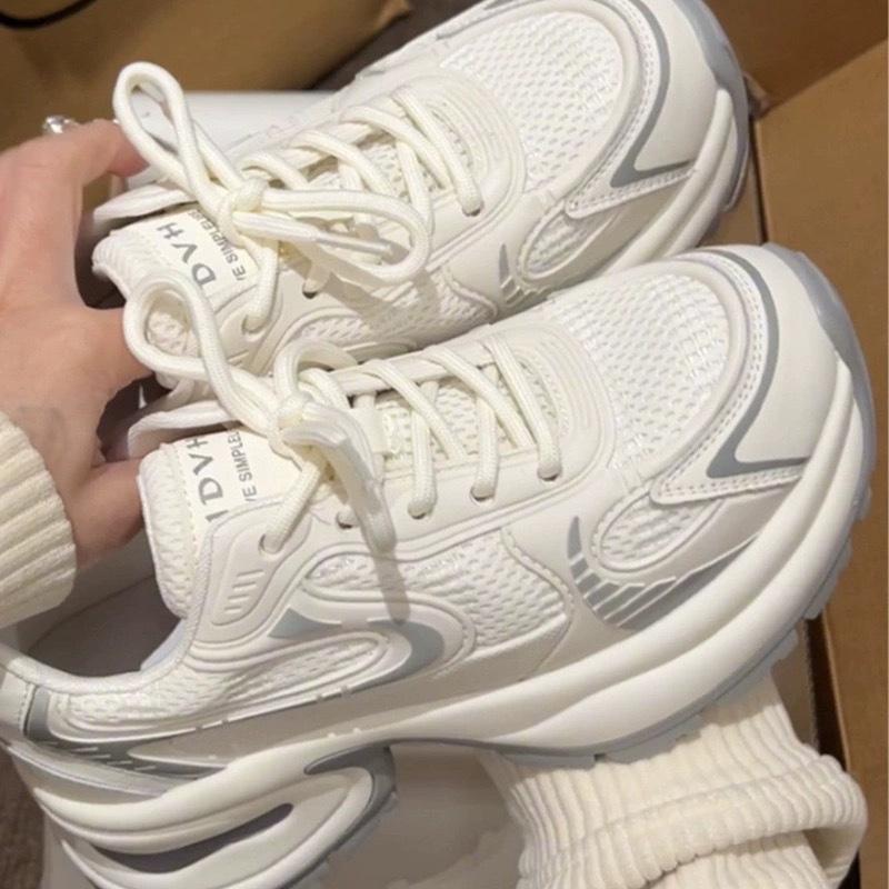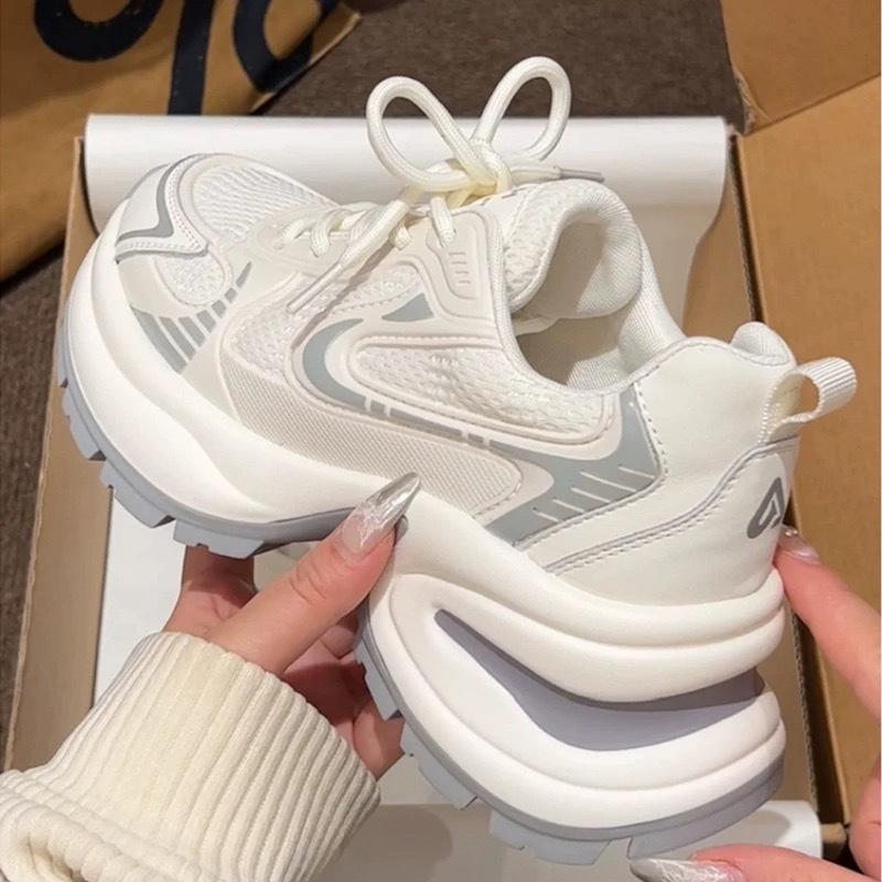 Zapatillas Torre de Suela Gruesa para Mujer 2025 Verano Nuevo Blanco Pequeño Frito Calle Aumentado Delgadas Malla Transpirable
