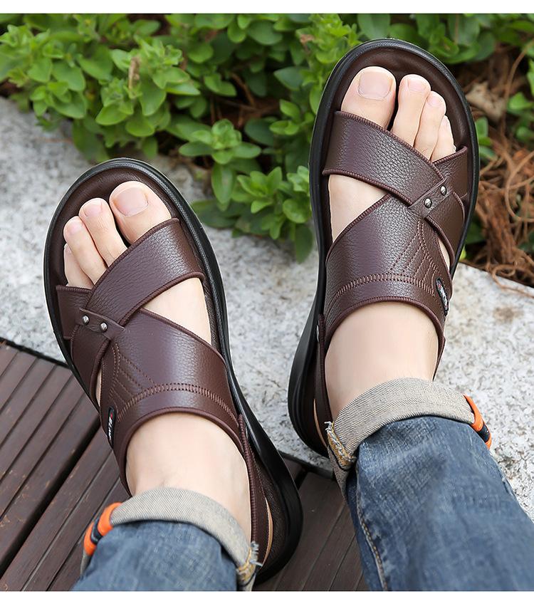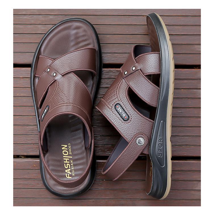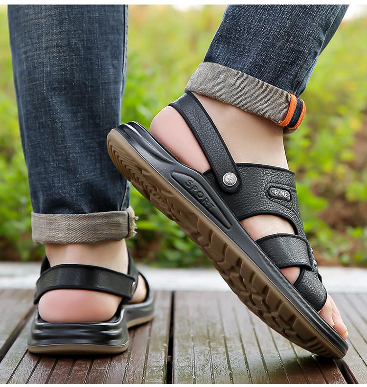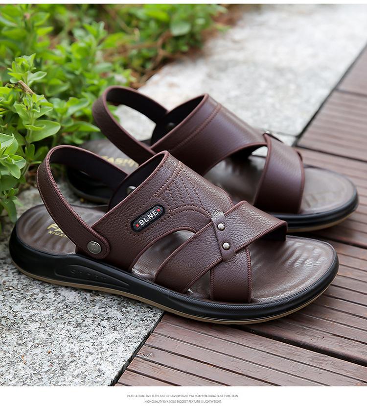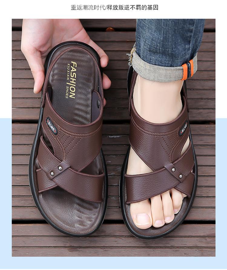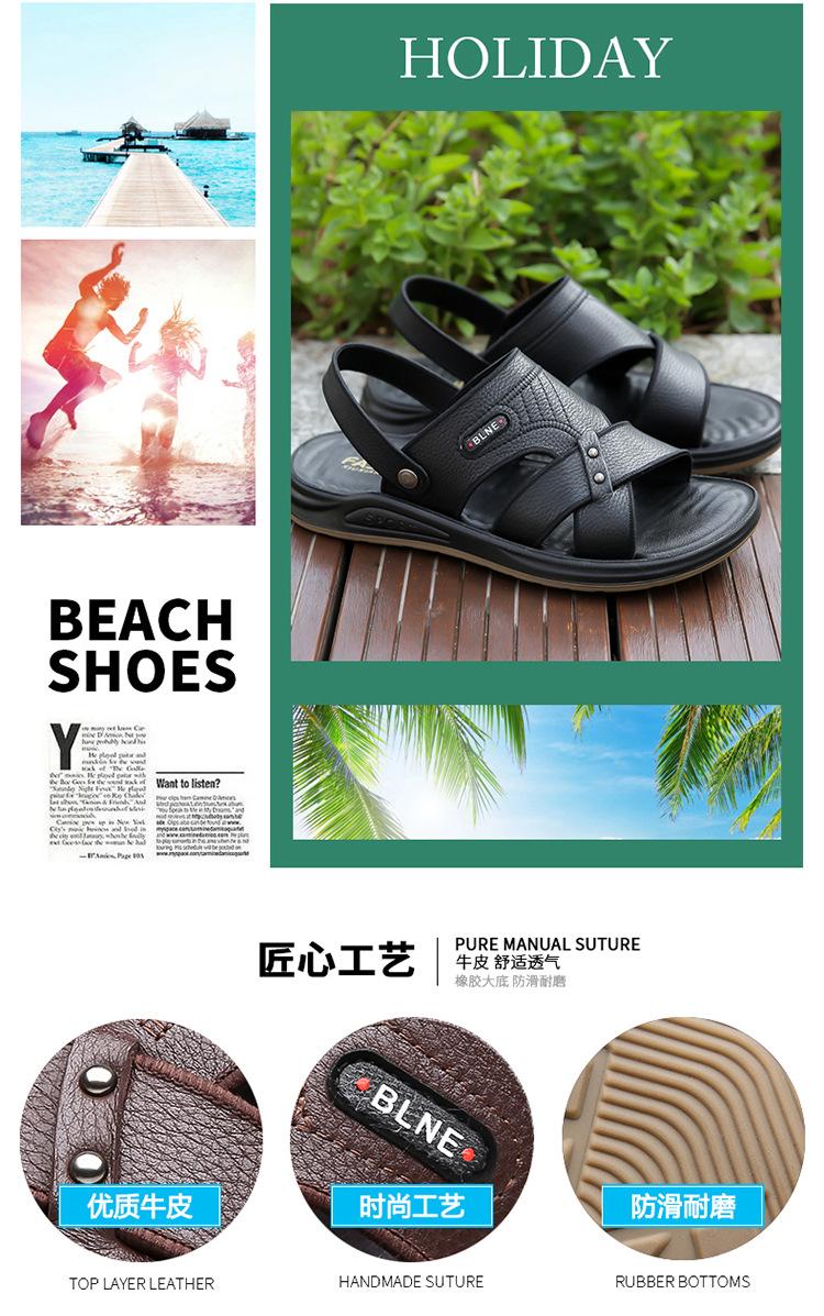 Sandalias y pantuflas informales transfronterizas de doble uso para jóvenes, sandalias de playa Baita de verano con suela de piel de vaca y capa superior para hombre.