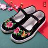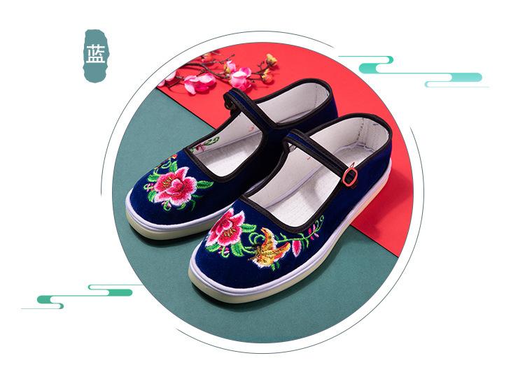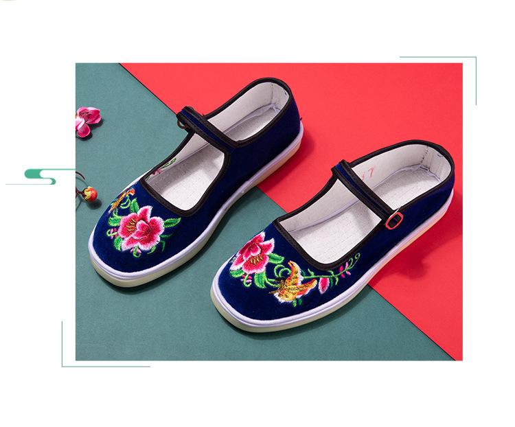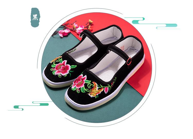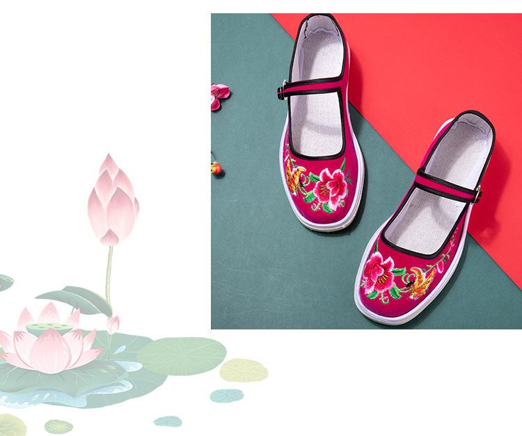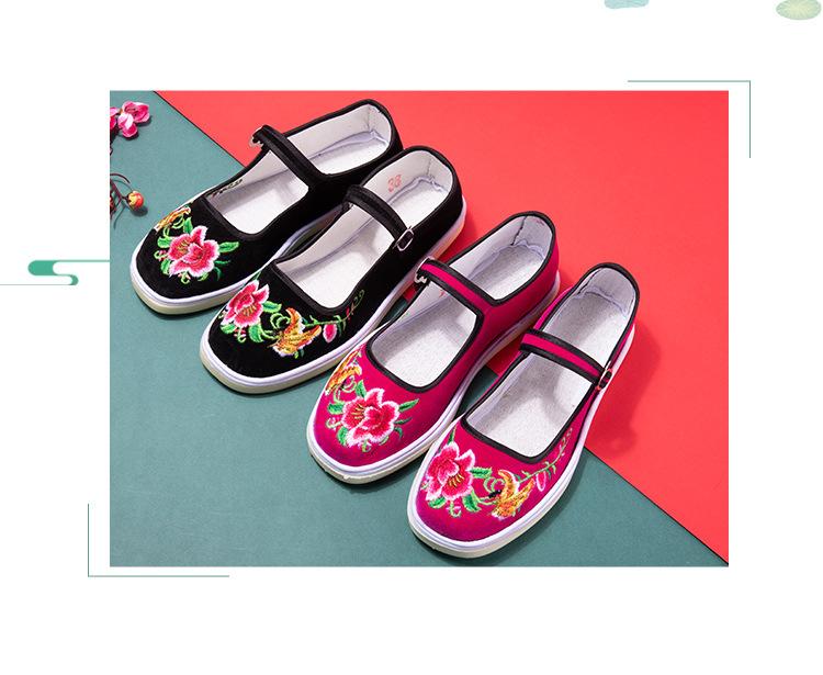 Zapatos de tela antiguos de Beijing para mujer, con bordado de fénix en color, estilo antiguo chino, étnicos, Hanfu, antideslizantes, para baile cuadrado.