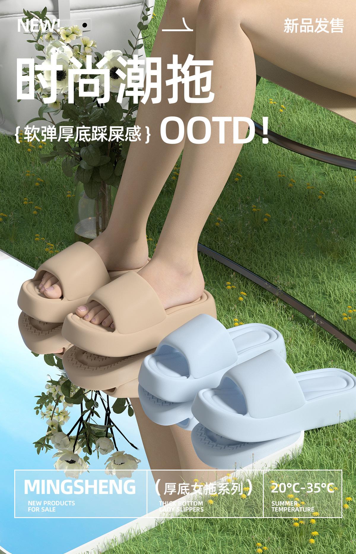 Nuevas zapatillas de suela gruesa con aumento de altura para mujer, para el hogar, de verano, sencillas, combinables, transpirables y antideslizantes, para uso exterior.