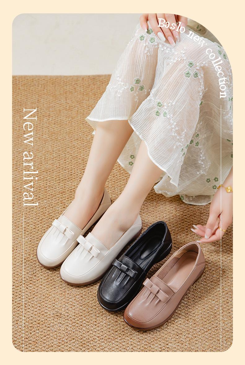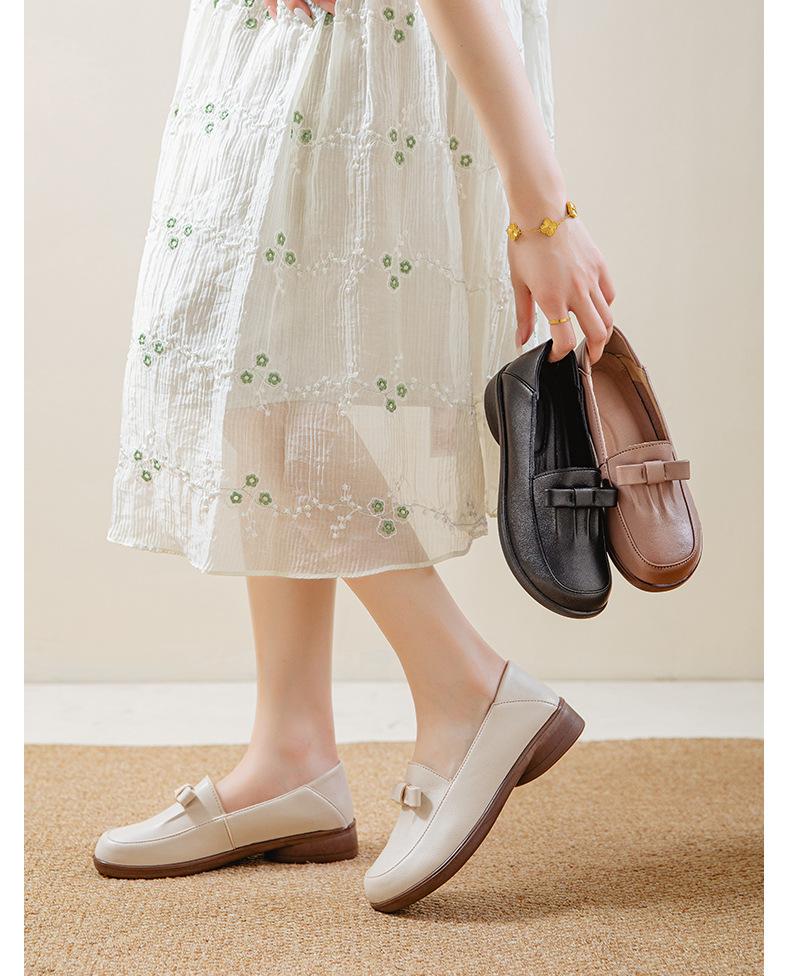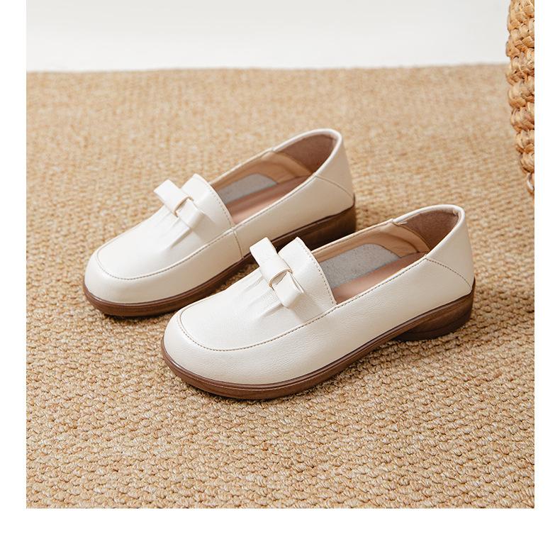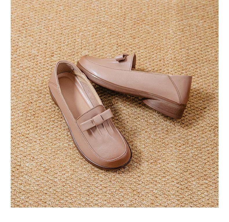 Mocasines para mujer, primavera y otoño 2025, nuevos zapatos de madre de estilo británico retro, zapatos pequeños de cuero, zapatos de guisante de un solo pie, zapatos individuales para mujer