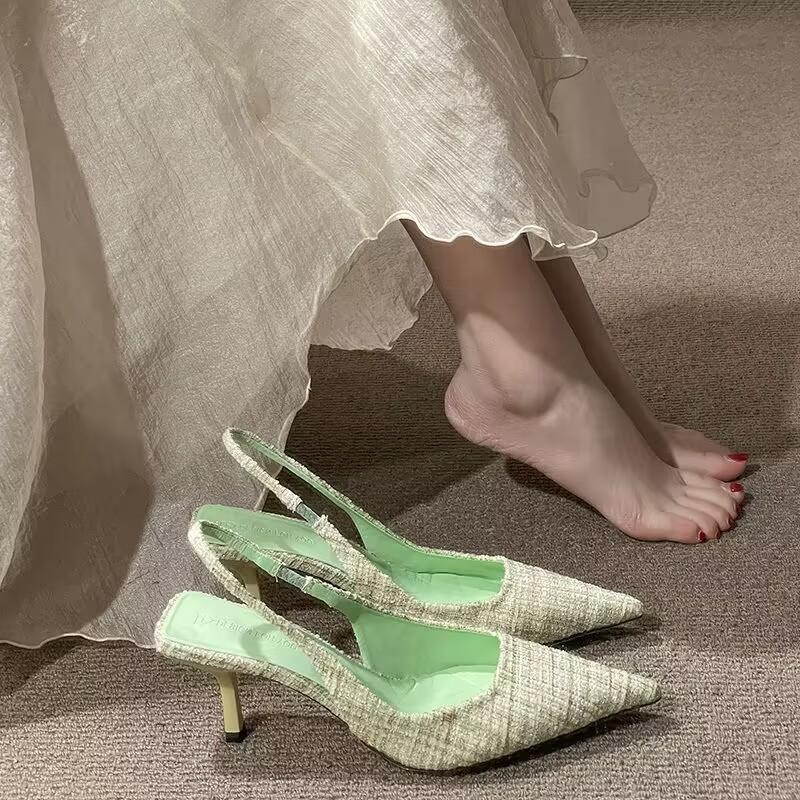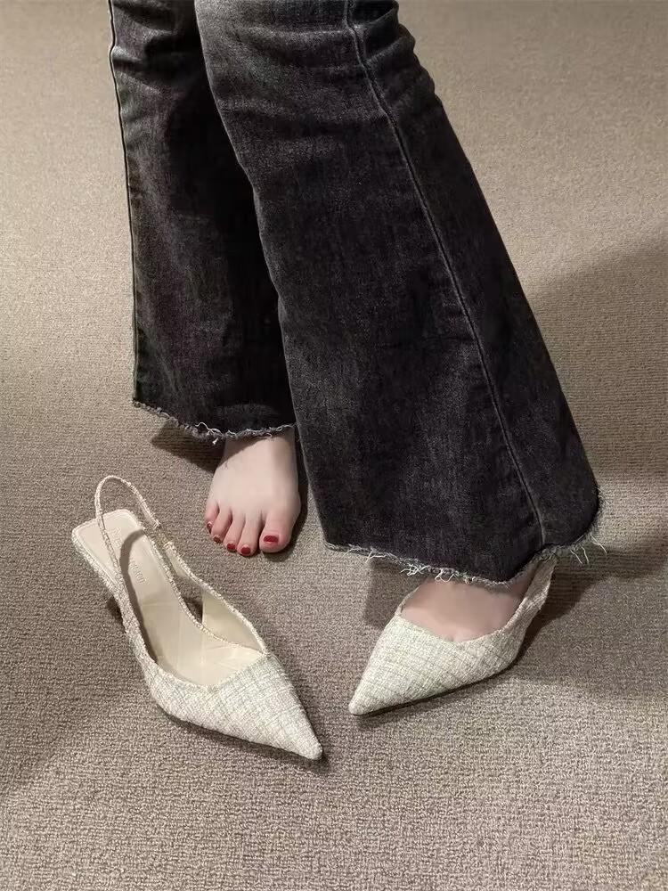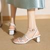 Zapatos de mujer blancos de talla grande, diseño famoso en Internet, zapatos de tacón alto, sandalias de hadas de tacón medio para mujer con Baotou