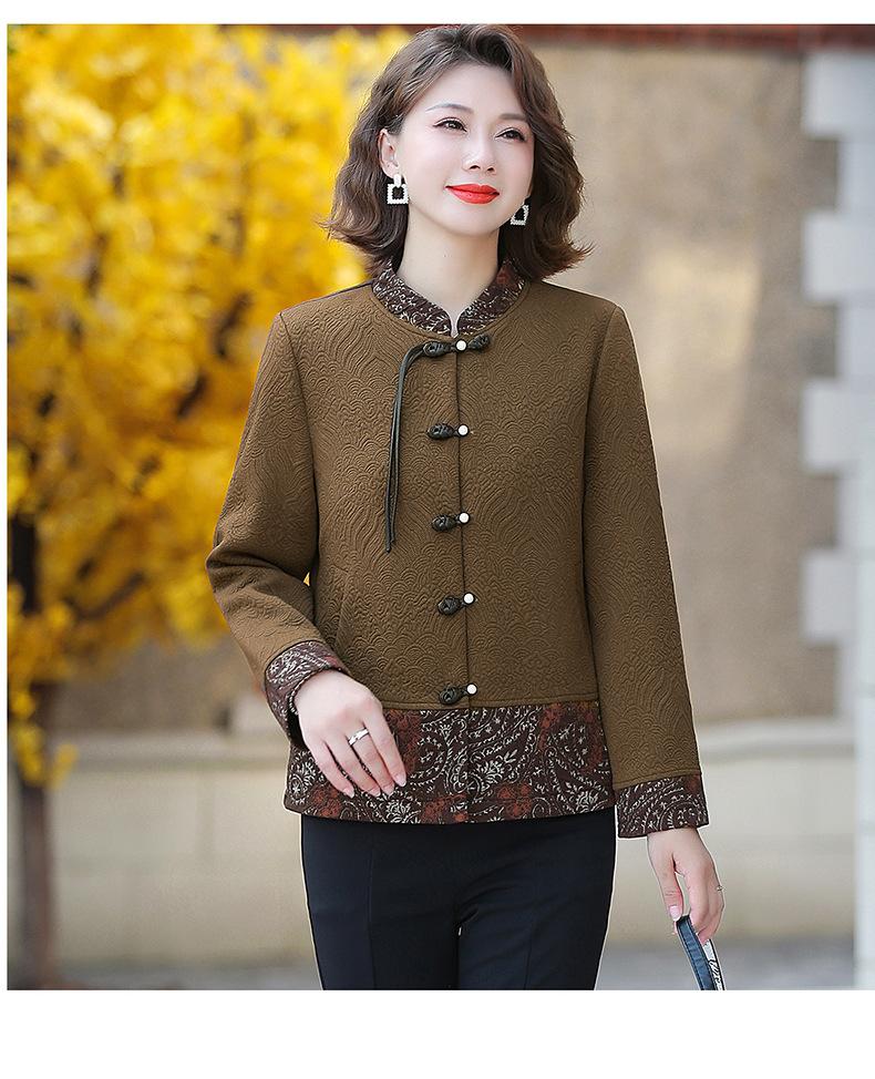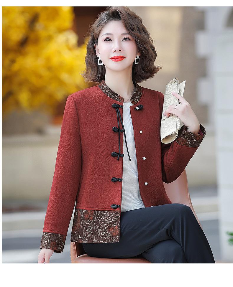 Abrigo de madre de mediana edad para mujer, primavera y otoño, estilo occidental, nuevo abrigo de estilo nacional chino para personas de mediana edad y mayores de 50 años, traje Tang de otoño