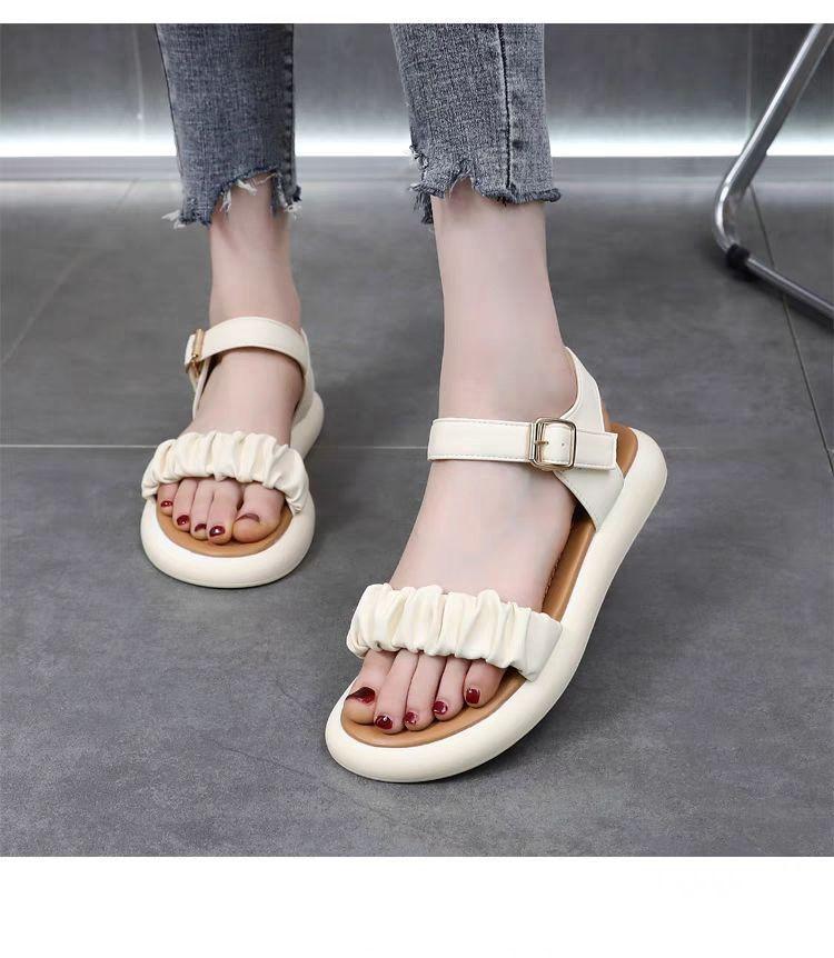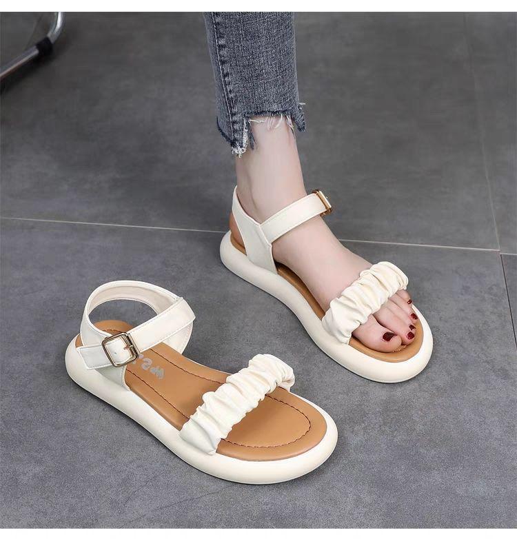 Sandalias planas de verano para mujer, estilo 2025, con punta abierta, hebilla y suela suave, cómodas y antideslizantes, para playa.