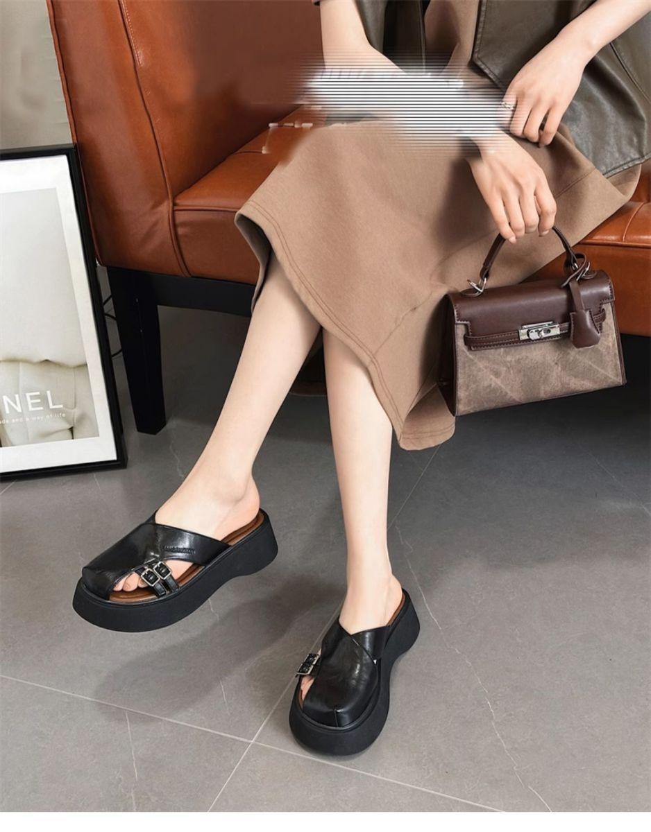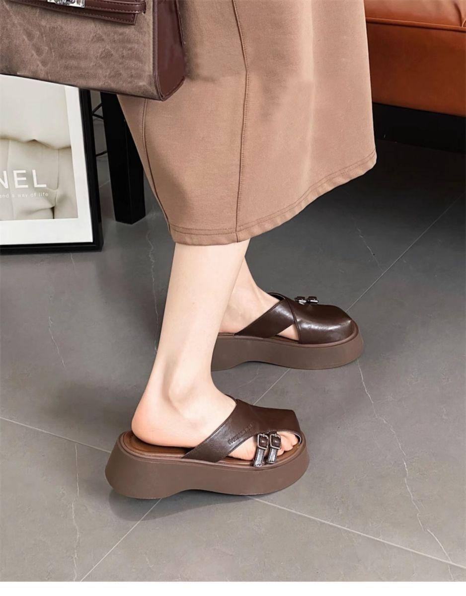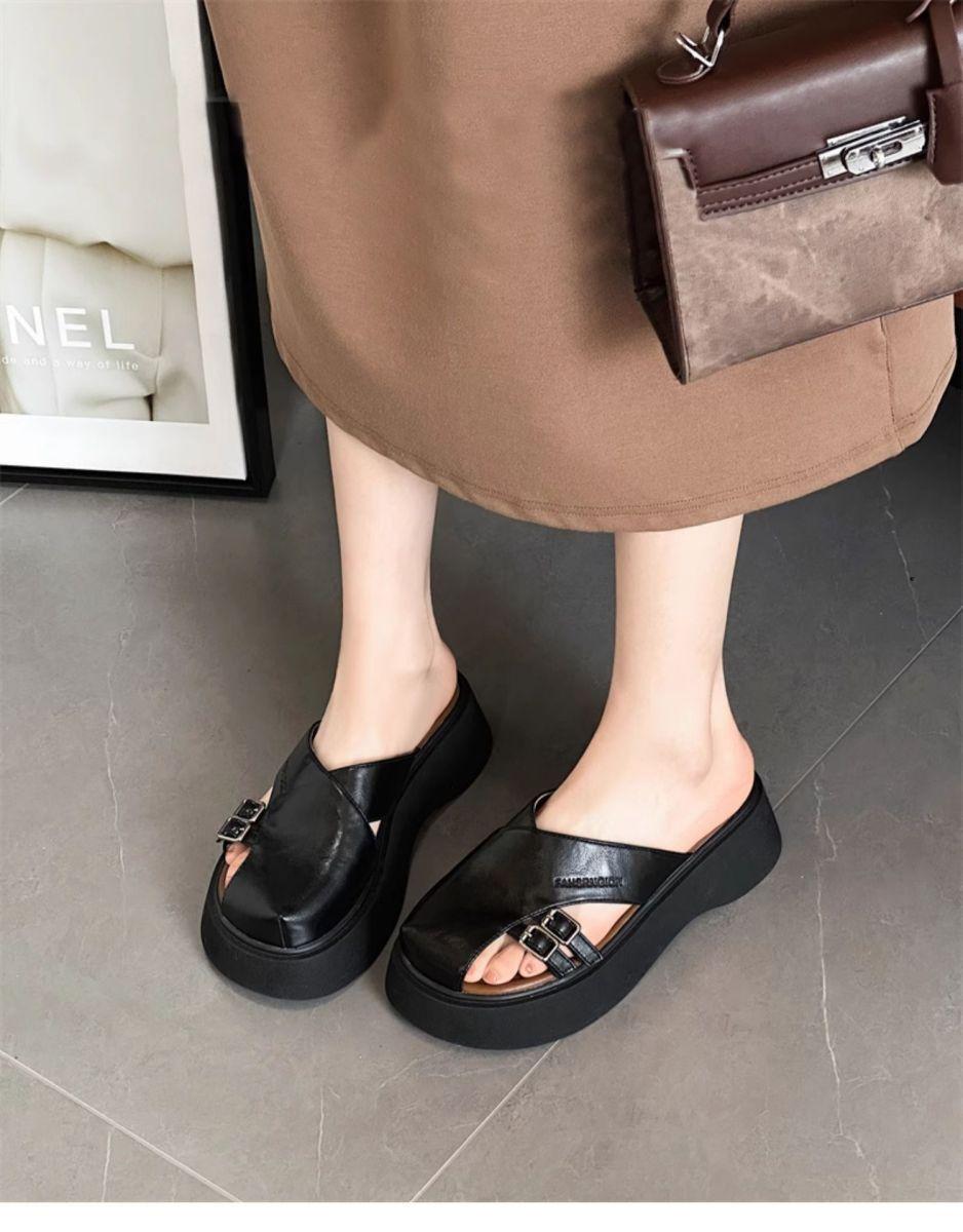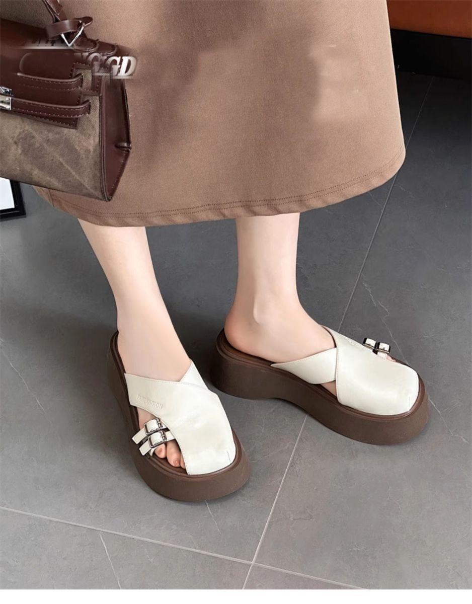 Pantuflas de estilo francés para mujer, atuendo de verano 2025, nuevo estilo coreano, retro, elegante, informal, elegante, pantuflas gruesas