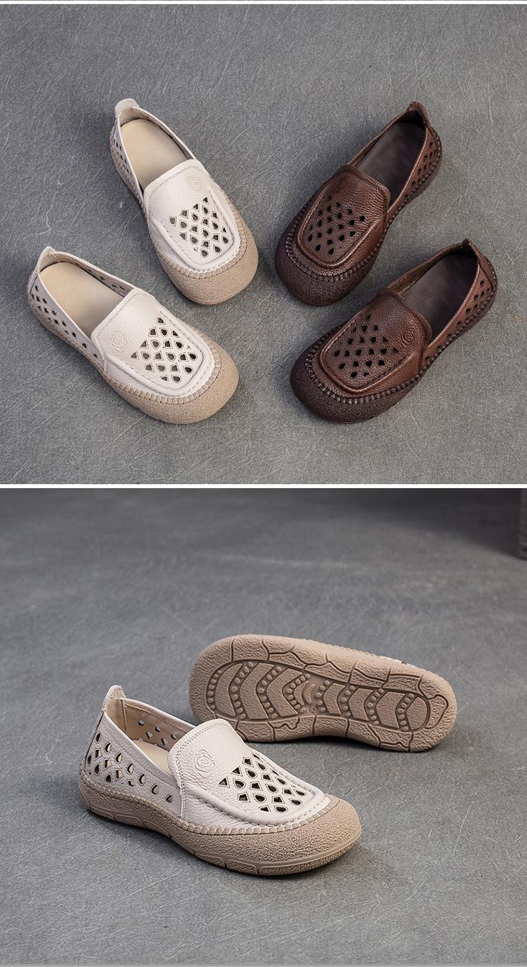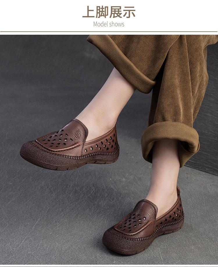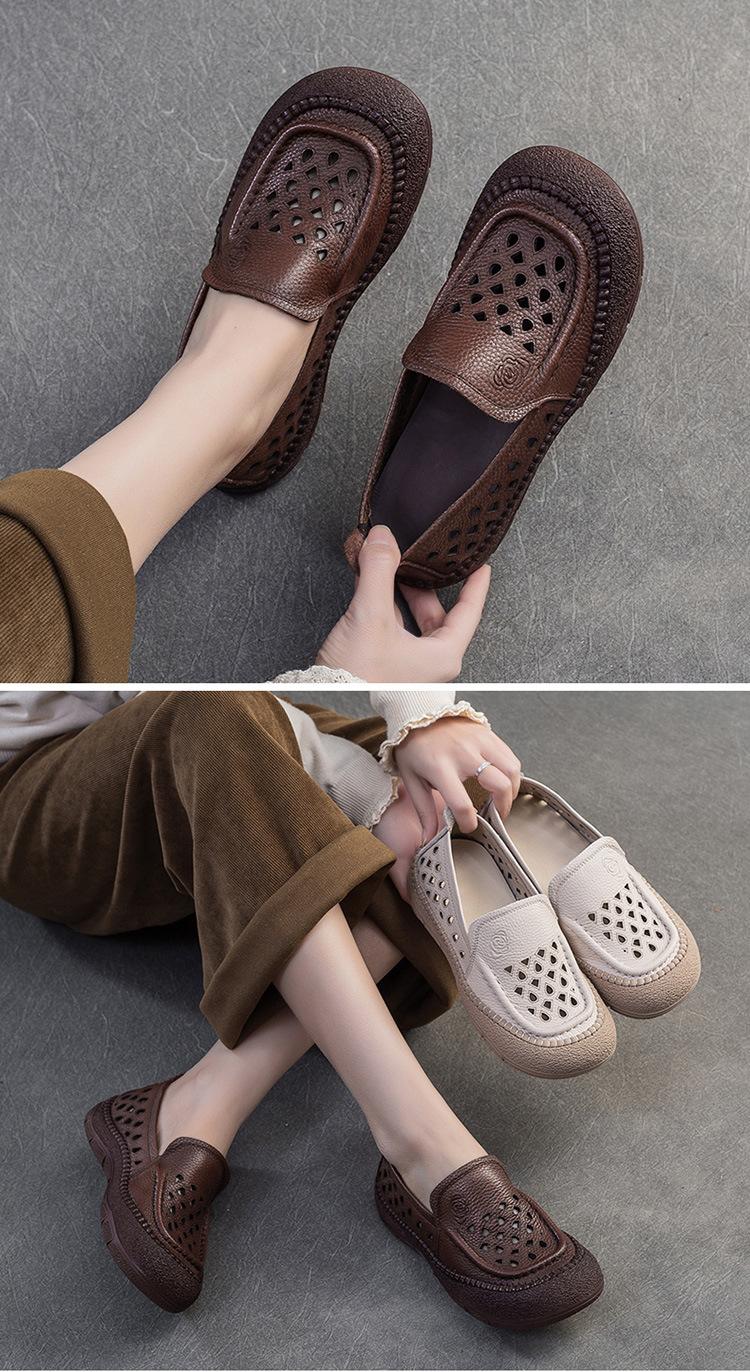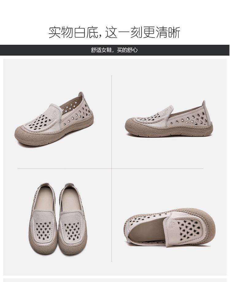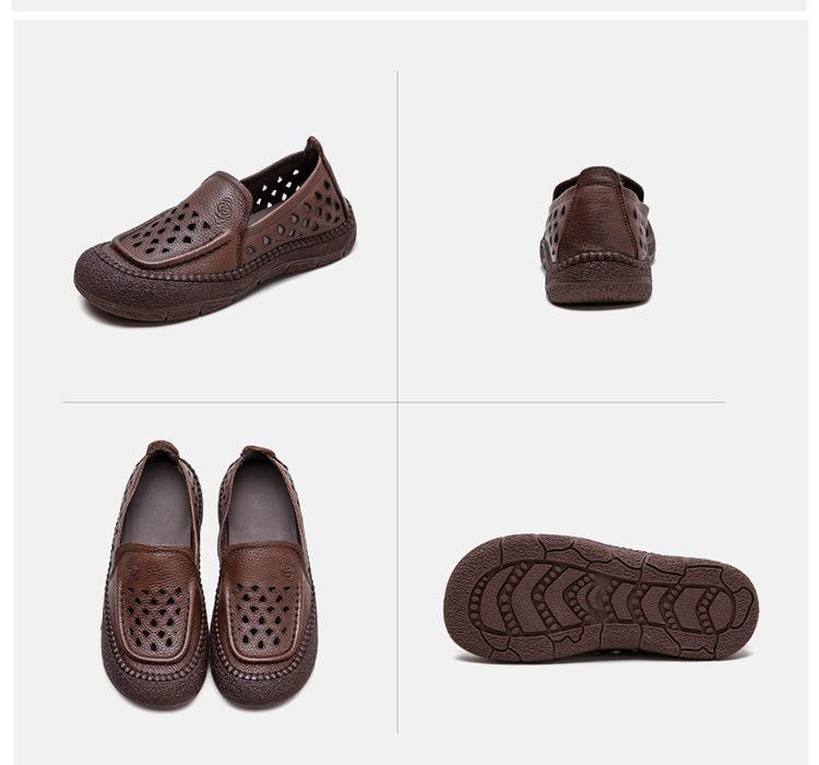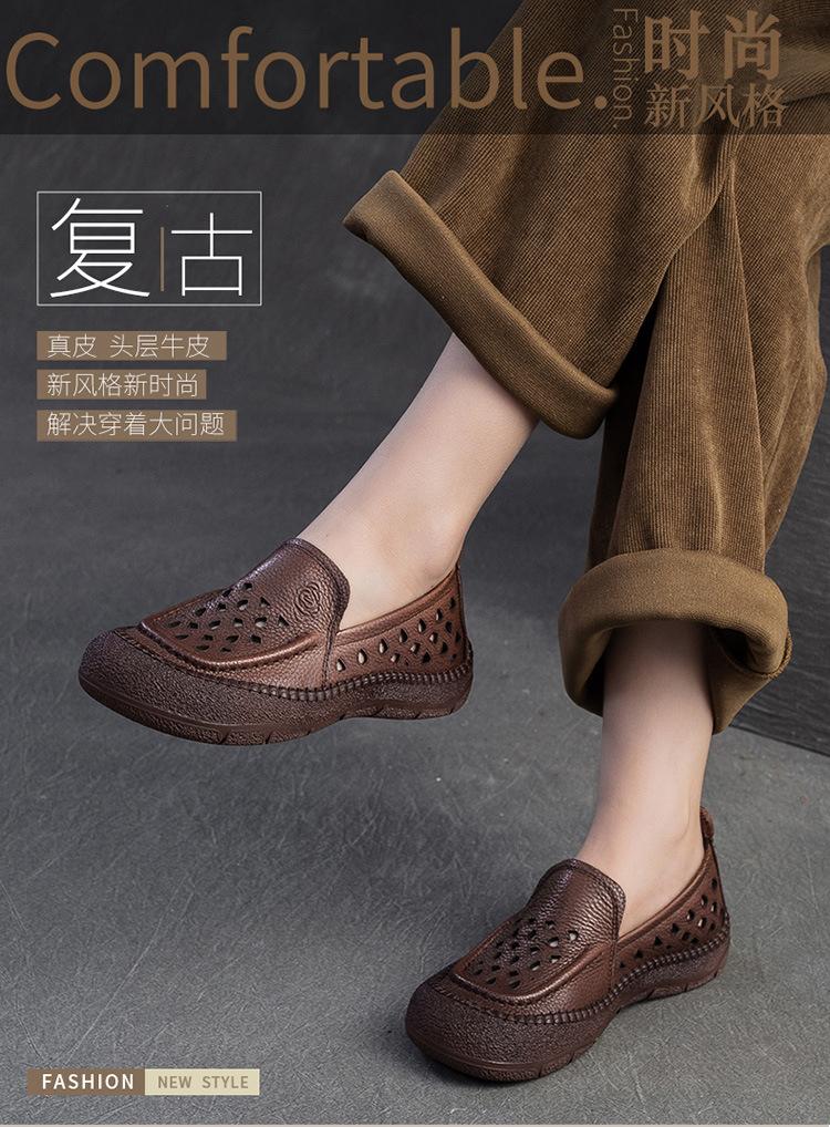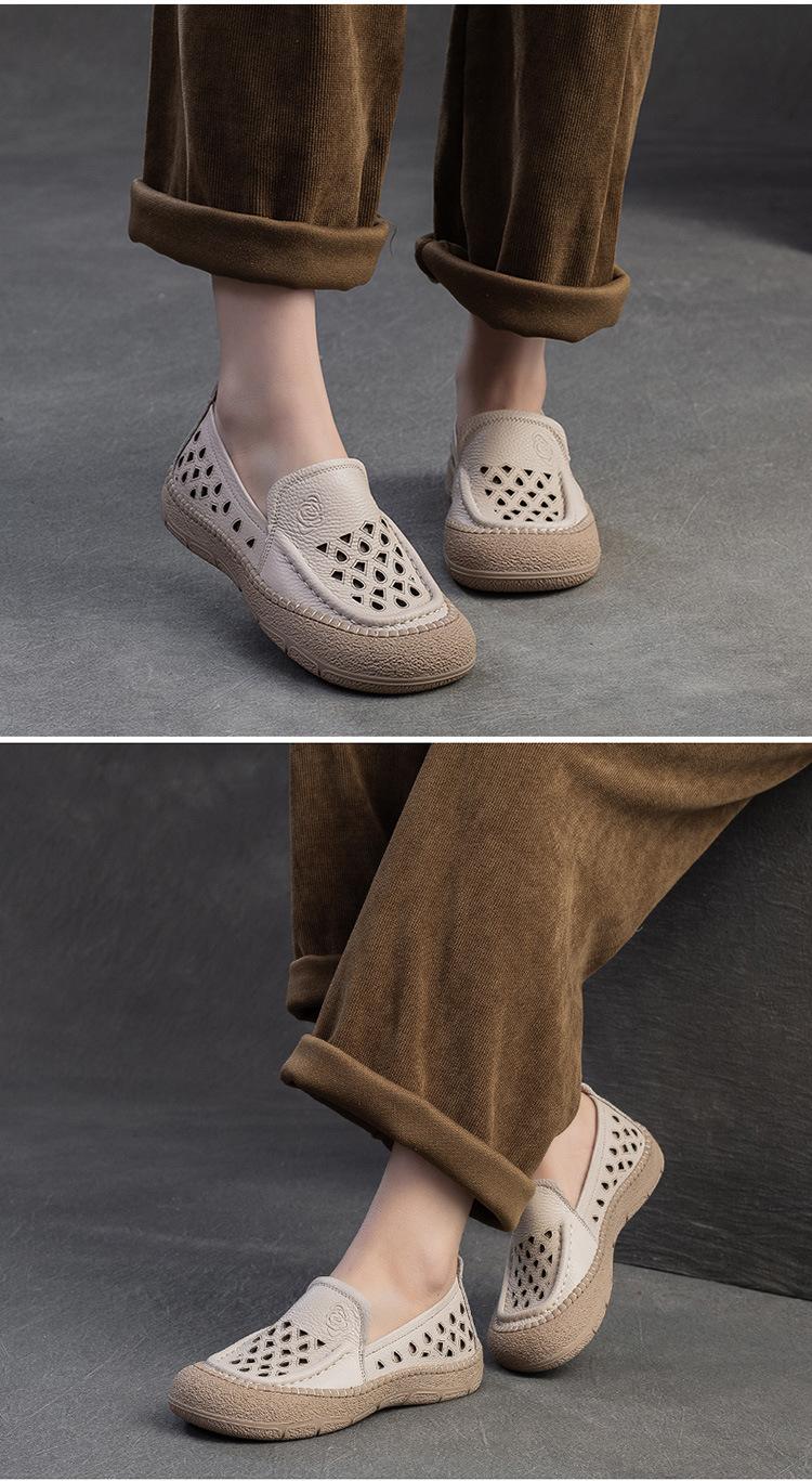 Shanghai Jiejie 2025 Primavera/Verano Nuevos Zapatos Huecos Transpirables con Agujeros Cómodos Zapatos Planos Estilo Retro Zapatos de Mujer Combinables