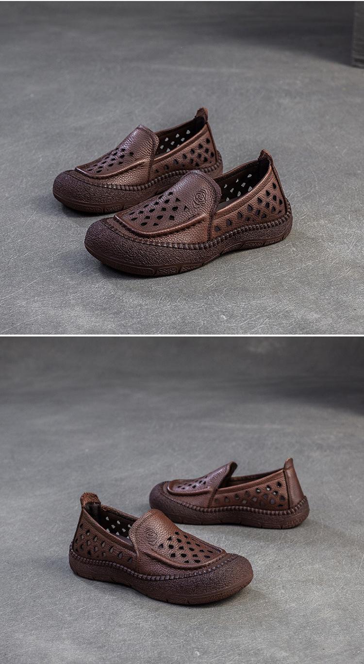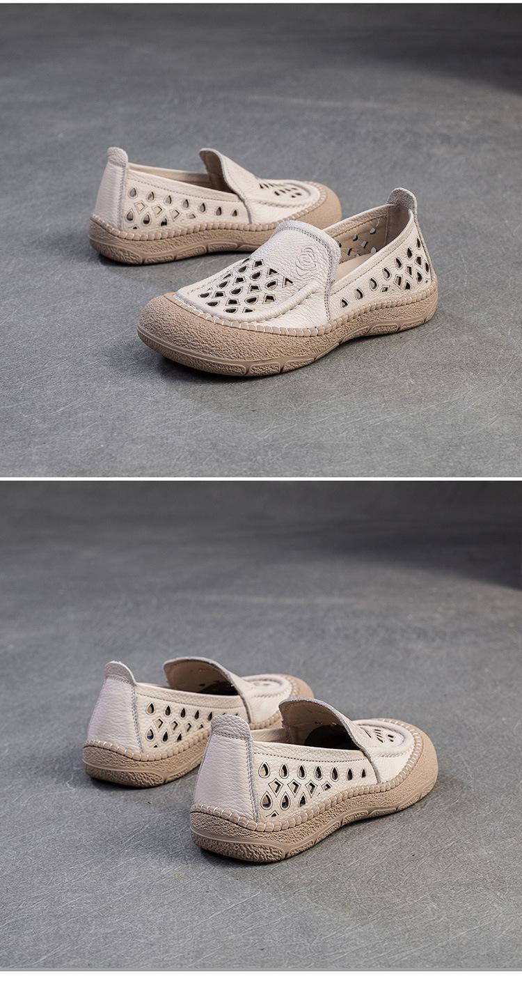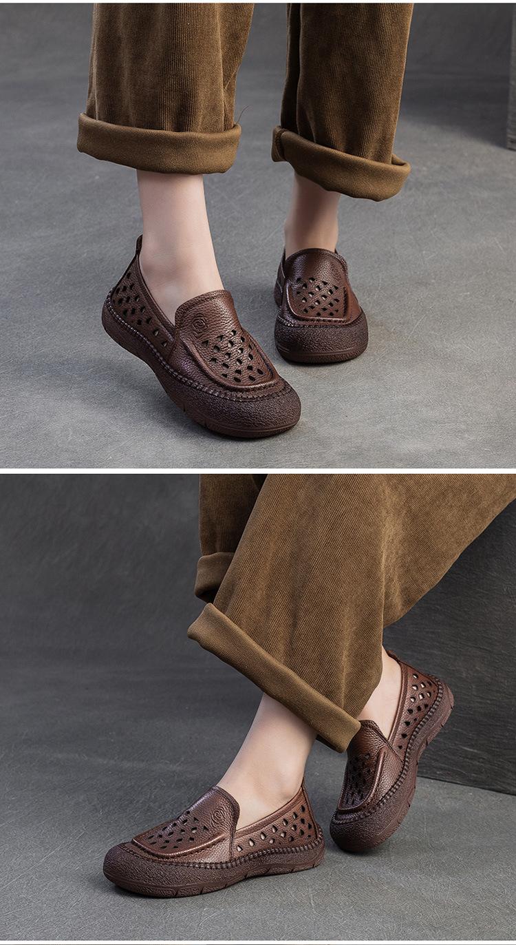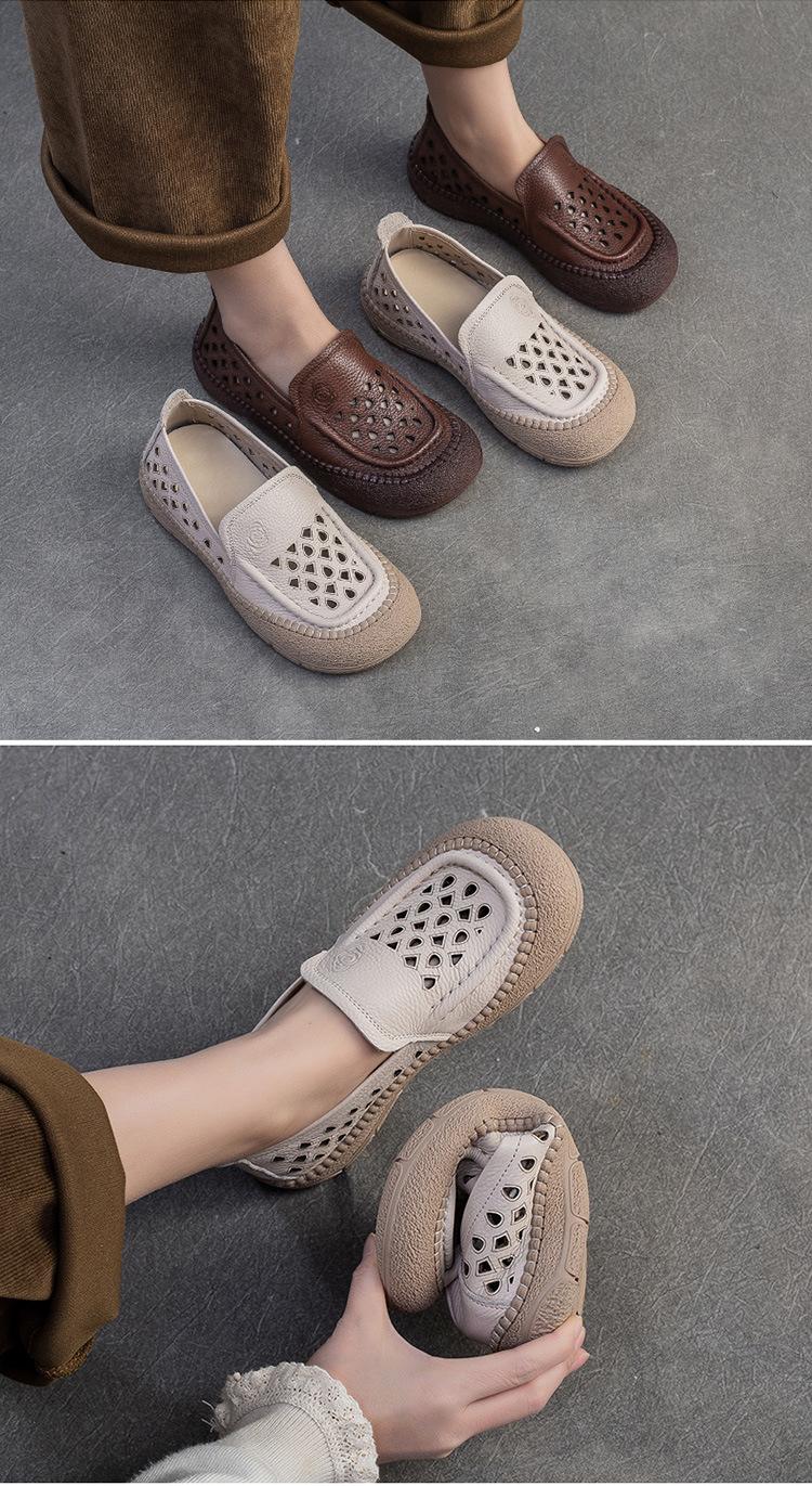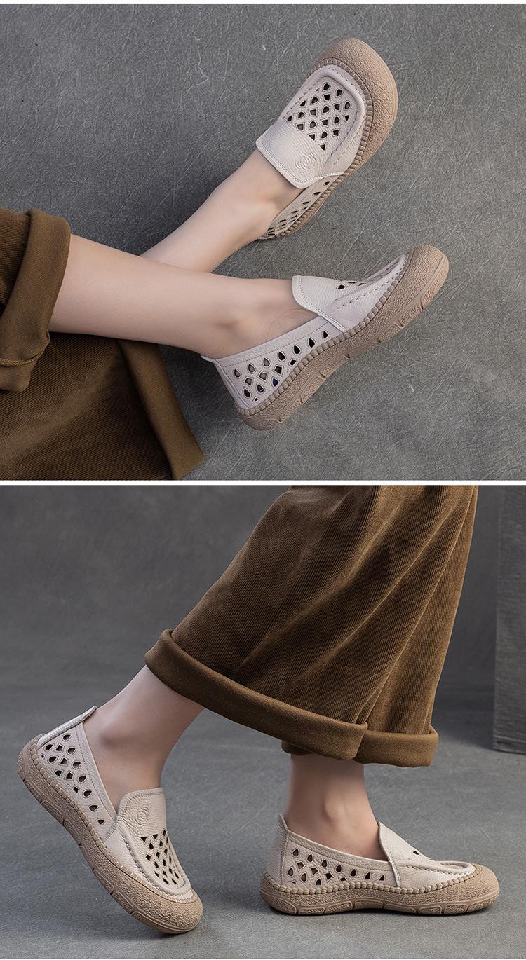 Shanghai Jiejie 2025 Primavera/Verano Nuevos Zapatos Huecos Transpirables con Agujeros Cómodos Zapatos Planos Estilo Retro Zapatos de Mujer Combinables