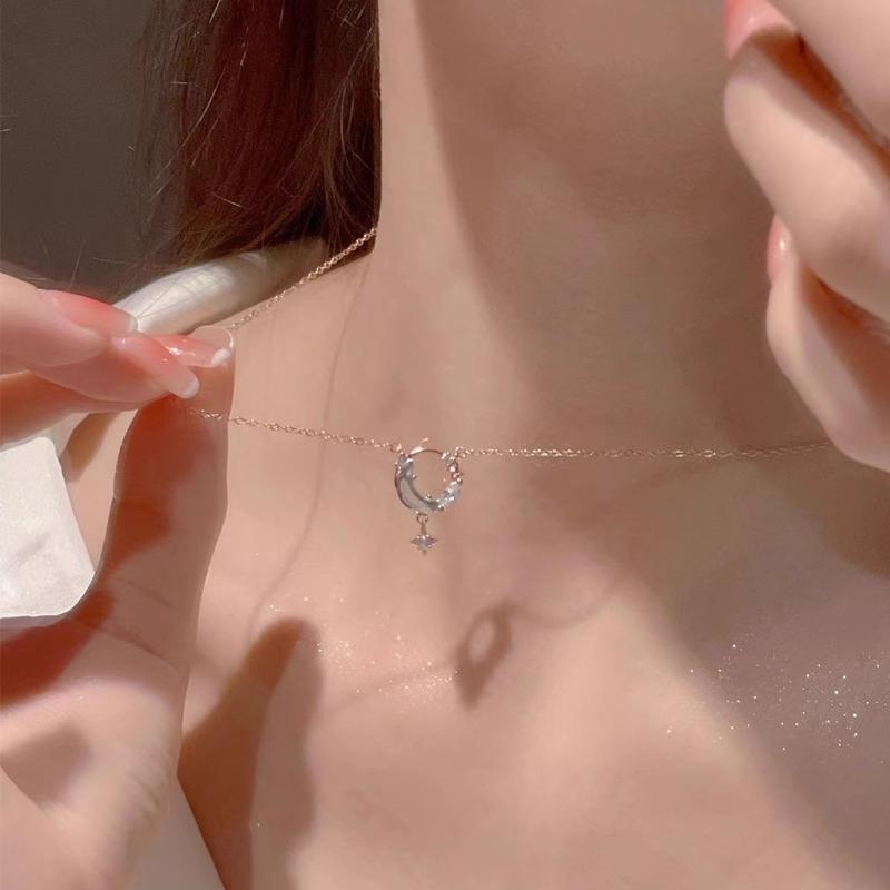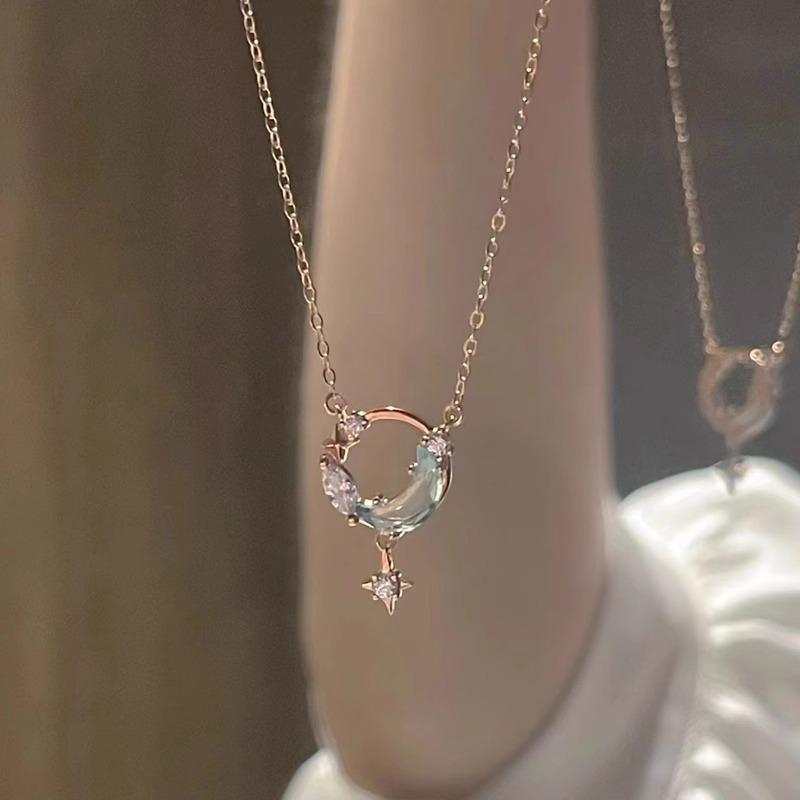 Collar de estrella luna para mujer 2024 nuevo moderno lujo ligero gentil hada Cadena clavicular estrella luna azul moda viajero