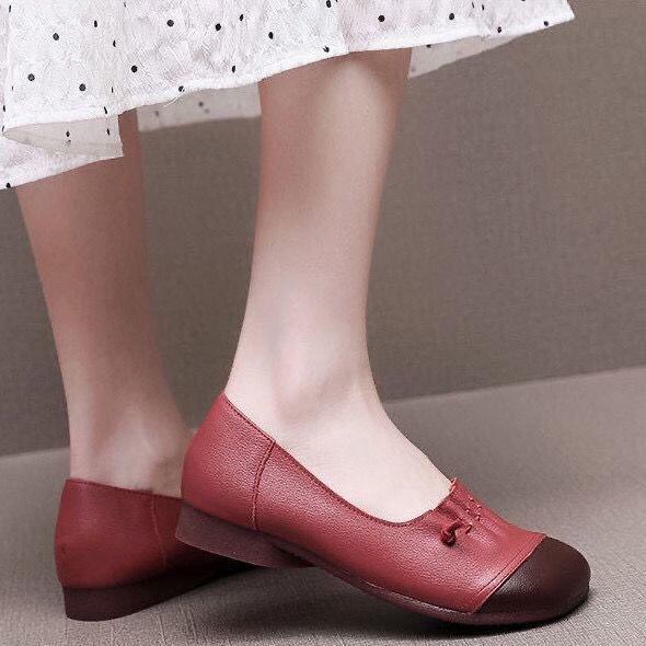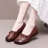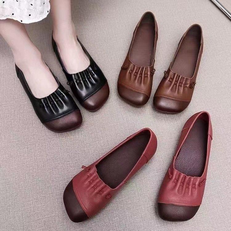 Zapatos planos con suela de res 2025, nuevos, antideslizantes, de suela suave, cómodos, para mujer, zapatos de mamá bajos, zapatos vintage de cuero de talla grande.