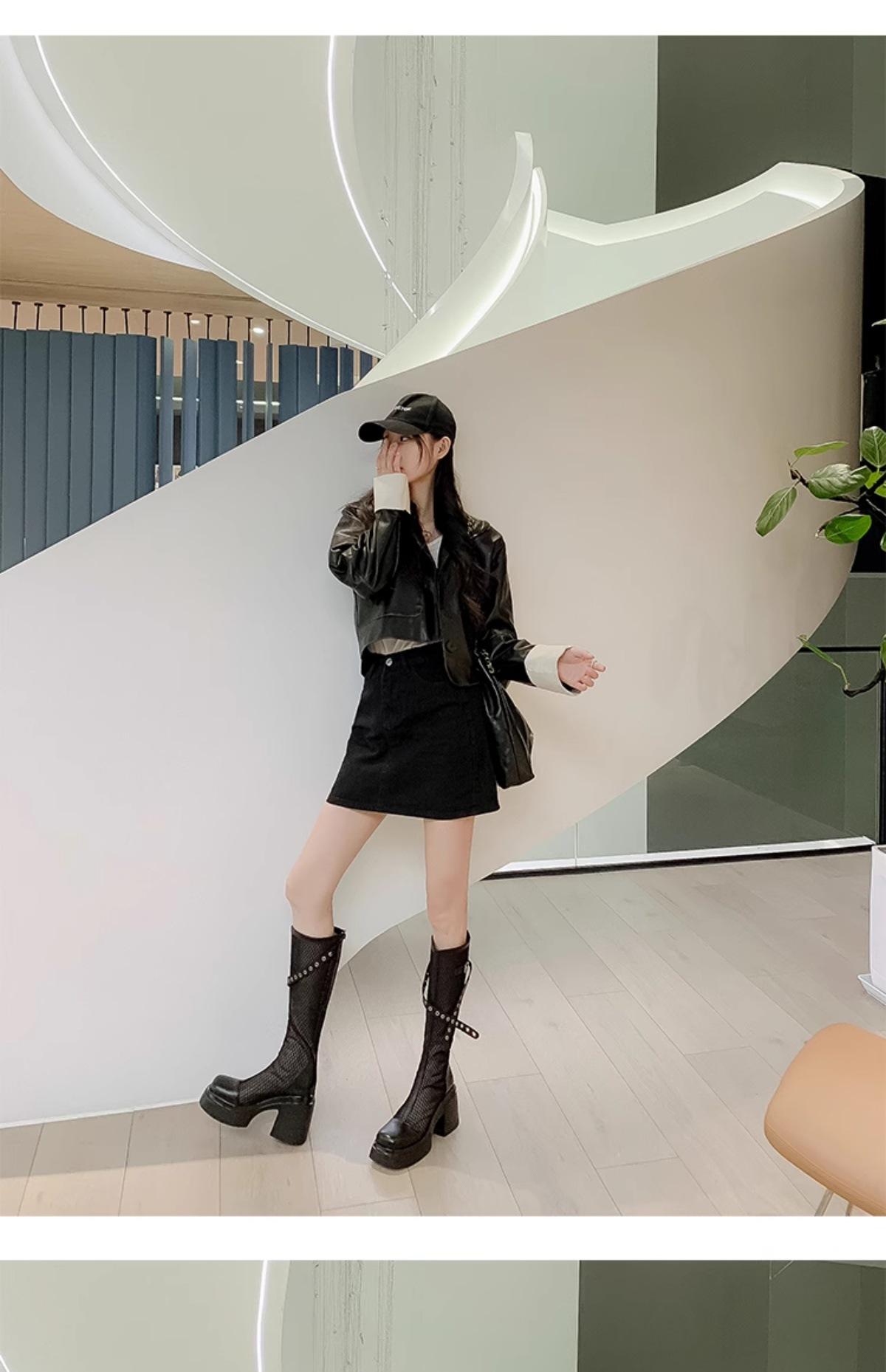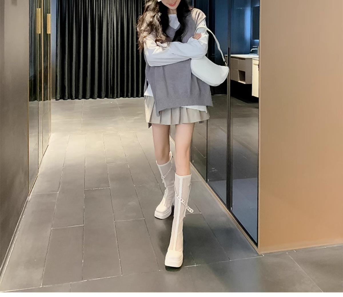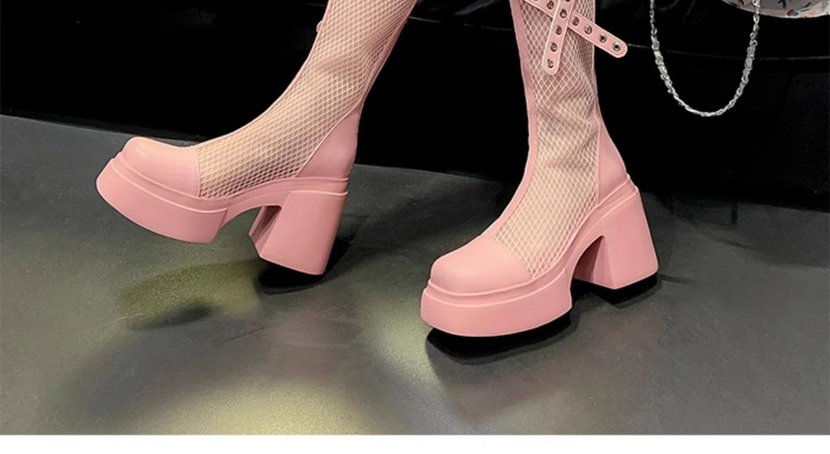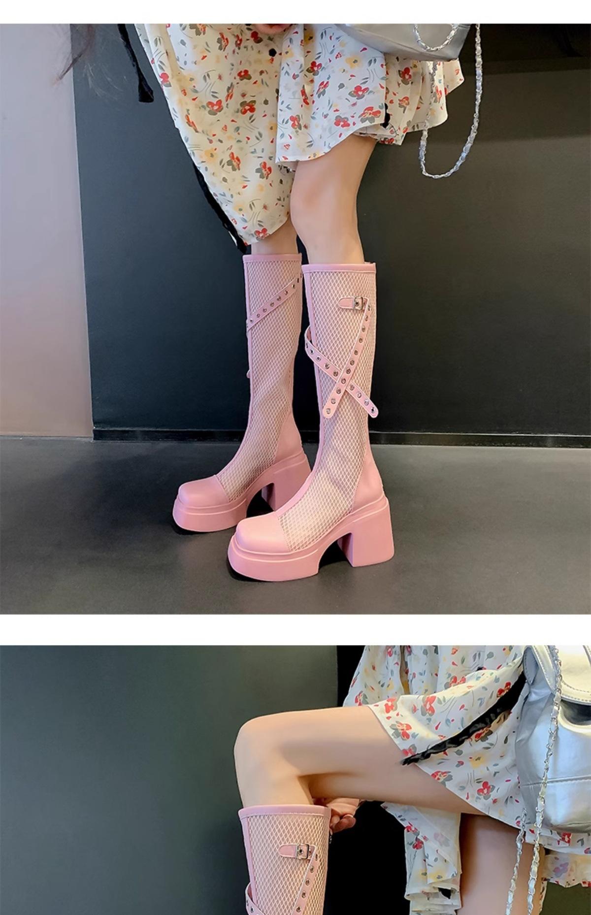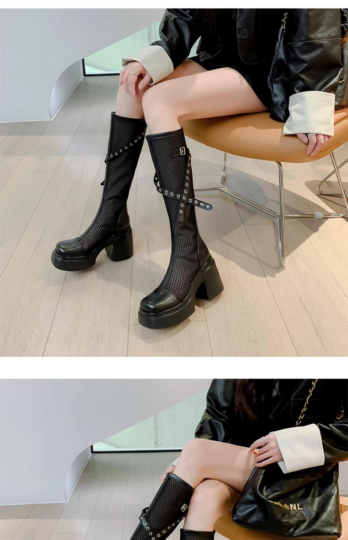 Botas de malla transpirables para mujer 2025, nuevas botas altas de caballero con remaches de nicho, aspecto adelgazante, sandalias de suela gruesa con elevación.