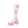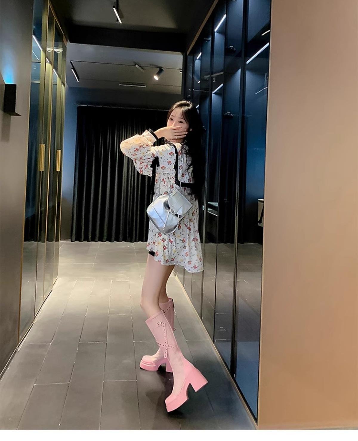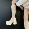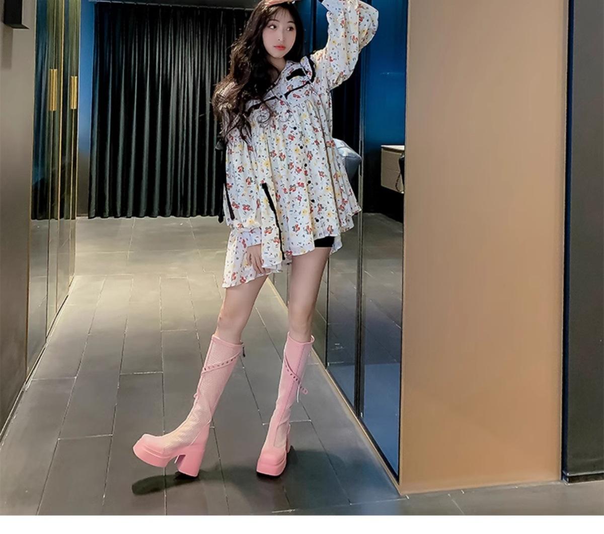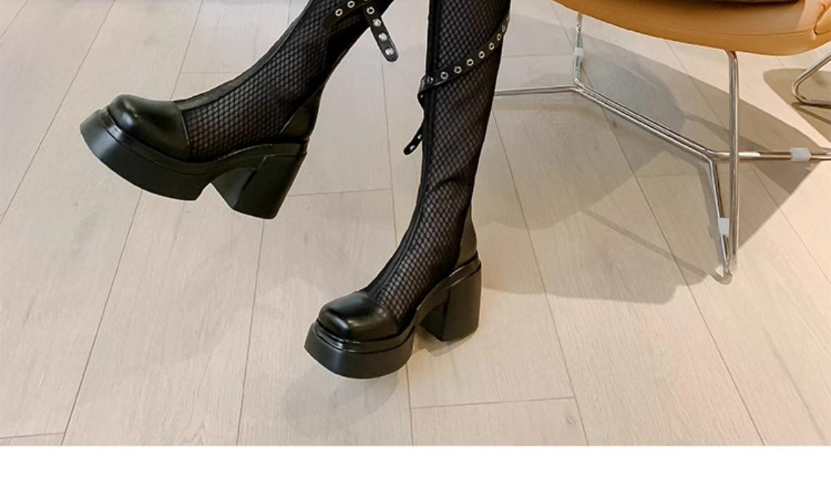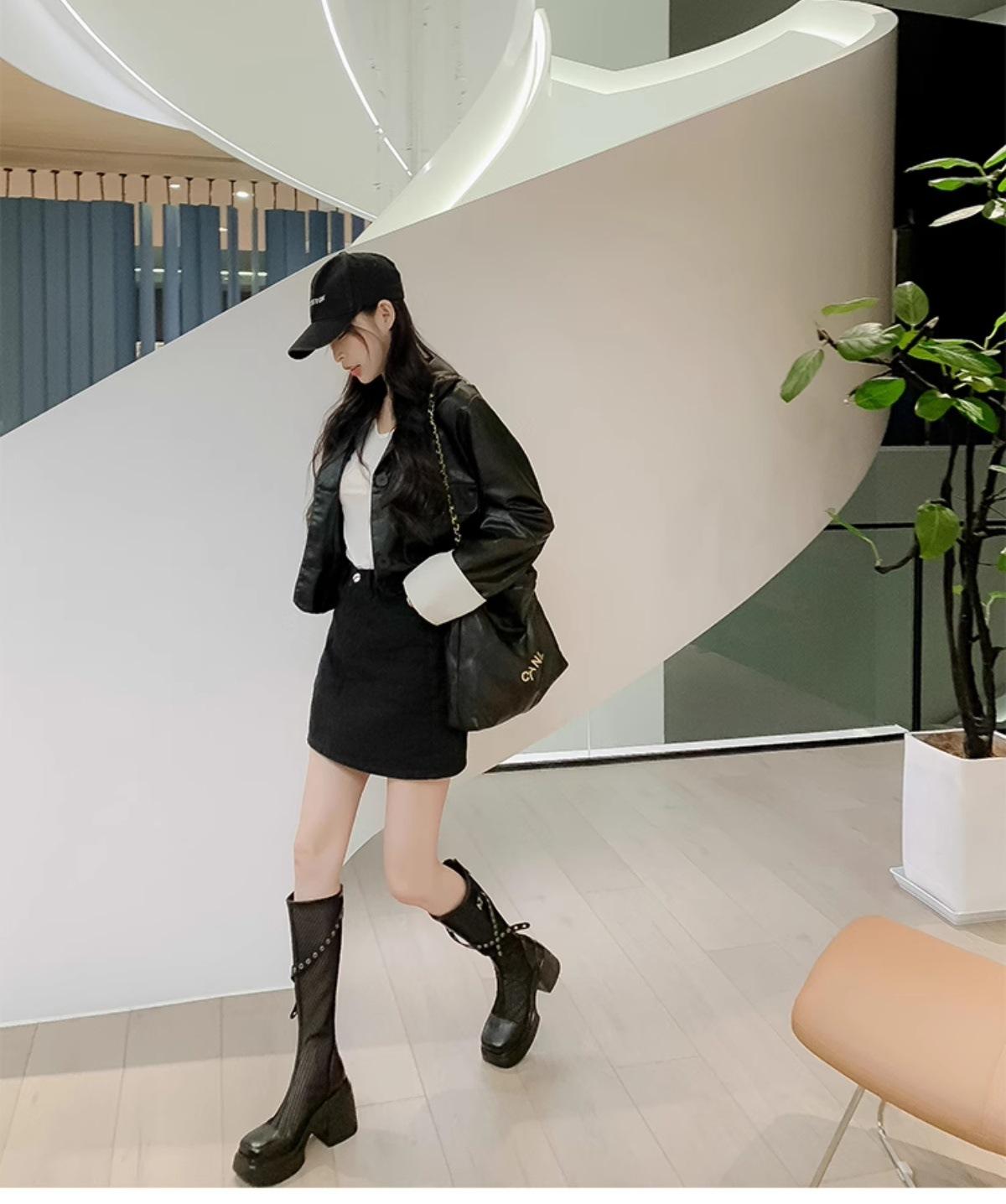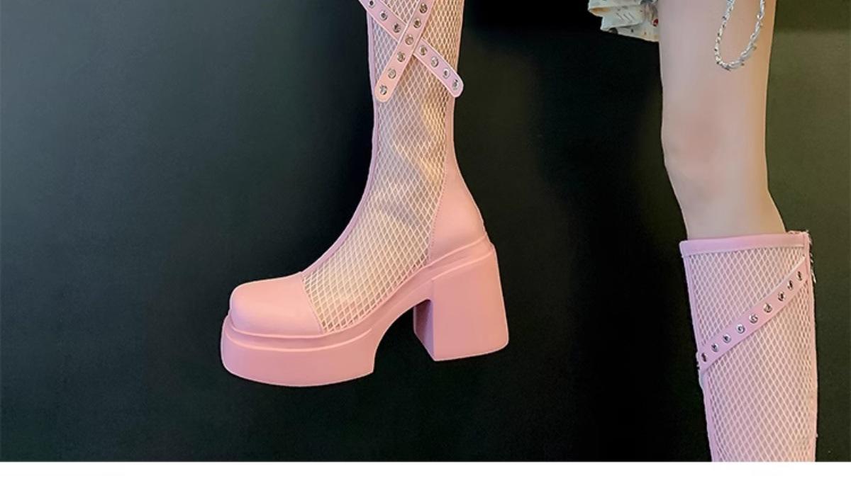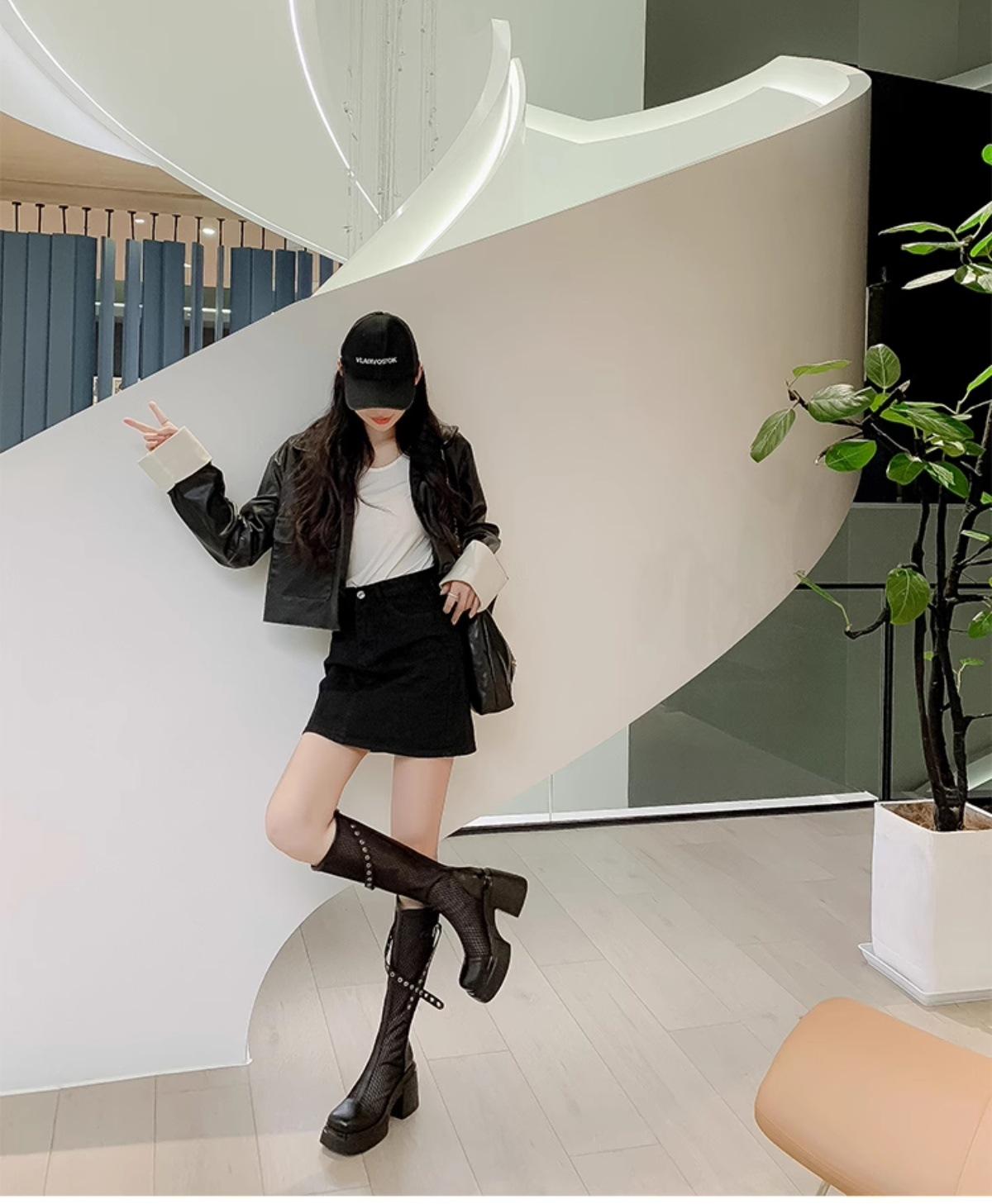 Botas de malla transpirables para mujer 2025, nuevas botas altas de caballero con remaches de nicho, aspecto adelgazante, sandalias de suela gruesa con elevación.