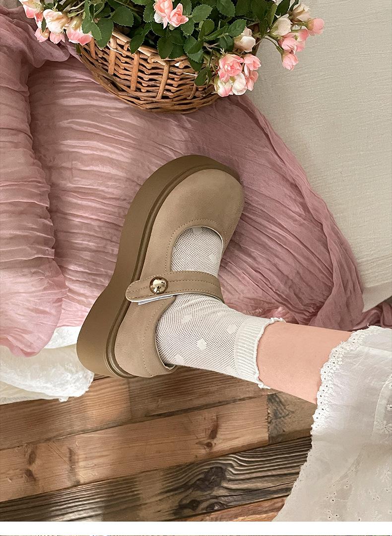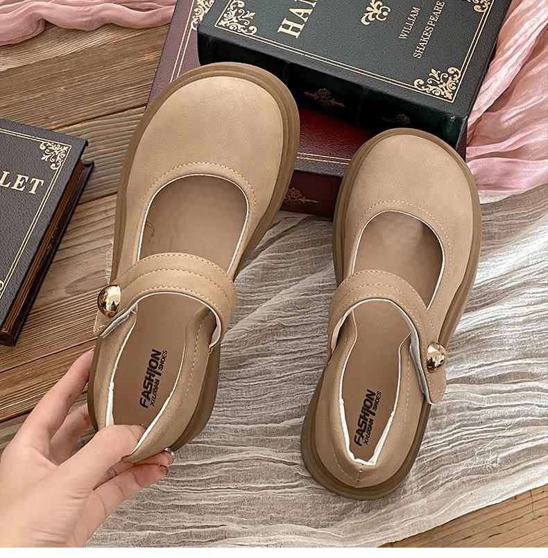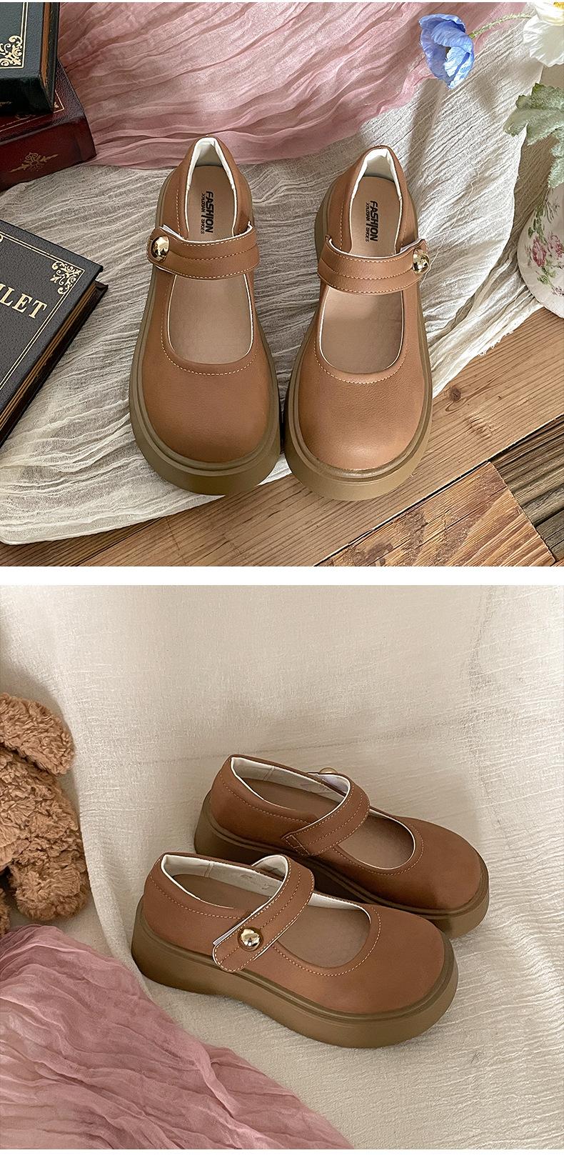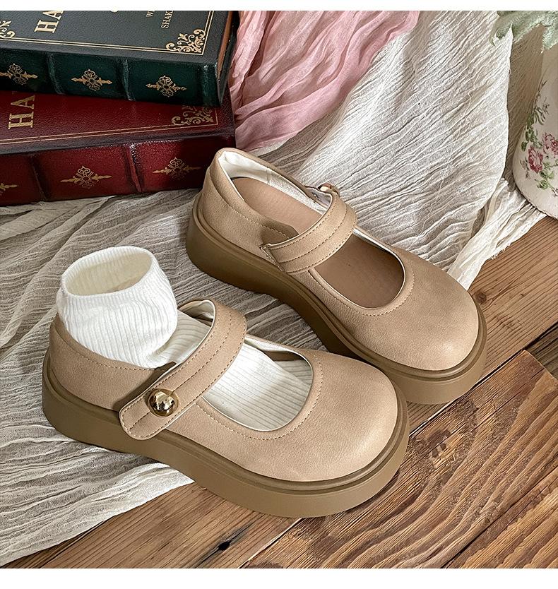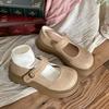 Zapatos de Cuero Pequeños de Fondo Grueso con Aumento de Altura de Estilo Británico Vintage para Mujer 2025 Nuevo Vestido de Primavera Punta Redonda Mary Jane Zapatos Únicos