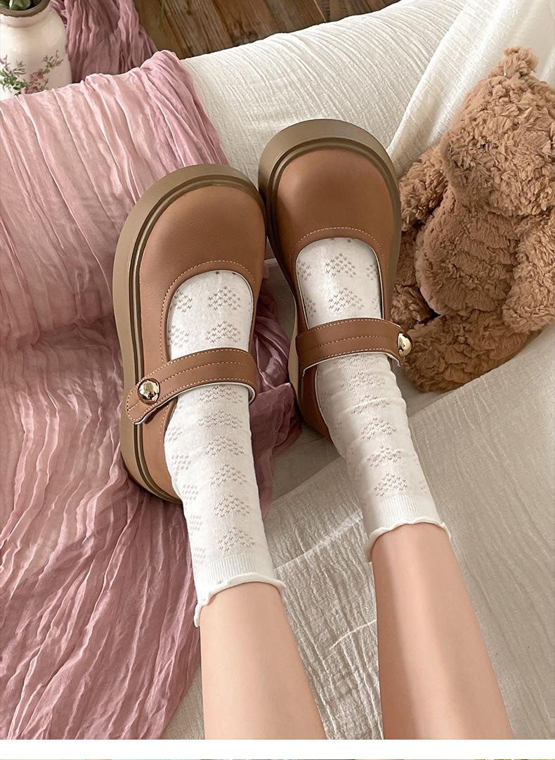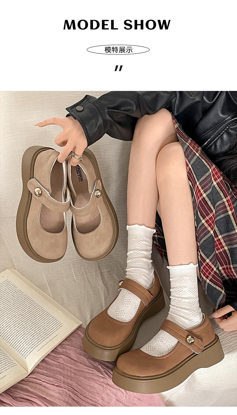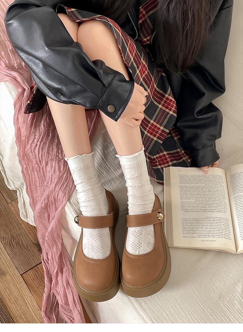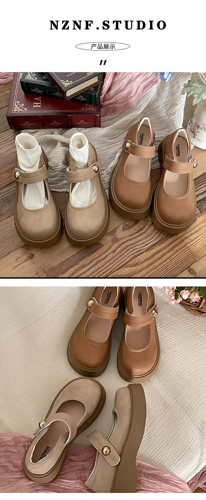 Zapatos de Cuero Pequeños de Fondo Grueso con Aumento de Altura de Estilo Británico Vintage para Mujer 2025 Nuevo Vestido de Primavera Punta Redonda Mary Jane Zapatos Únicos