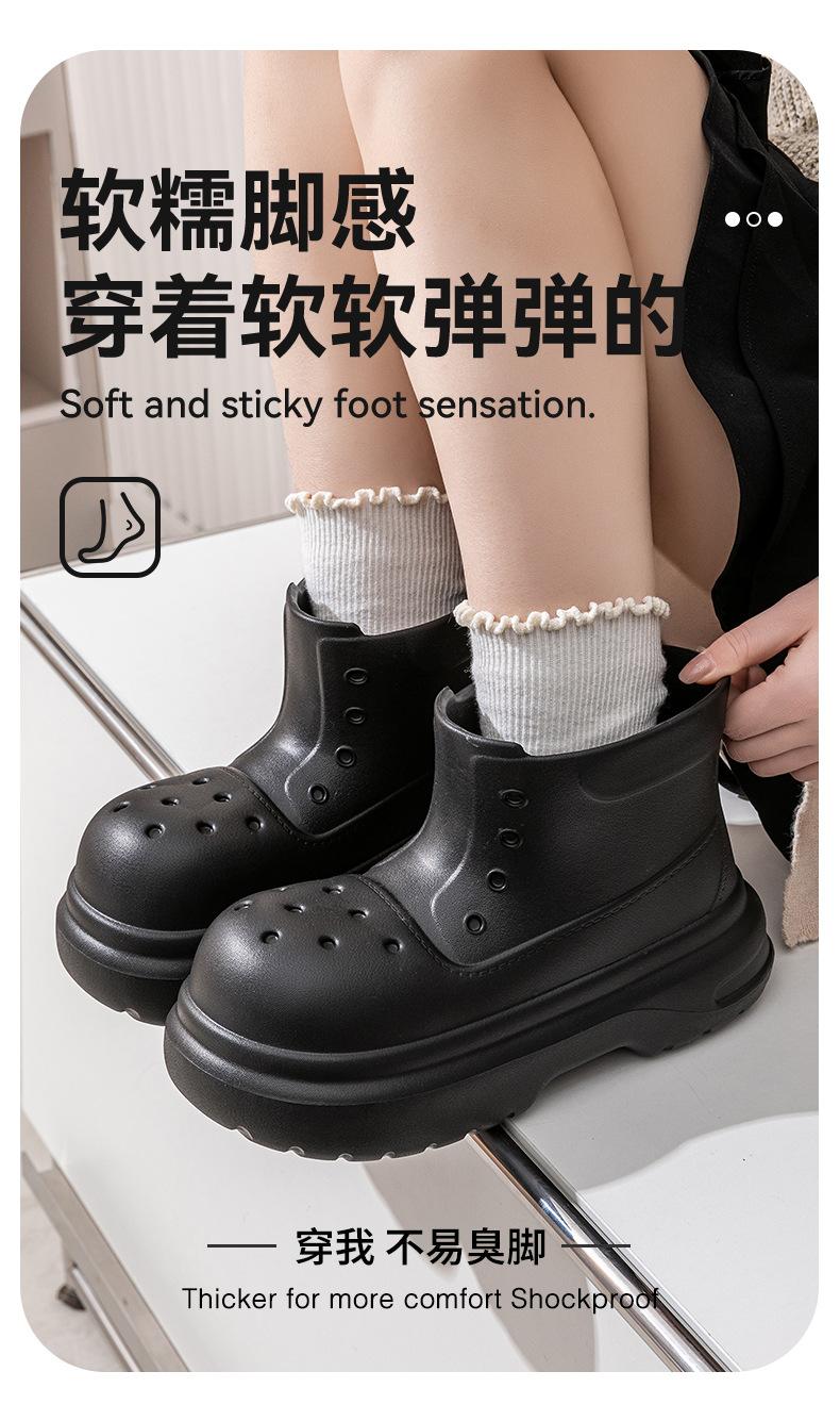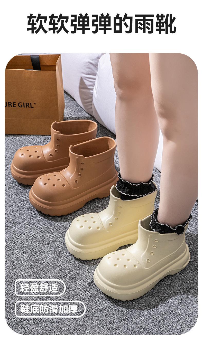 Botas Lindas de Suela Gruesa para Mujer Cuatro Estaciones Universal Exterior Impermeable Antideslizante EVA Sentido Dung Todo Combinable Botas de Lluvia para Mujer