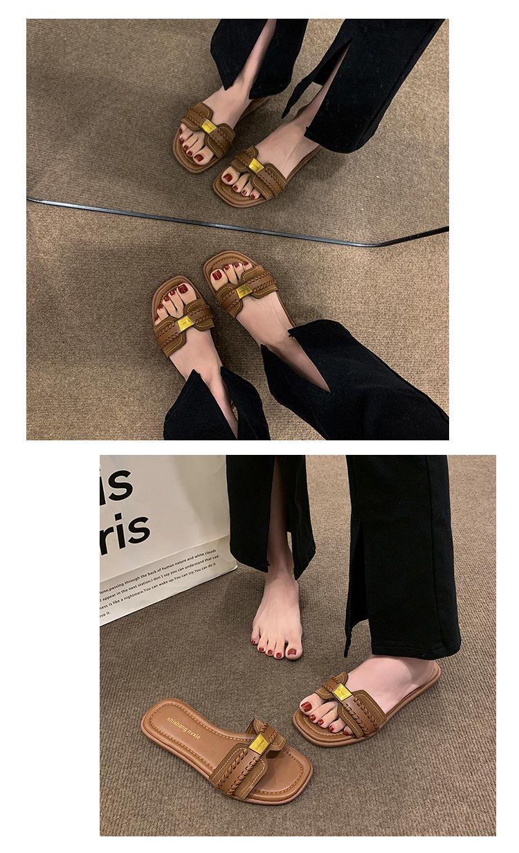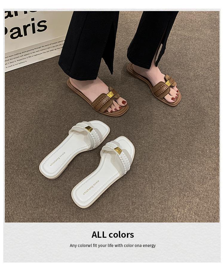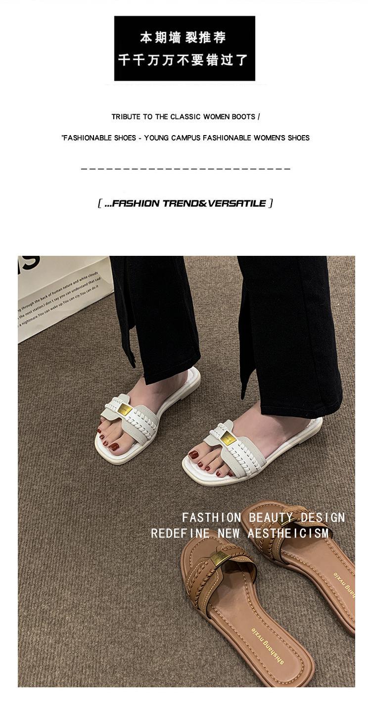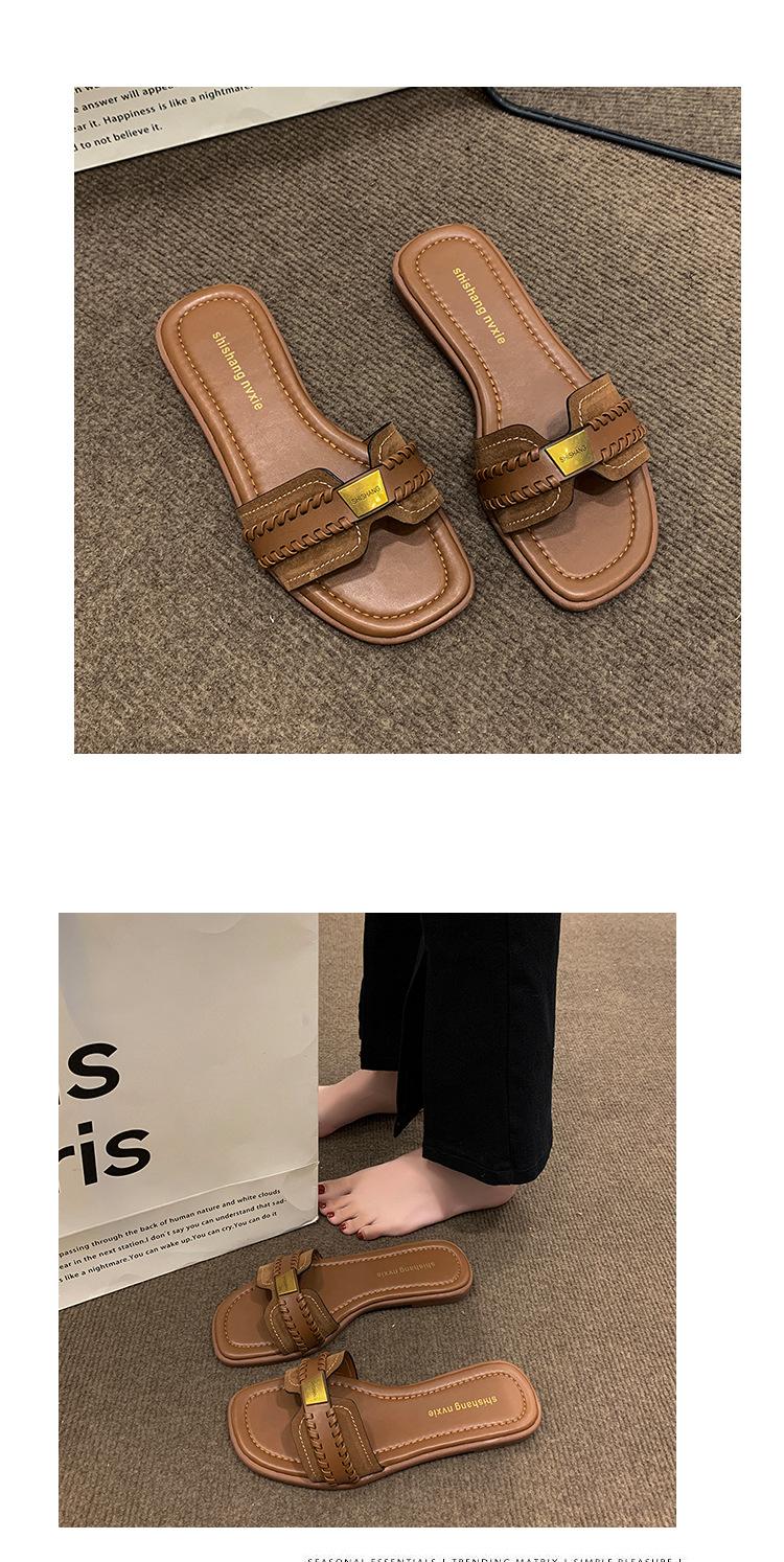 Sandalias Ropa de Exterior Pantuflas Zapatos de Mujer 2025 Nuevo Verano Zapatos de Mujer Diseño Nicho Chanclas Planas Francesas