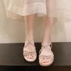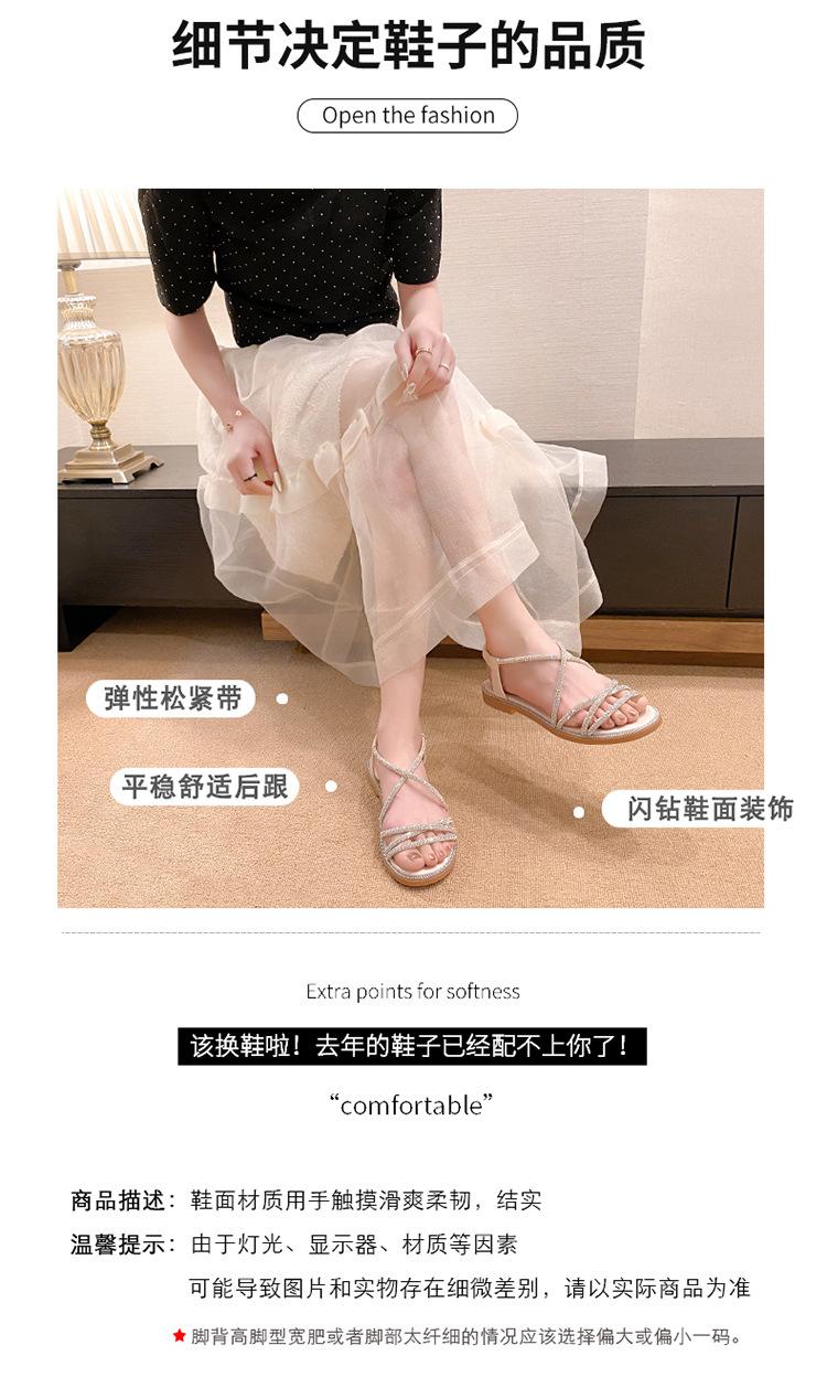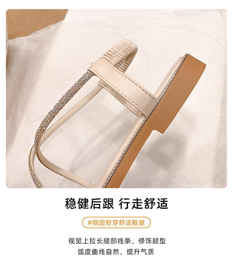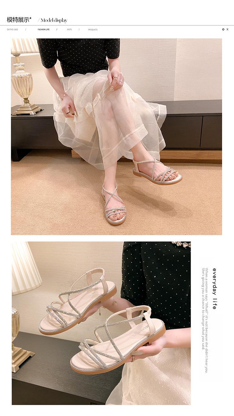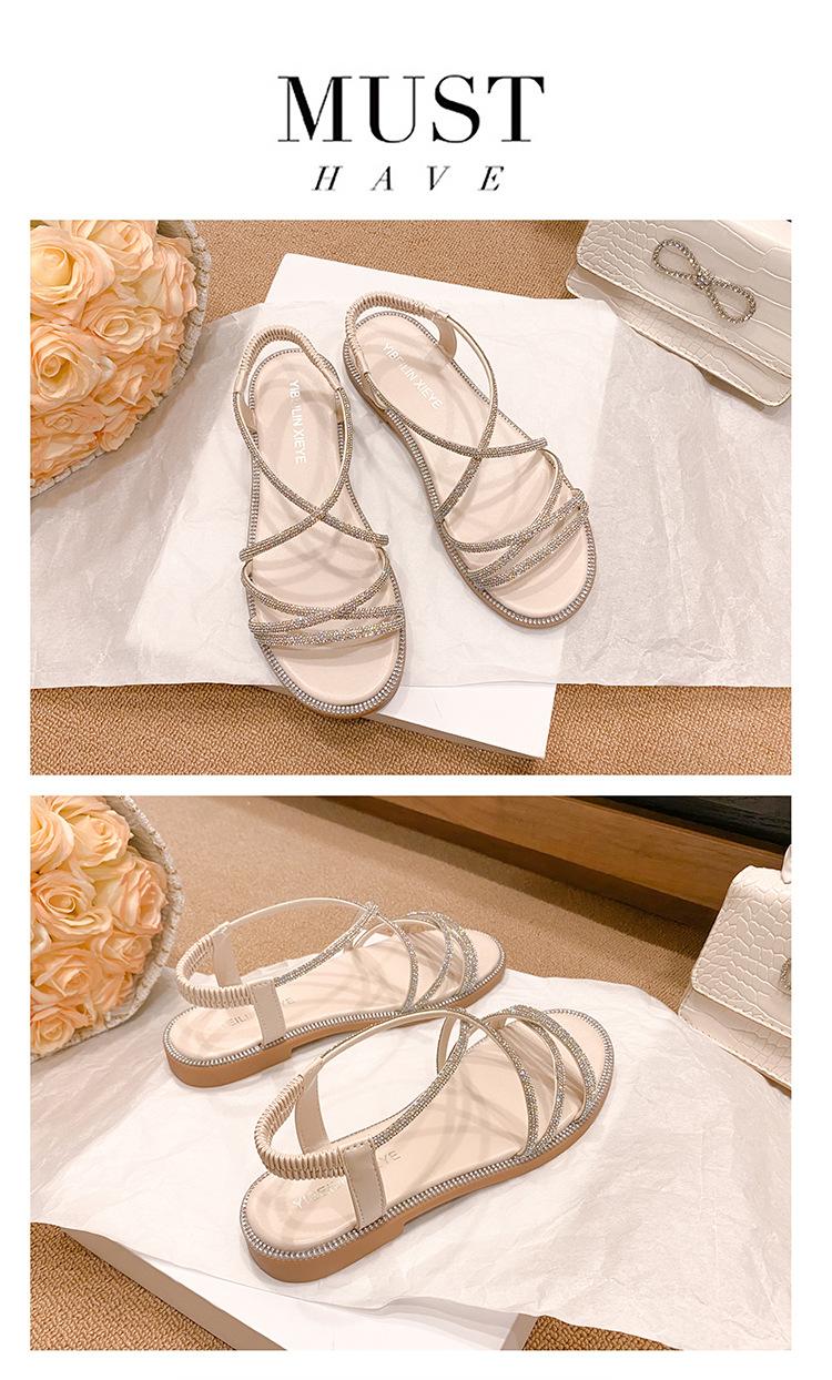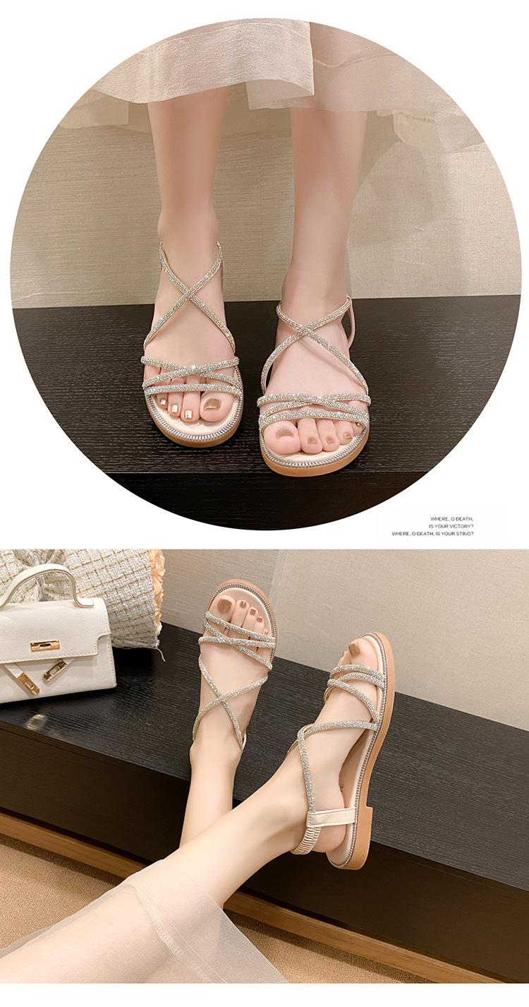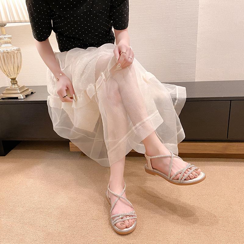 Sandalias planas romanas para mujer, zapatos de playa, ropa de abrigo, sandalias planas de hada con diamantes de imitación, moda de verano 2025, venta al por mayor