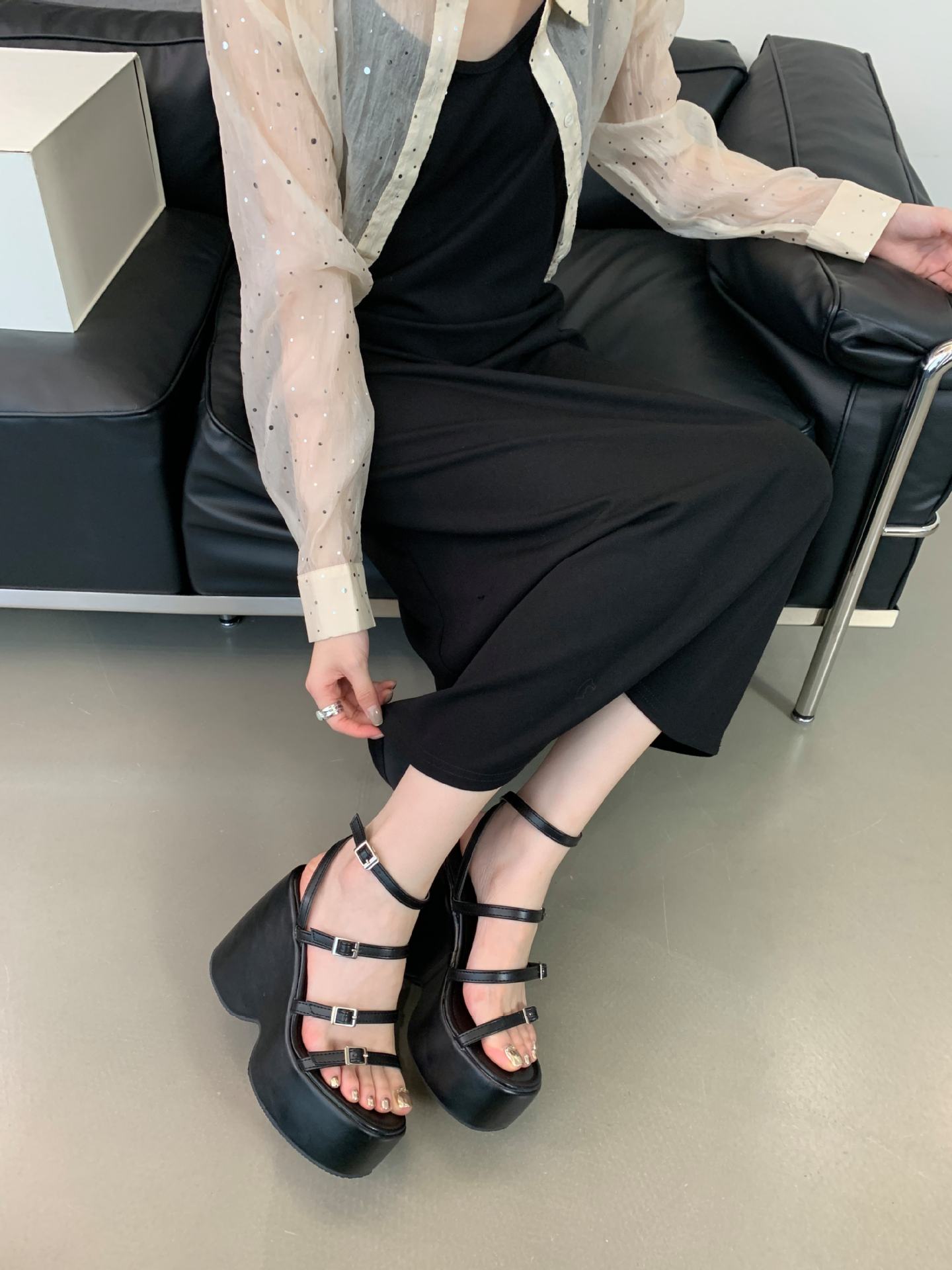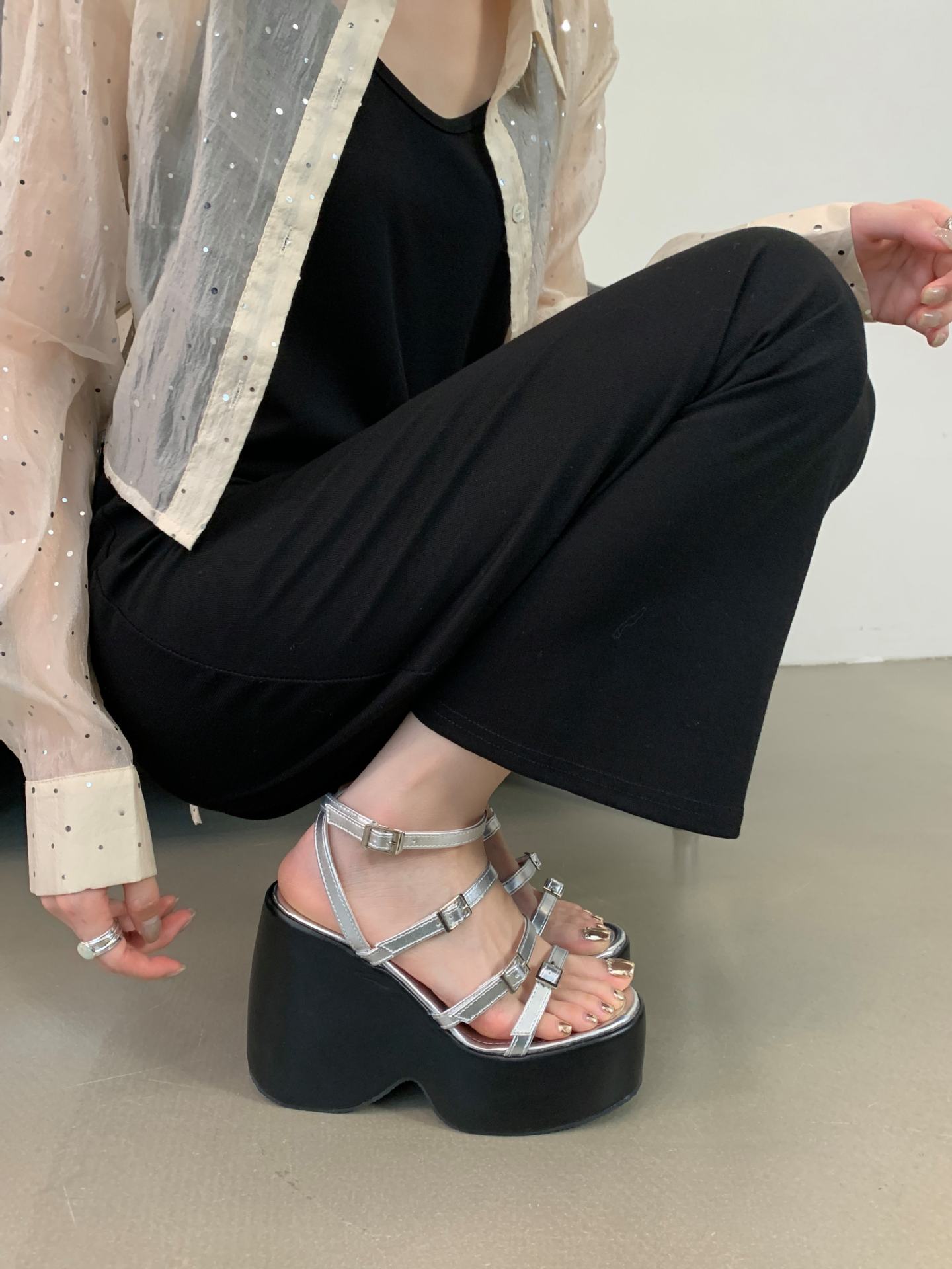 Sandalias de Cuña de Verano para Mujer con Correa de Hebilla 2025 Nuevo Cómodo Plataforma de Punta Abierta Plataforma Casual Damas Va