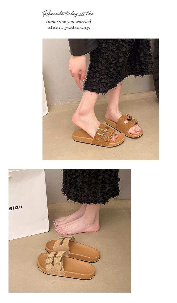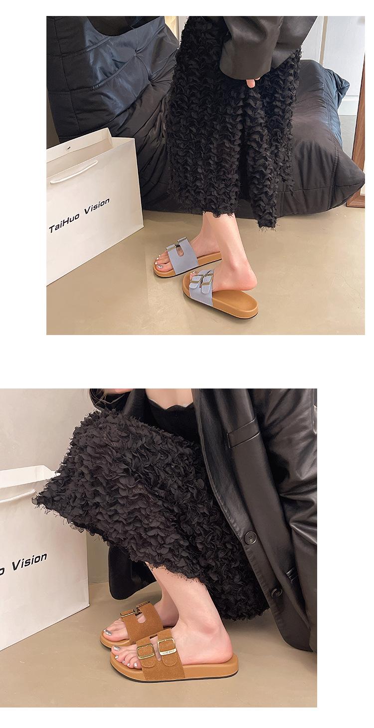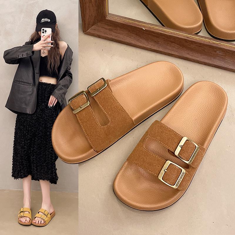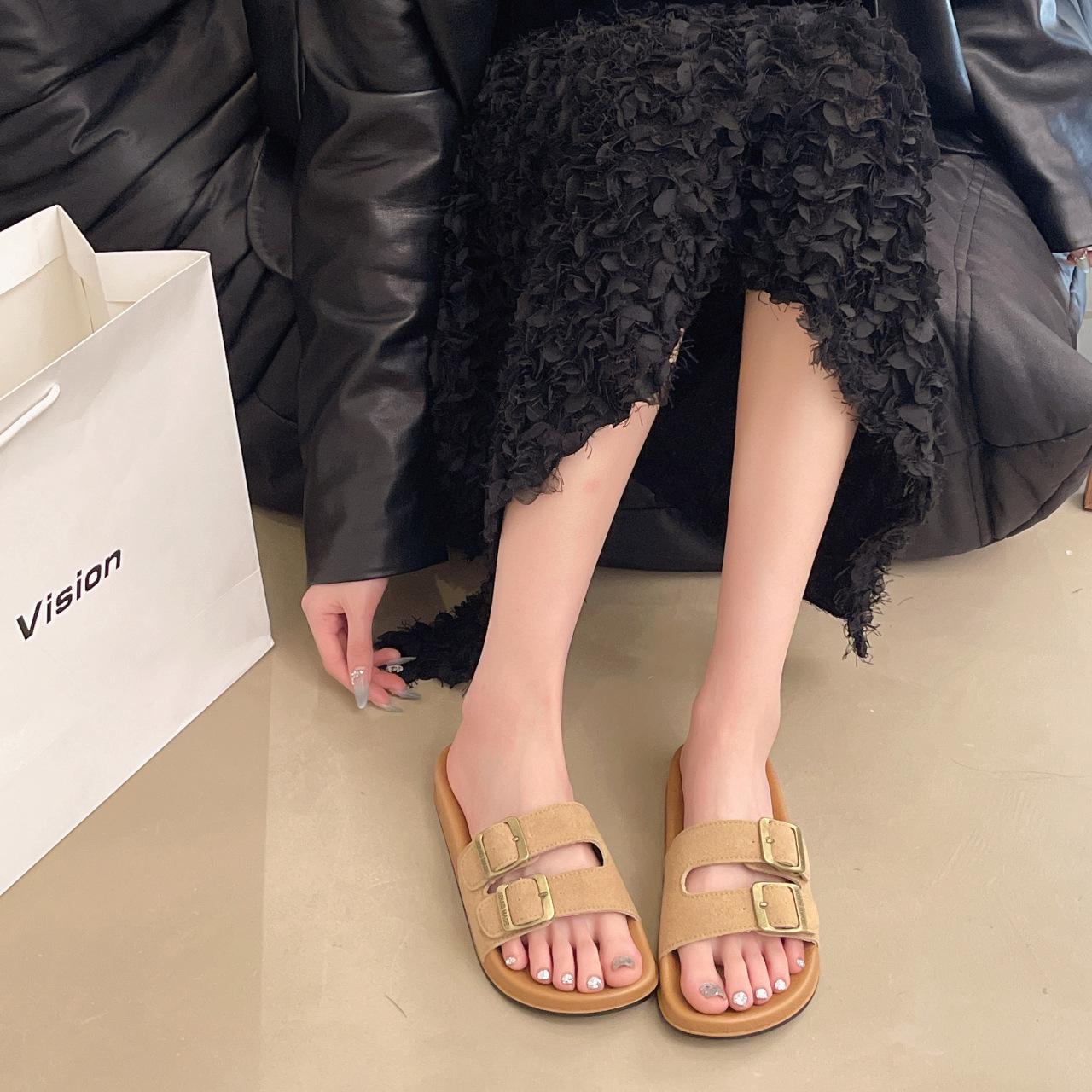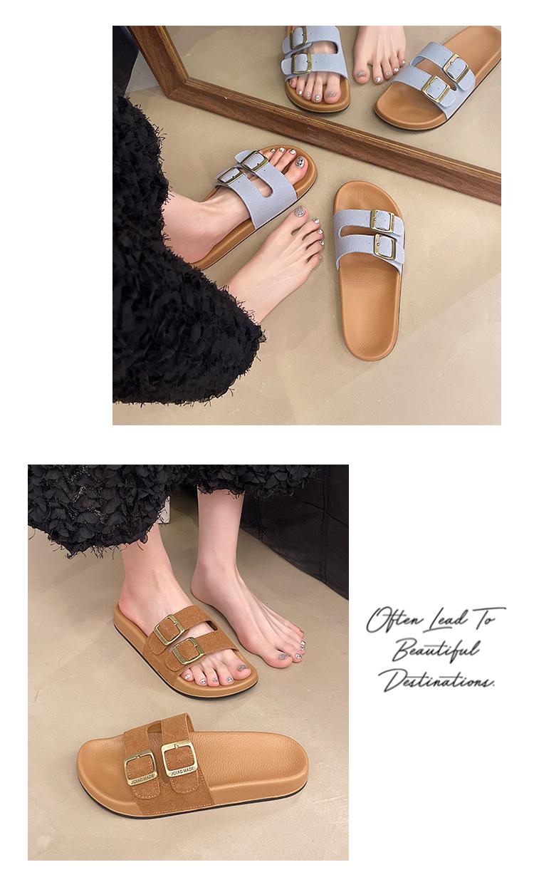 Zapatillas Boken para Mujer 2025 Verano Nuevo Plano Cómodo Zapatos de Mujer con Hebilla de Cinturón Talla Grande Zapatillas de Comercio Exterior