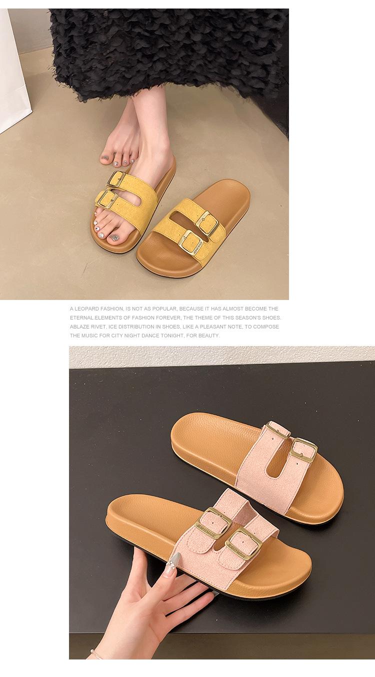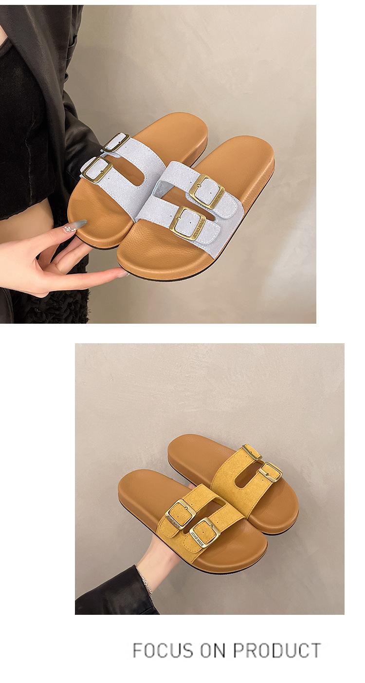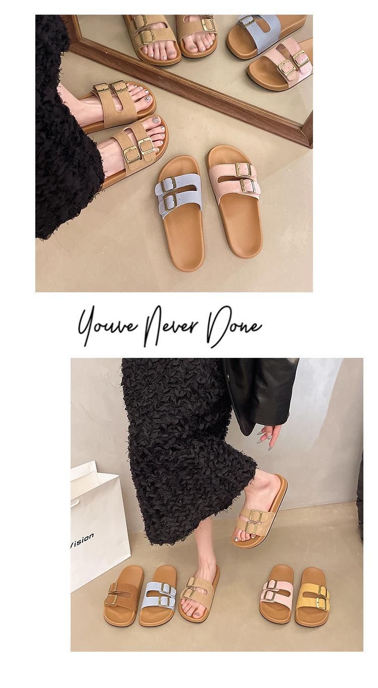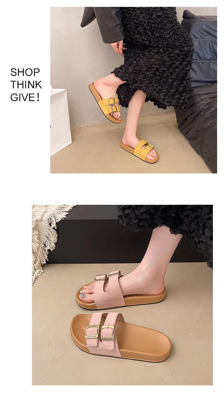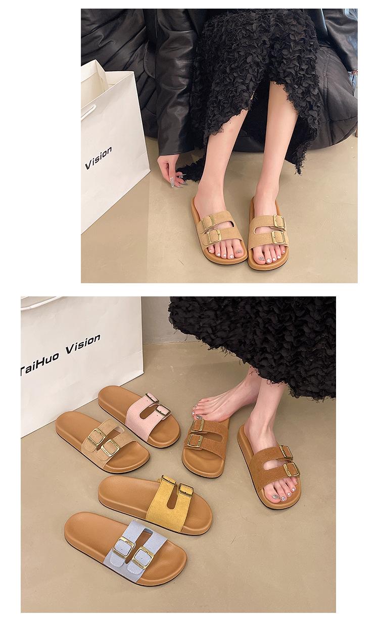 Zapatillas Boken para Mujer 2025 Verano Nuevo Plano Cómodo Zapatos de Mujer con Hebilla de Cinturón Talla Grande Zapatillas de Comercio Exterior