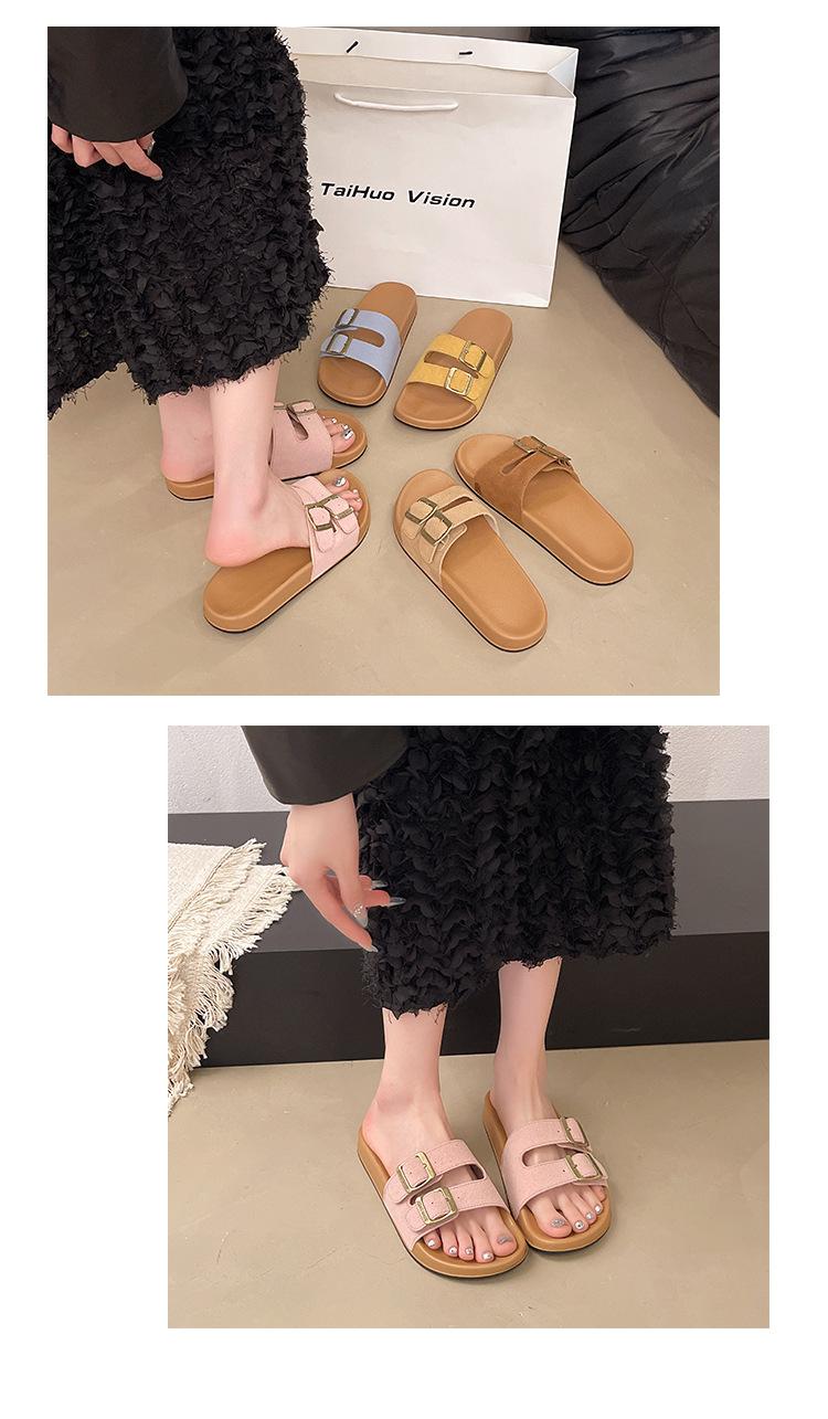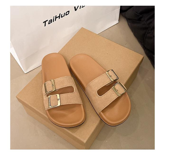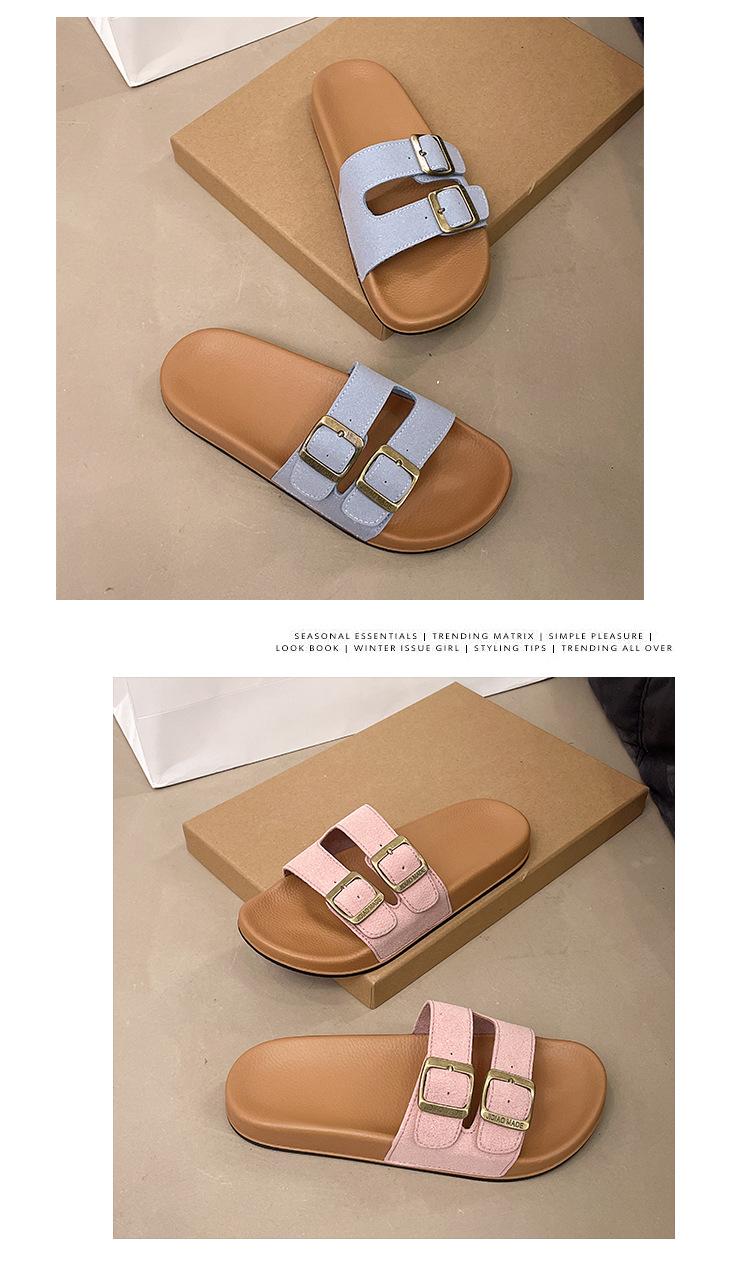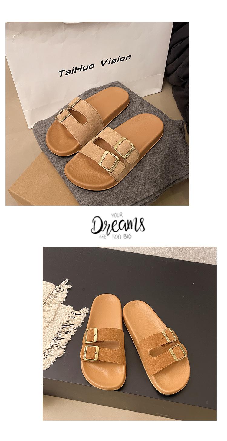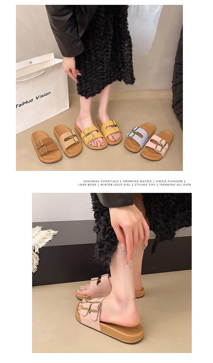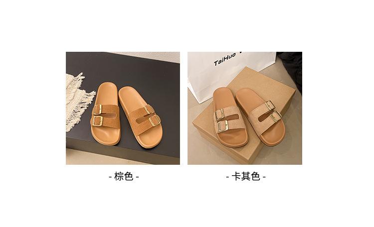 Zapatillas Boken para Mujer 2025 Verano Nuevo Plano Cómodo Zapatos de Mujer con Hebilla de Cinturón Talla Grande Zapatillas de Comercio Exterior