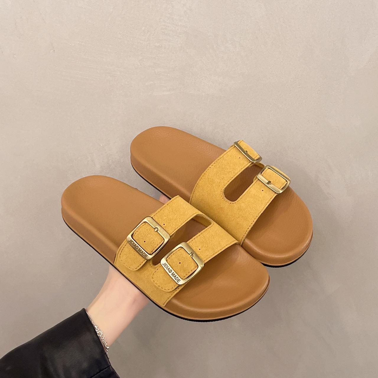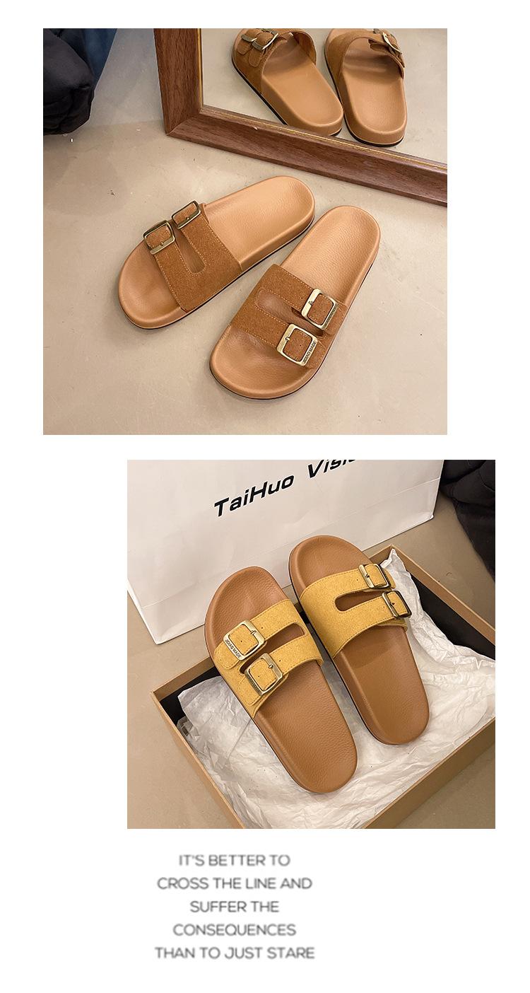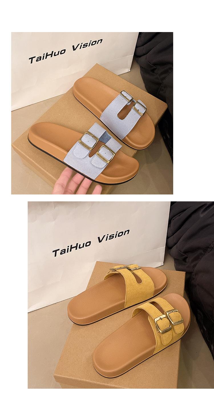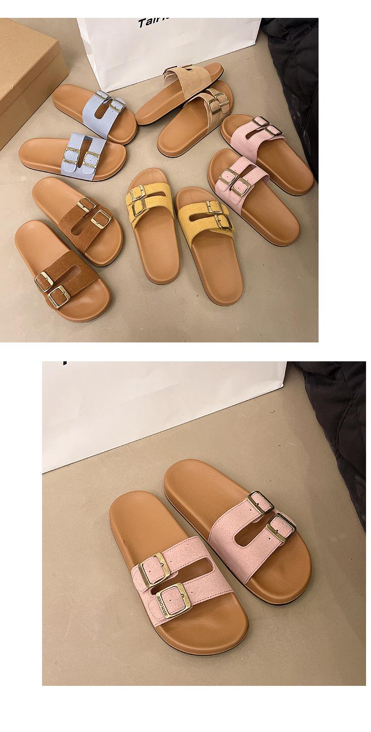 Zapatillas Boken para Mujer 2025 Verano Nuevo Plano Cómodo Zapatos de Mujer con Hebilla de Cinturón Talla Grande Zapatillas de Comercio Exterior