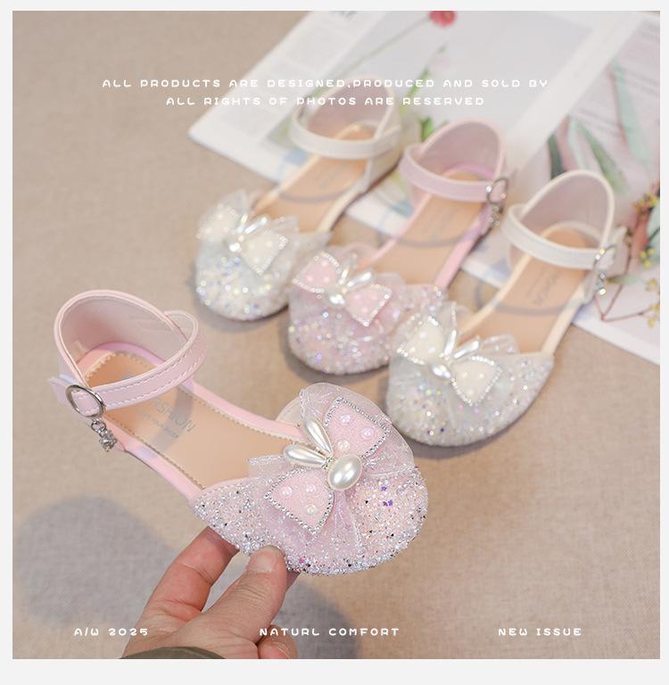 Sandalias para niñas, verano 2025, nuevas, de suela suave, con lazo, para niñas pequeñas.