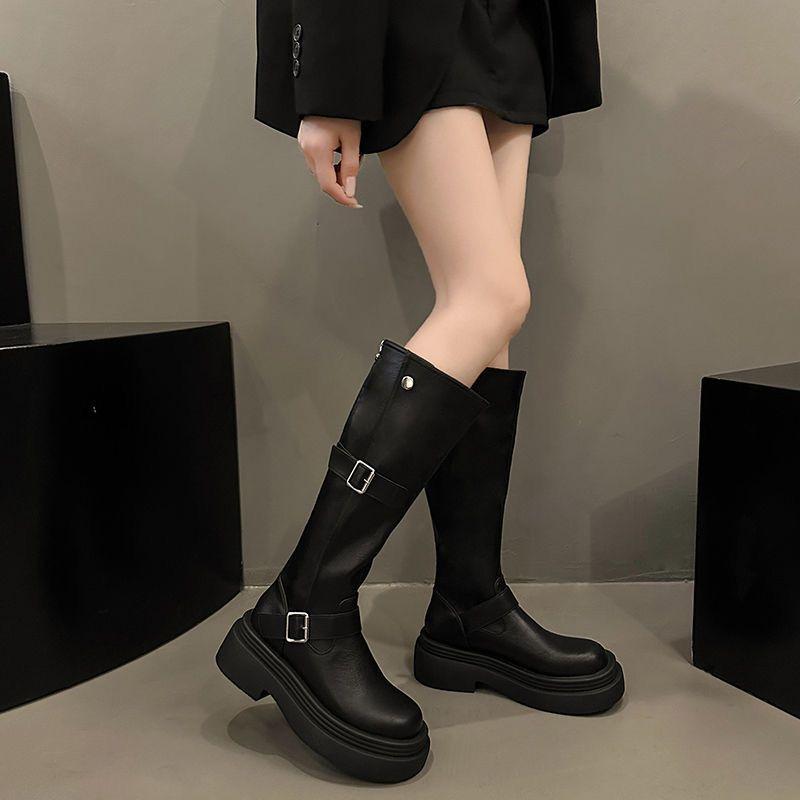 Botas altas de caballero pequeñas, marrones, con tacón grueso y suela gruesa, para mujer, otoño e invierno, 2024