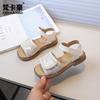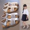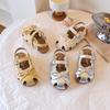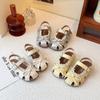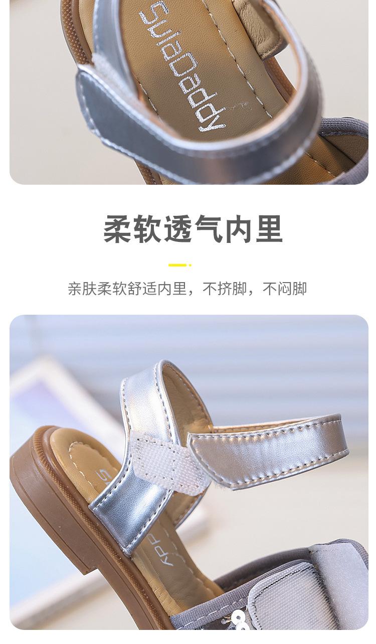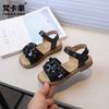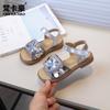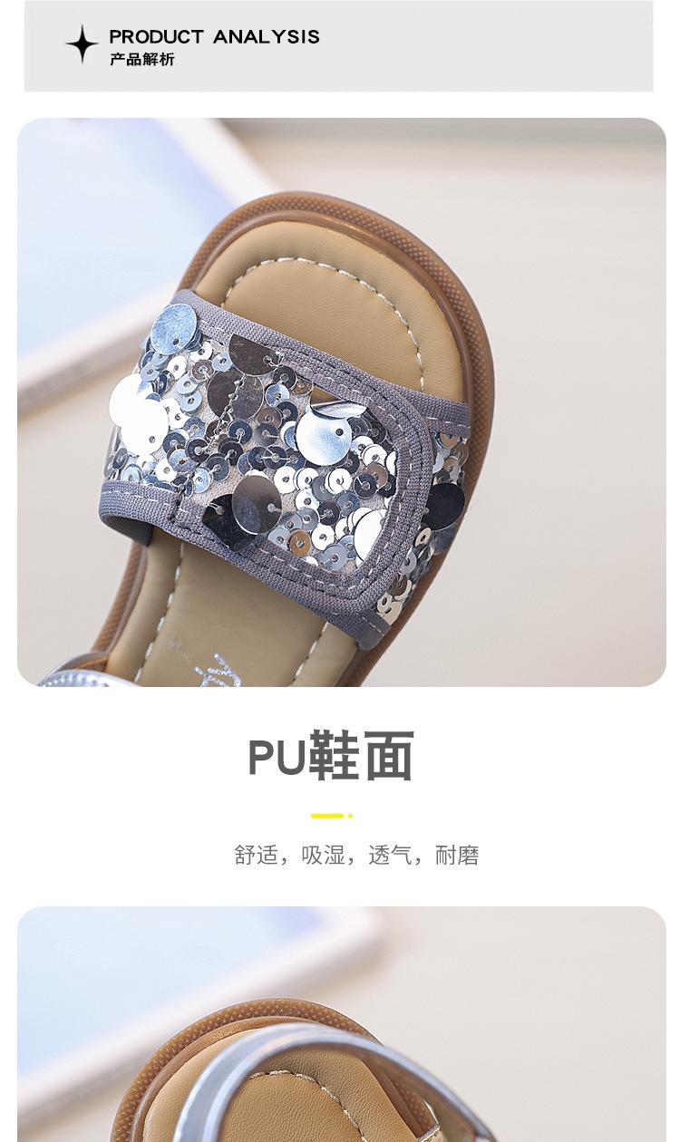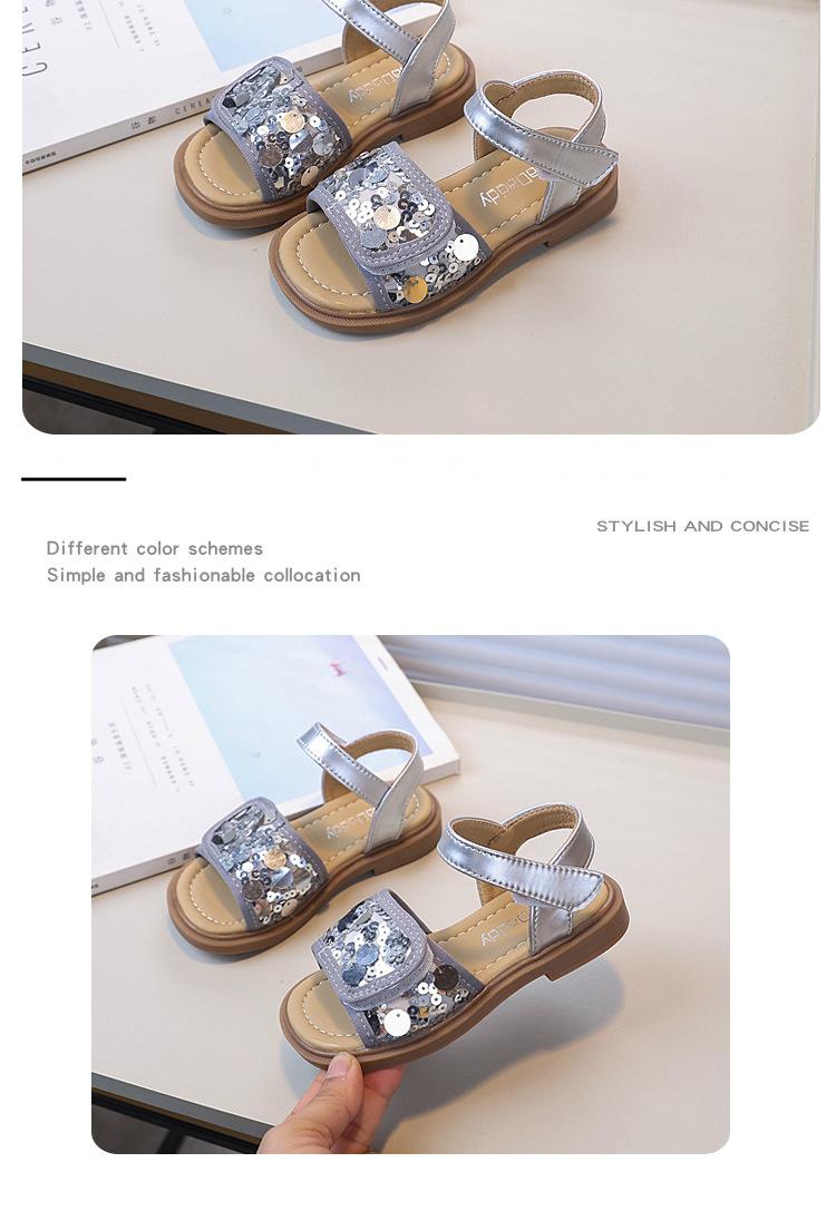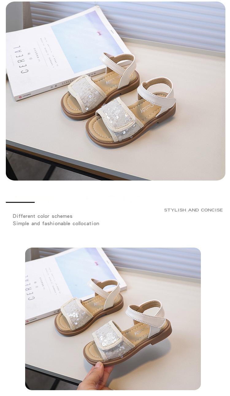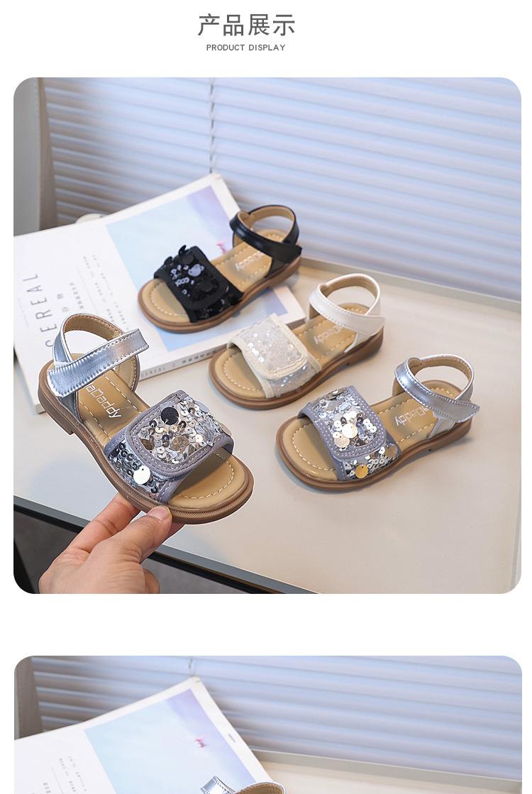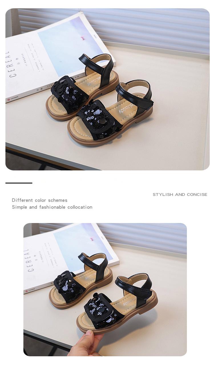 Sandalias de princesa con lentejuelas de moda para niña, verano 2025, estilo coreano, suela suave para niños, sandalias negras