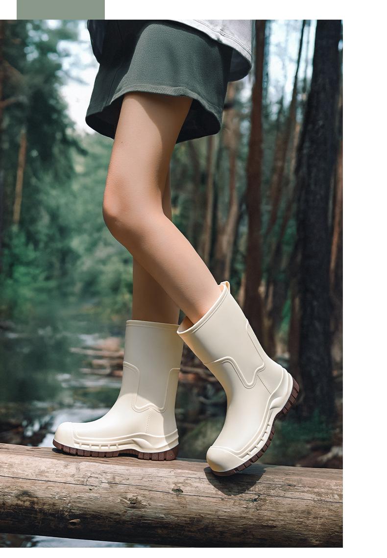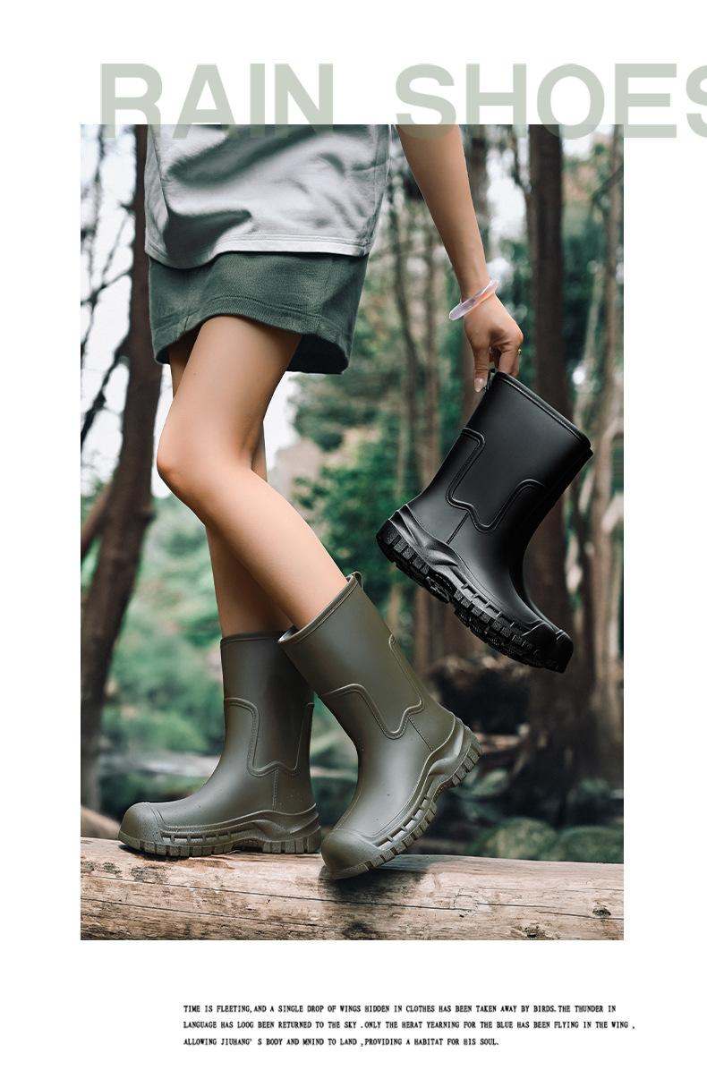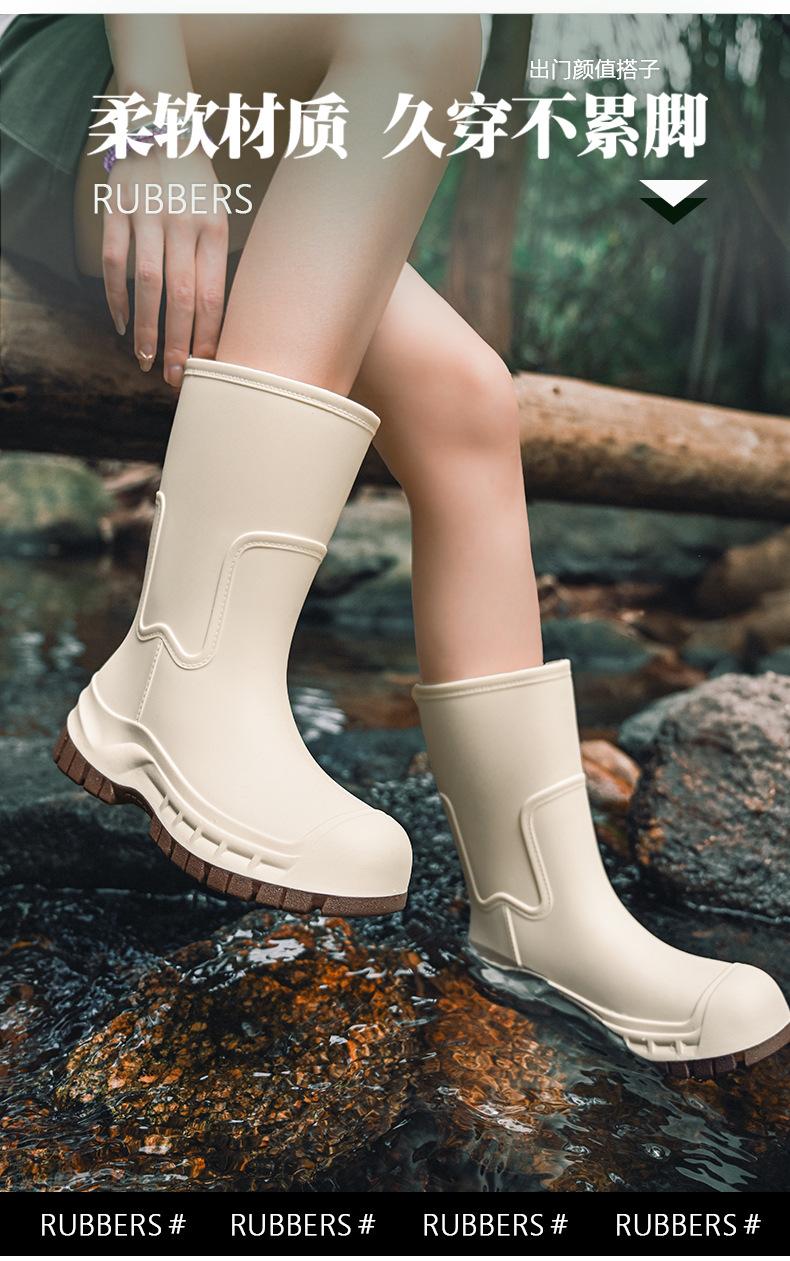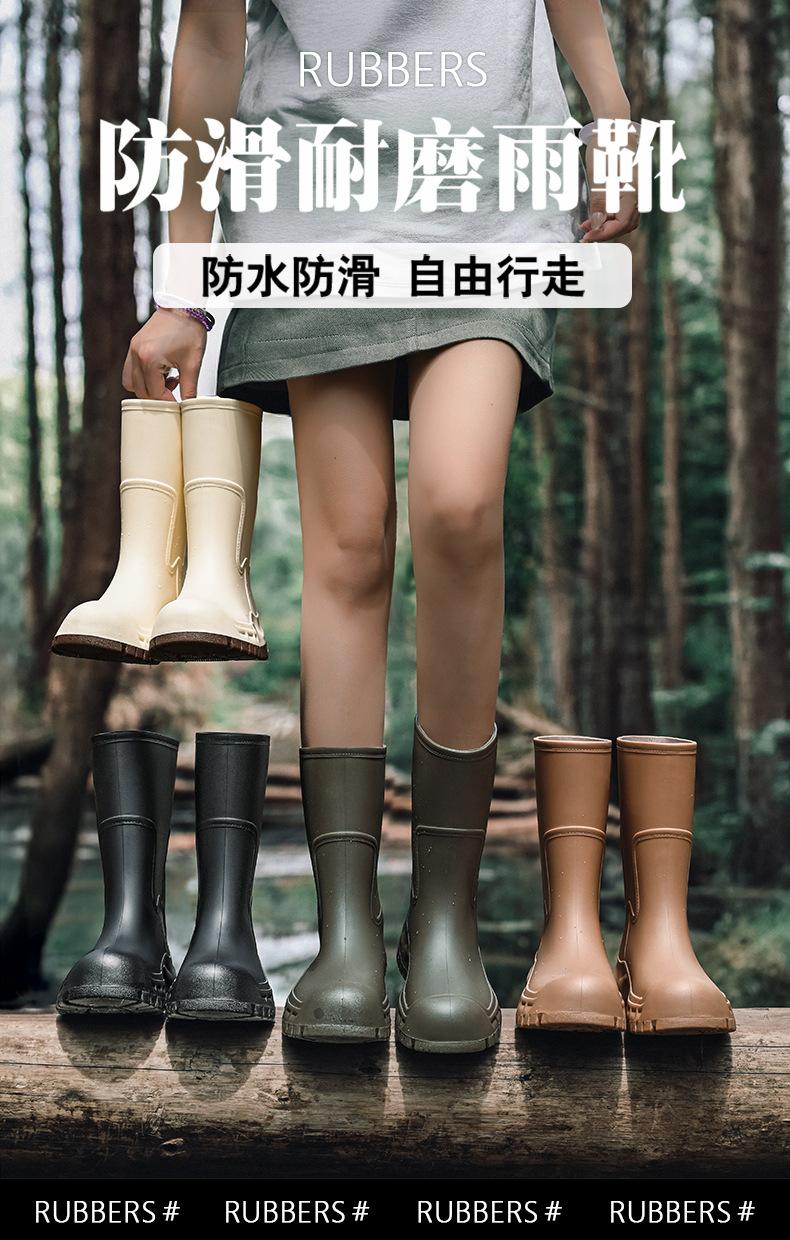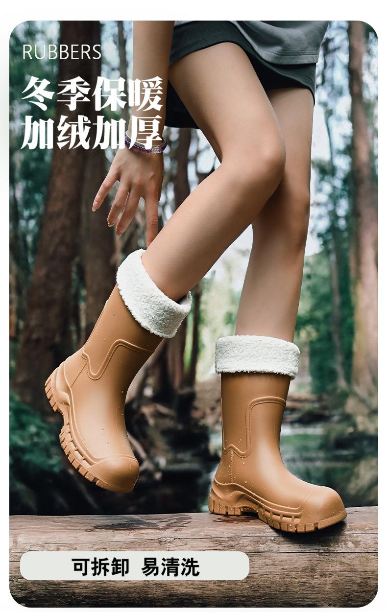 Botas de lluvia transfronterizas entre Japón y Corea del Sur, nuevas botas de agua antideslizantes para exteriores para mujer, botas de agua con fondo grueso, zapatos de goma con forro polar, botas de lluvia