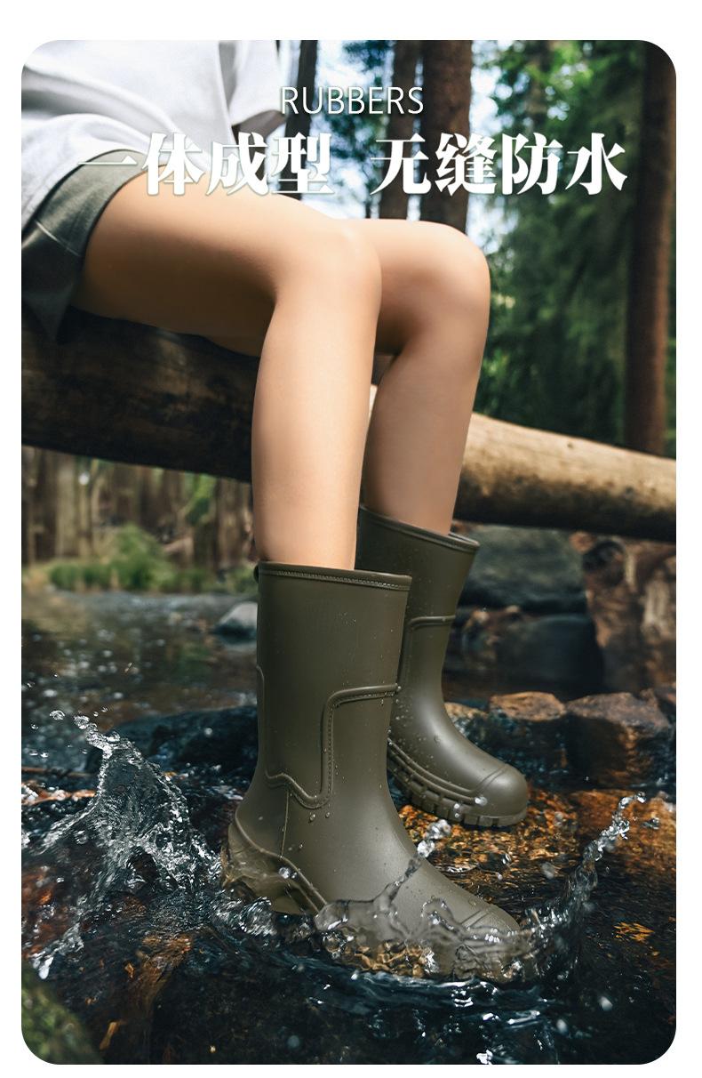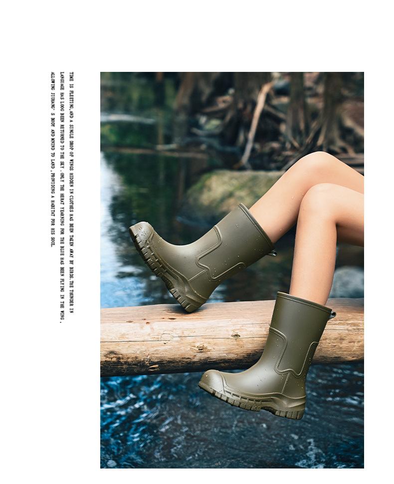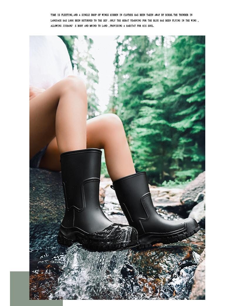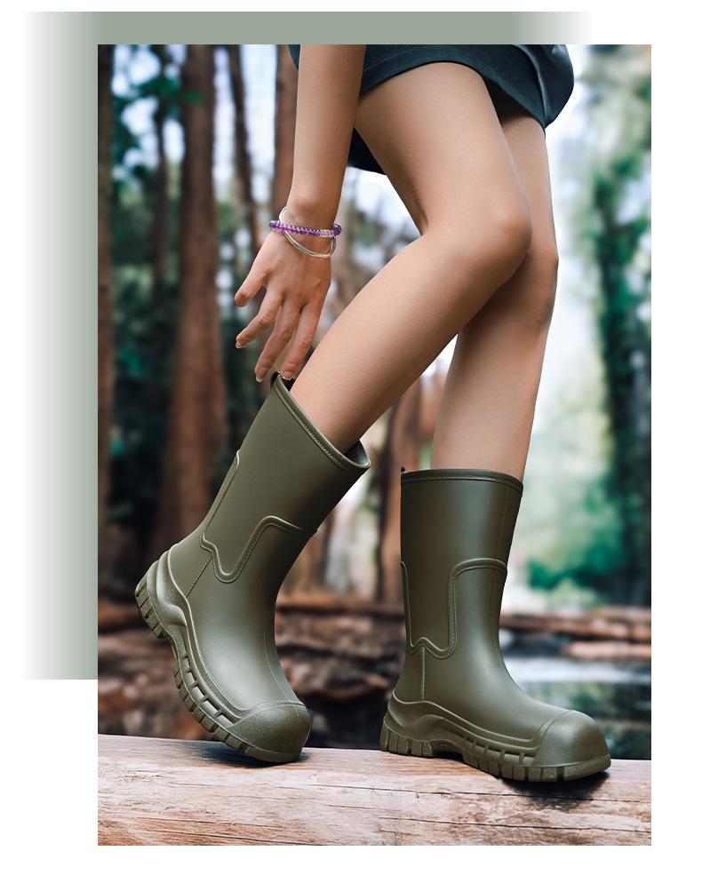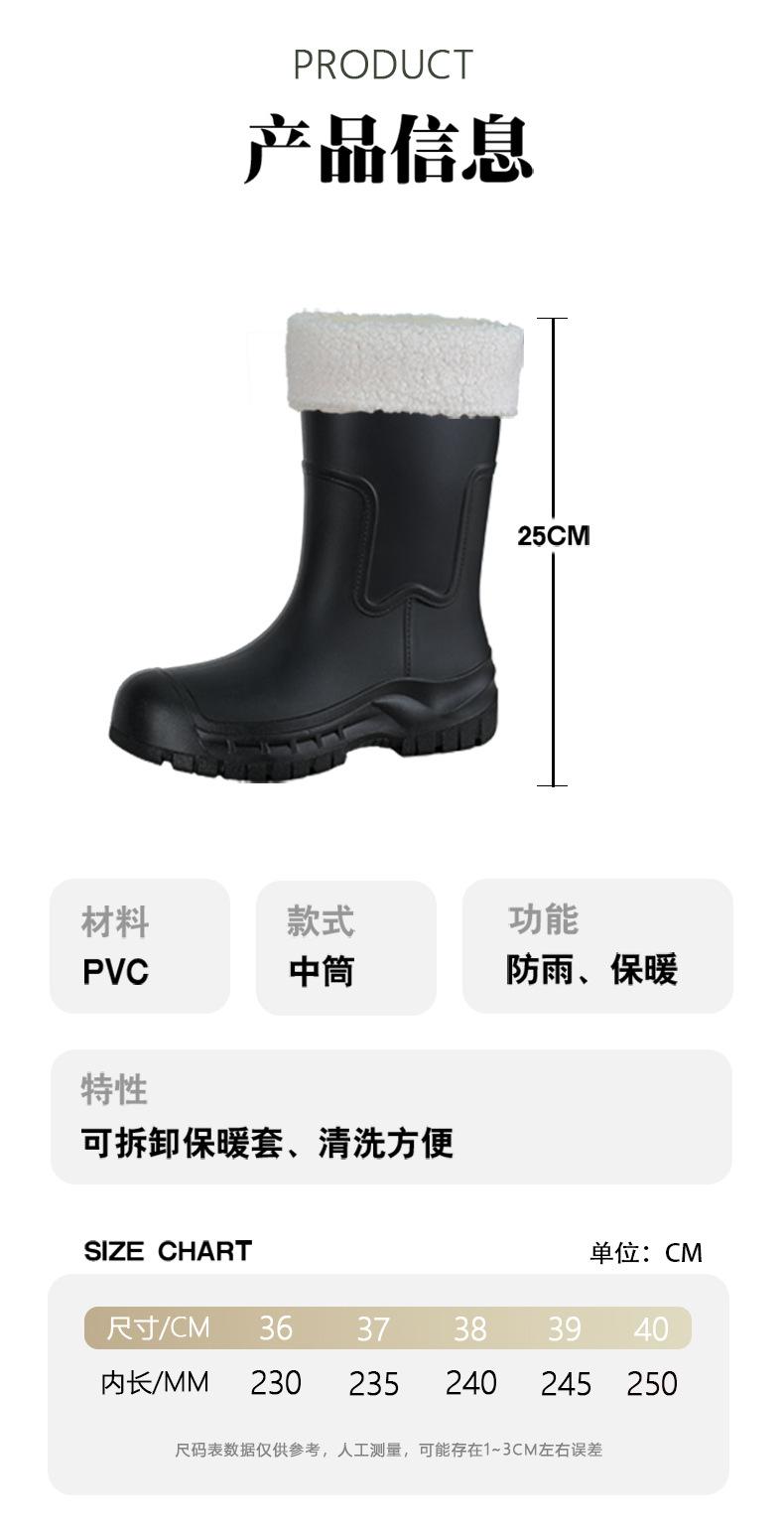 Botas de lluvia transfronterizas entre Japón y Corea del Sur, nuevas botas de agua antideslizantes para exteriores para mujer, botas de agua con fondo grueso, zapatos de goma con forro polar, botas de lluvia