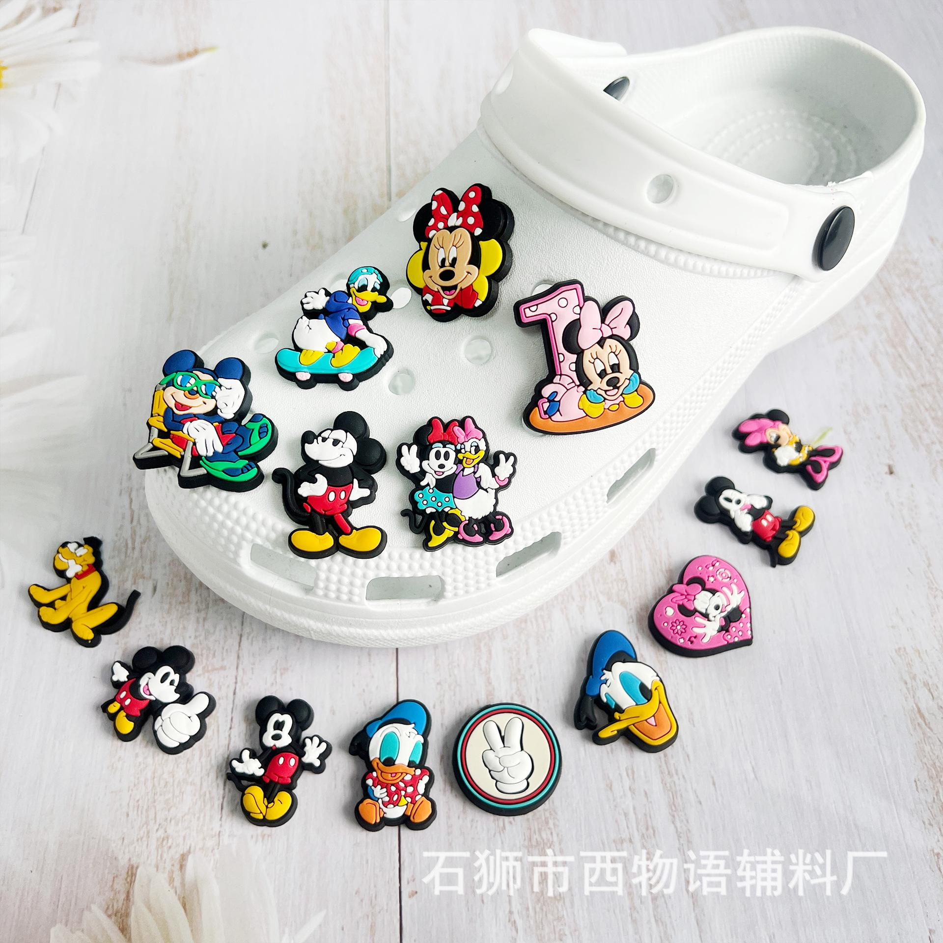 Zapatos de Mickey Mouse con diseño de flor de PVC, de goma suave y con agujeros, con hebilla de alta calidad.