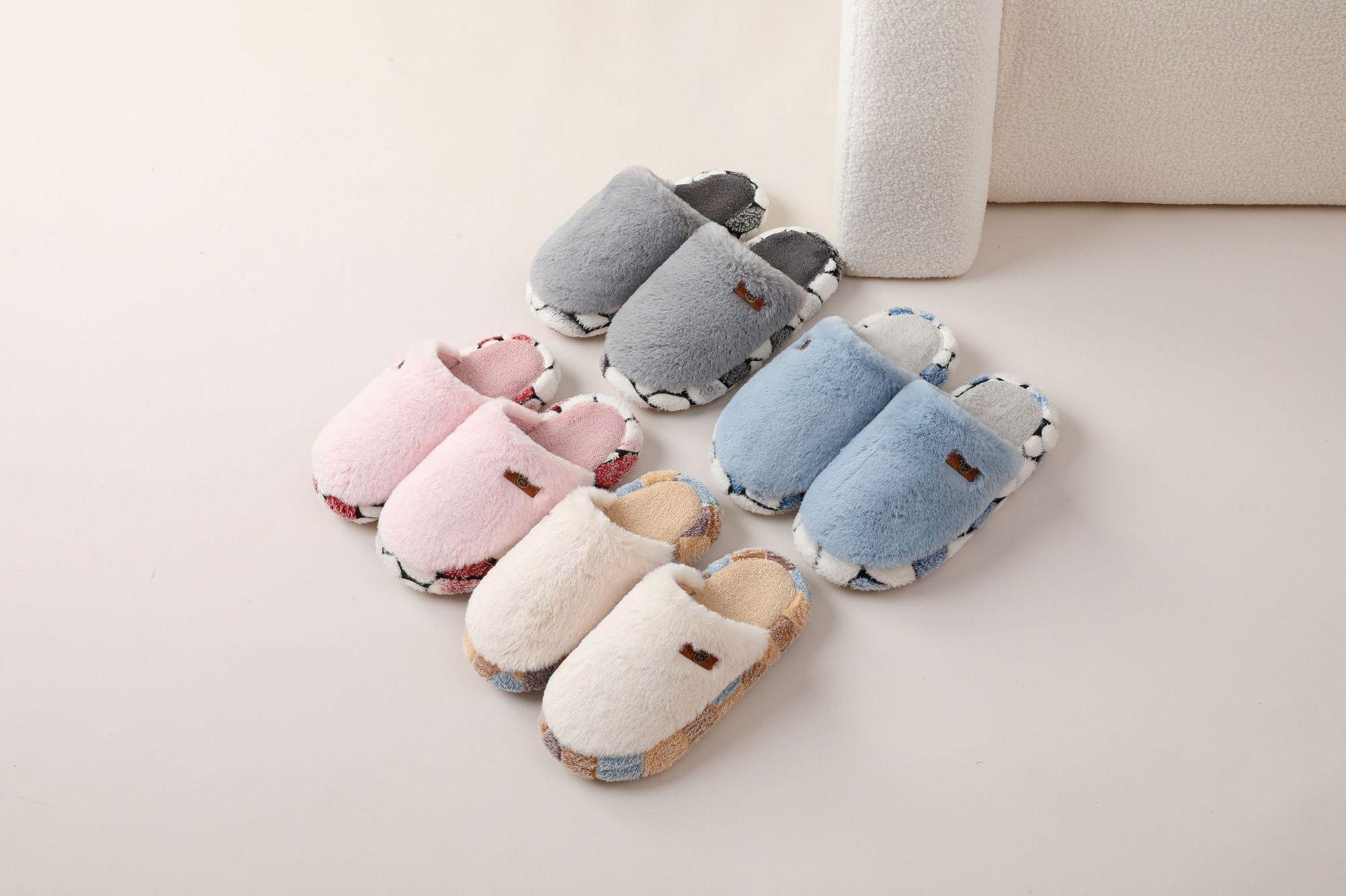 Zapatillas de Algodón de Terciopelo de Cordero de Otoño e Invierno Zapatillas de Algodón de Lana Engrosadas para Interior Hogar Pareja Antideslizantes Cálidas