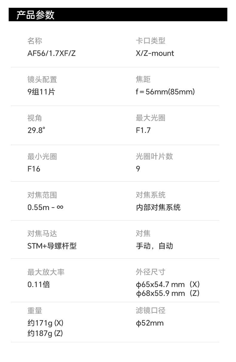 Lente de Enfoque Fijo Vitrox 56mm F1.7 Montura Xf/Z/E Cámara Mirrorless Telemedio Gran Apertura Lente de Enfoque