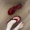 Chanclas Rojas para Mujer, Ropa Exterior de Verano, Chanclas de Moda, Zapatos de Playa Planos Estilo Francés