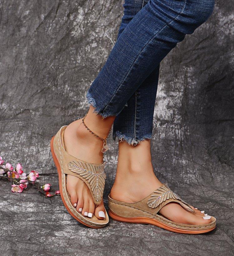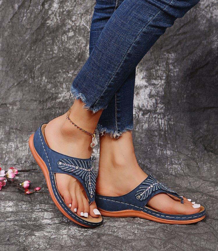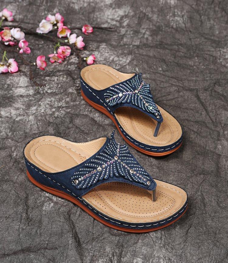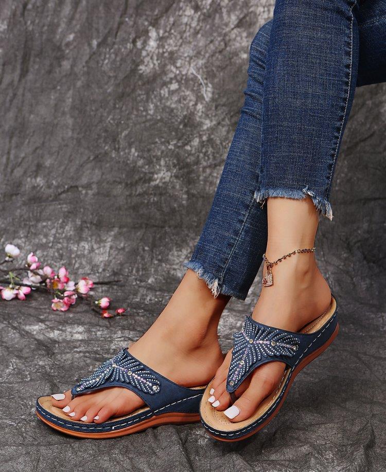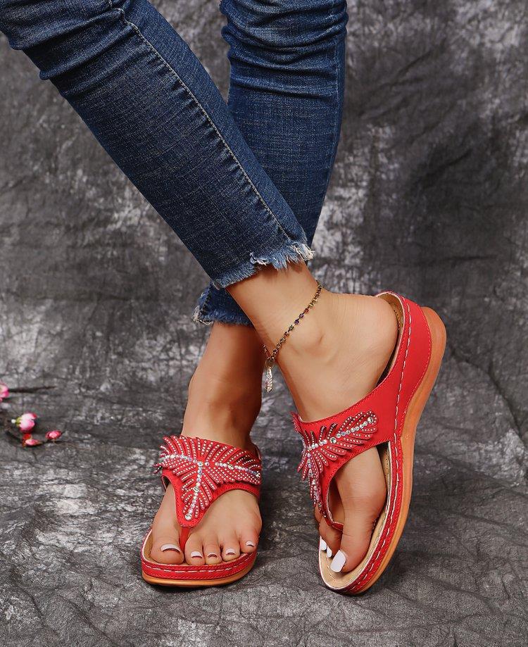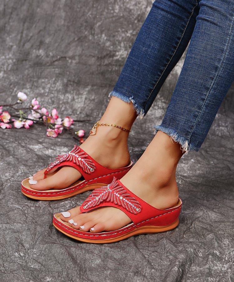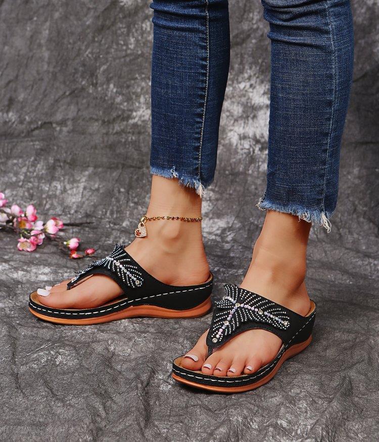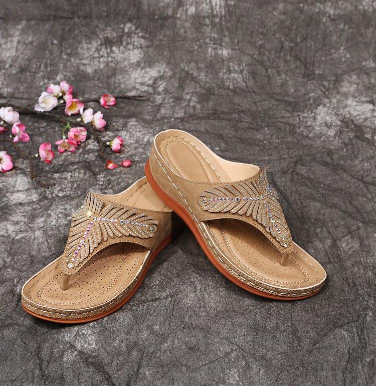 Pantuflas de Nuevo Estilo Europeo y Americano 2022 Sandalias de Cuña con Pedrería de Moda de Verano para Mujer Talla Grande para Comercio Exterior Chanclas de Suela Gruesa