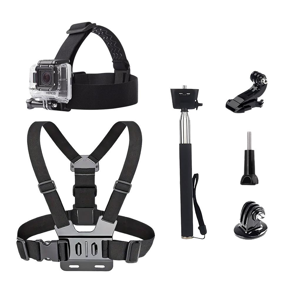 Adecuado para accesorios GoPro, traje 6 en 1, correa para el pecho, diadema, palo para selfies, accesorios para cámara deportiva, traje de montar