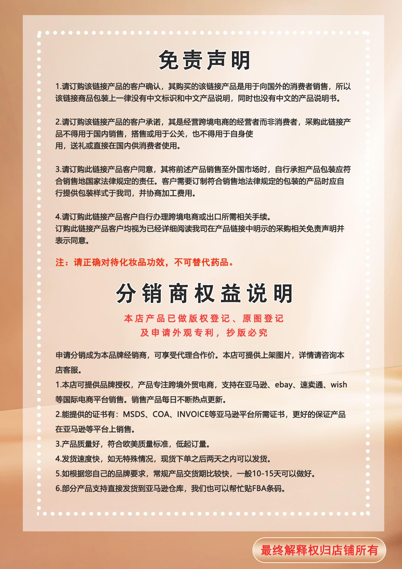 Nuestra empresa vende productos transfronterizos, y este producto es solo para vendedores en plataformas extranjeras, como Amazon, eBay, wish, TEMU, AliExpress, Estación Internacional, etc.No para el mercado nacional(Solo para exhibición),¡No comprar para ventas nacionales/uso propio! (Solo para ventas de exportación de comercio exterior, las ventas nacionales o el uso propio están prohibidos, la compra equivale a la exención de responsabilidad por defecto y la asunción de responsabilidad) .,Todos los distribuidores no deben utilizar para ventas dentro de China, ni aceptar pedidos nacionales de consumidores chinos para ventas. El comprador asumirá la responsabilidad por cualquier problema que surja.