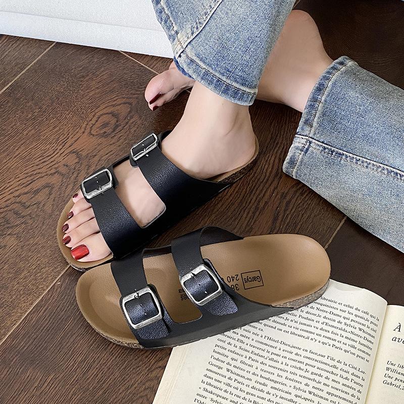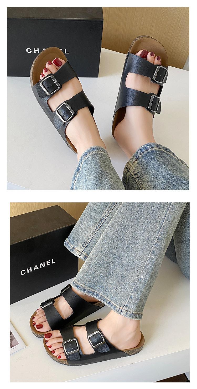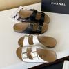 Transfronterizo 2025 Nuevo Retro Francés Fondo Grueso Doble Hebilla Sandalias y Pantuflas Francesas para Hombre y Mujer con Comercio Exterior en Verano