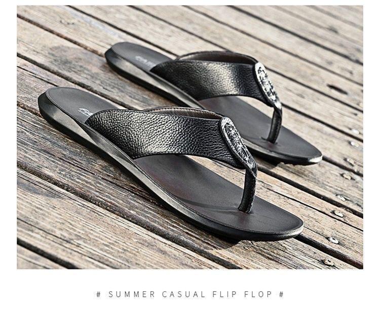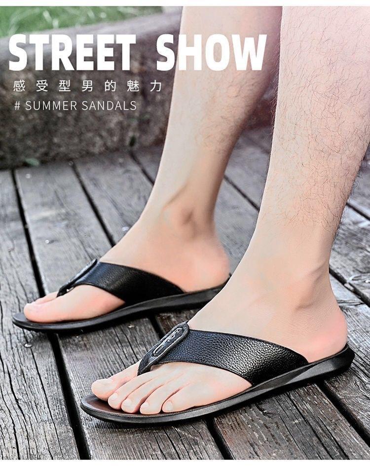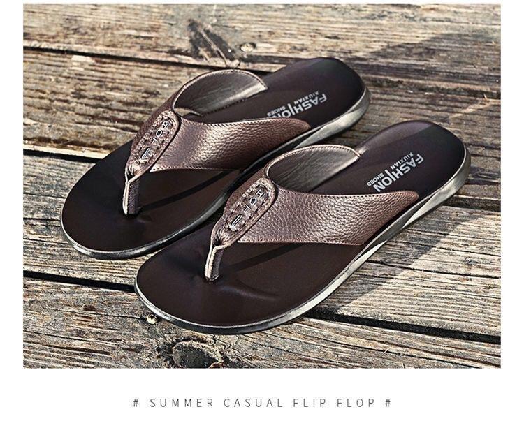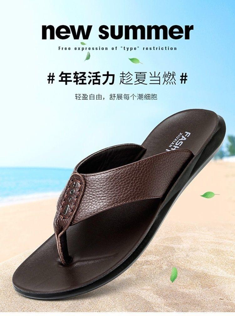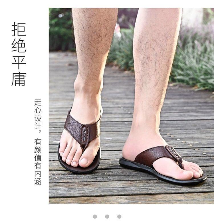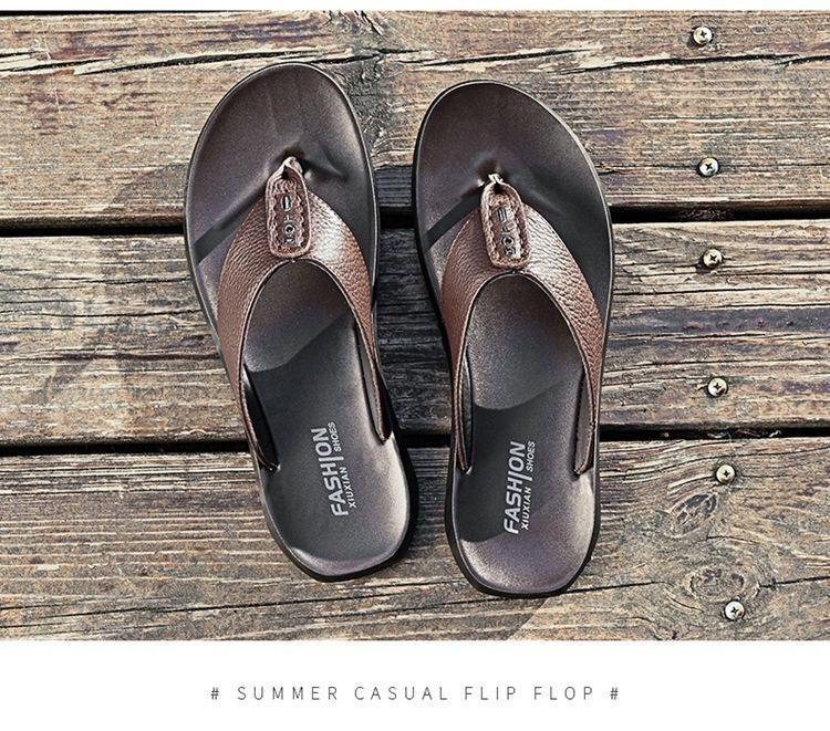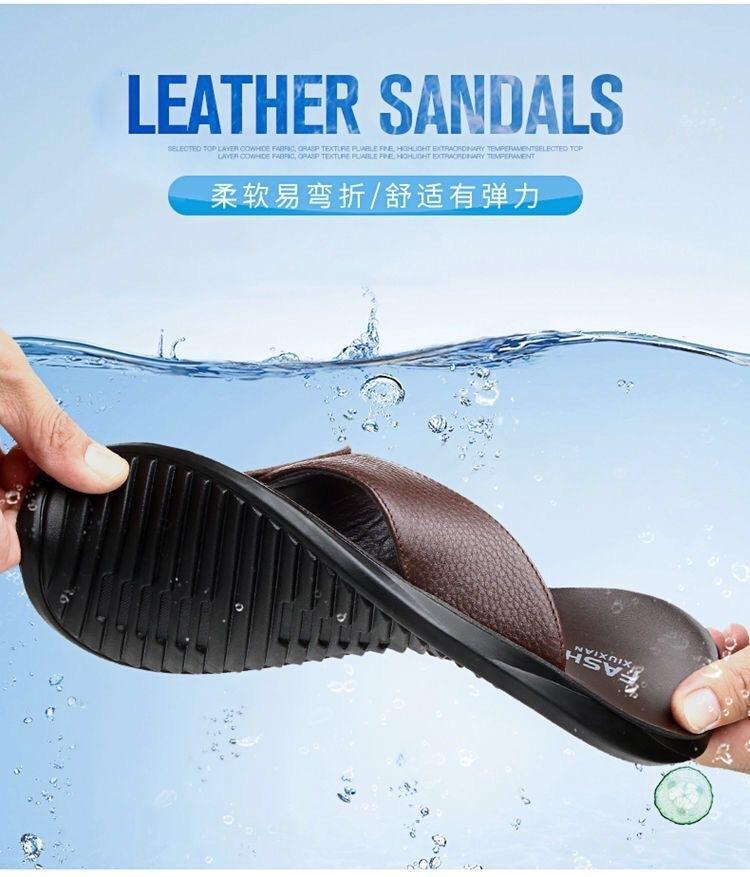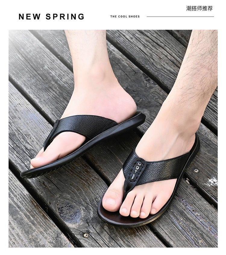 Chanclas de Cuero Genuino Transfronterizas para Hombre Verano 2025 Nuevo Verano Ropa de Exterior Sandalias de Cuero Genuino para Hombre Pantuflas Desodorantes Antideslizantes