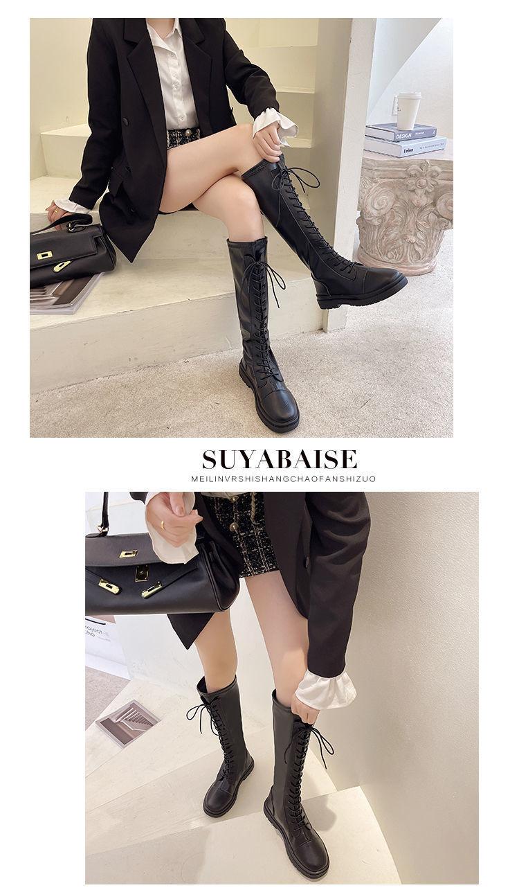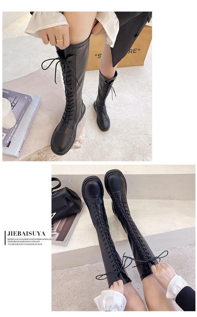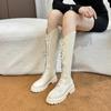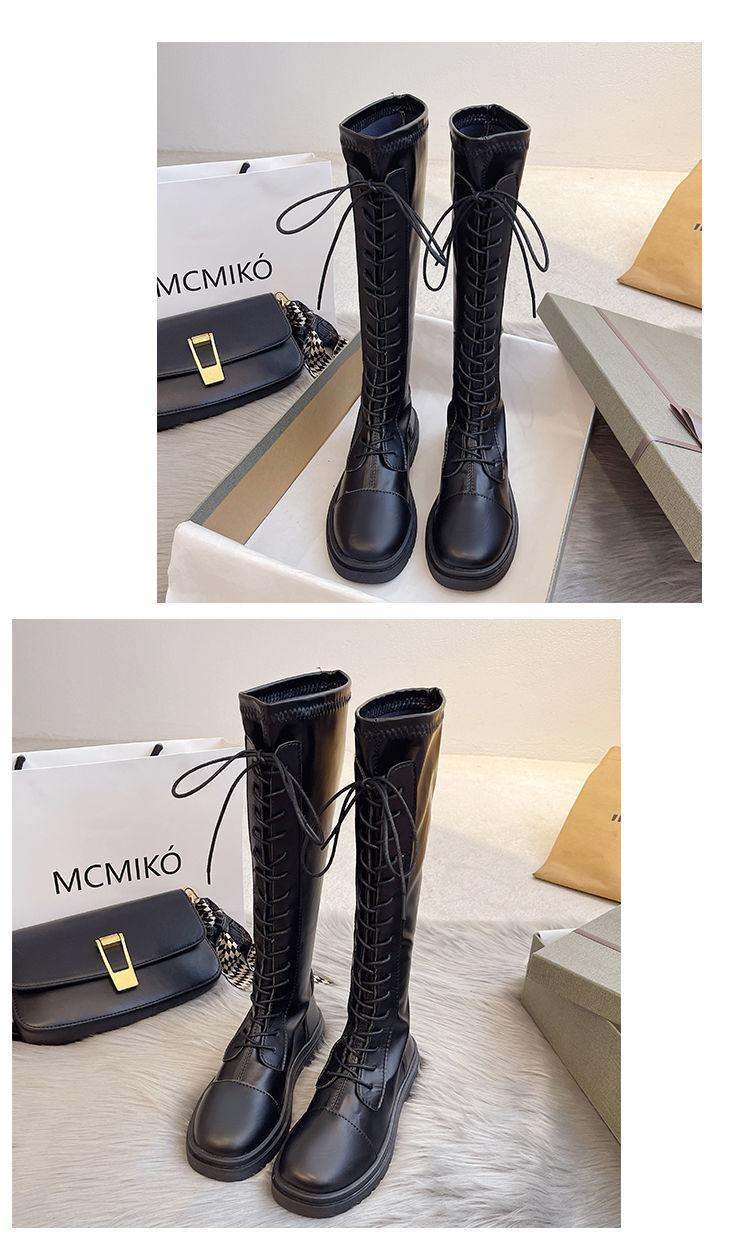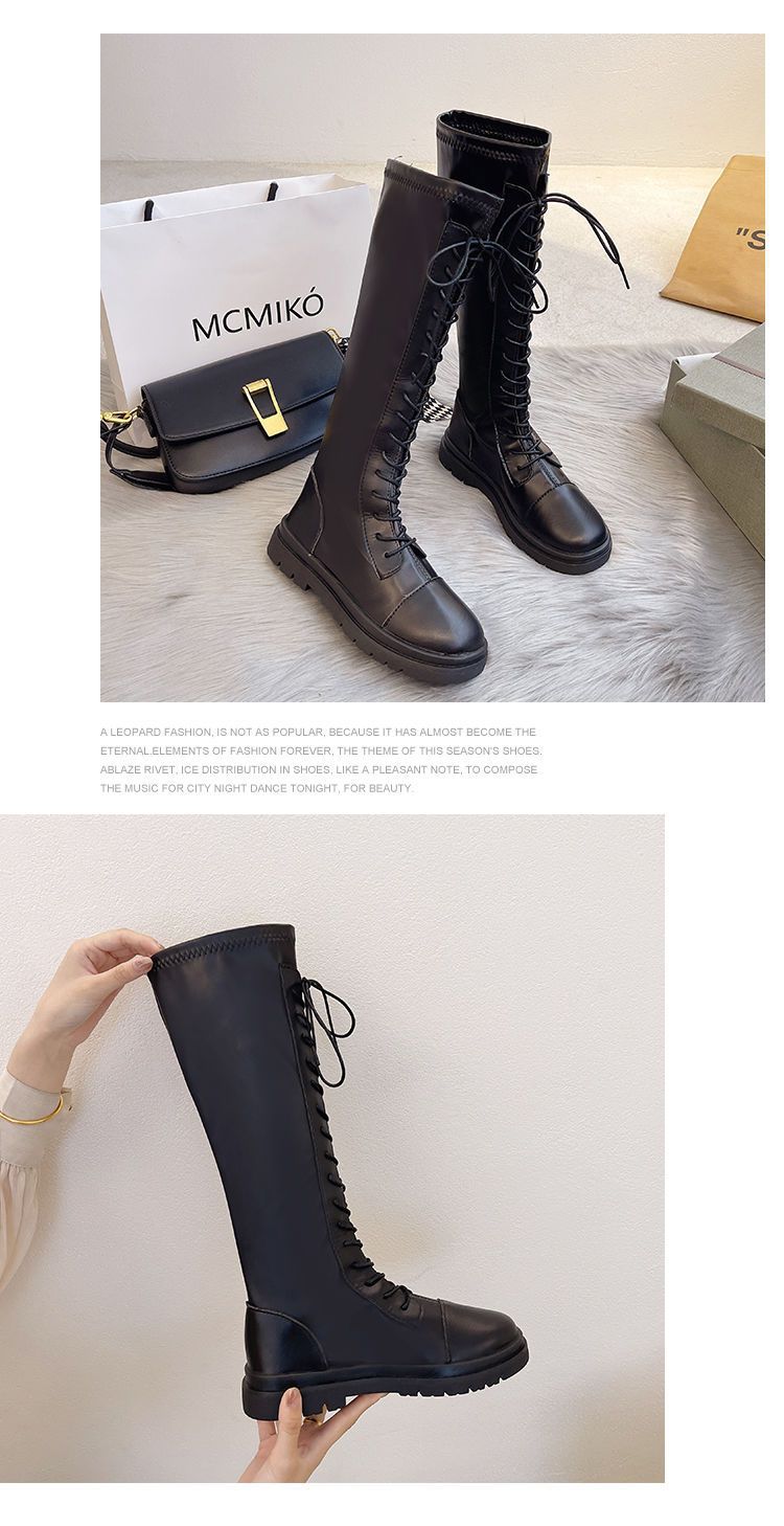 Botas altas de caballero para mujer 2021, nuevas botas hasta la rodilla con suela gruesa que combinan con todo, botas de cuero elástico adelgazante a la moda