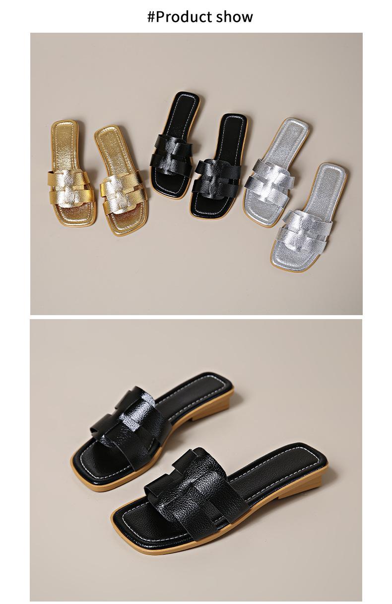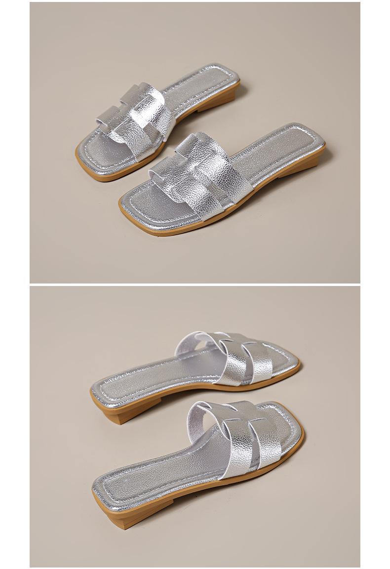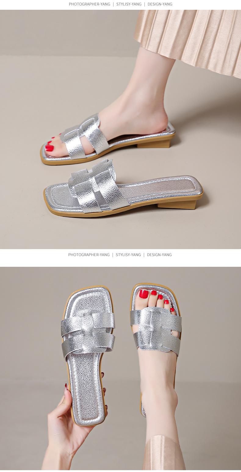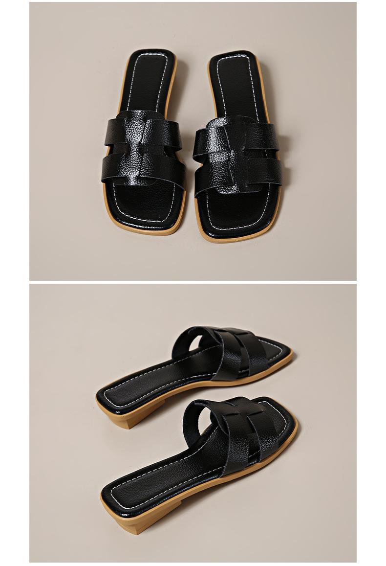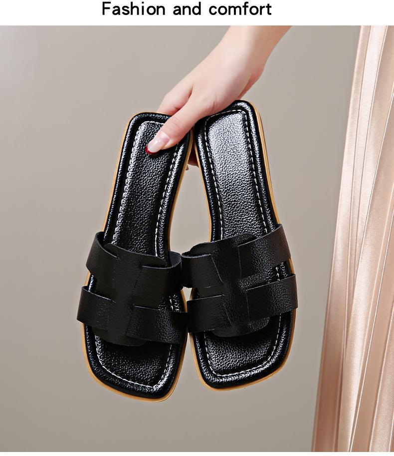 Talla grande Pantuflas Planas Cuadradas para Mujer 2025 Verano Nuevo Color Sólido Simple Tacón Bajo Casual Sandalias y Pantuflas de Playa