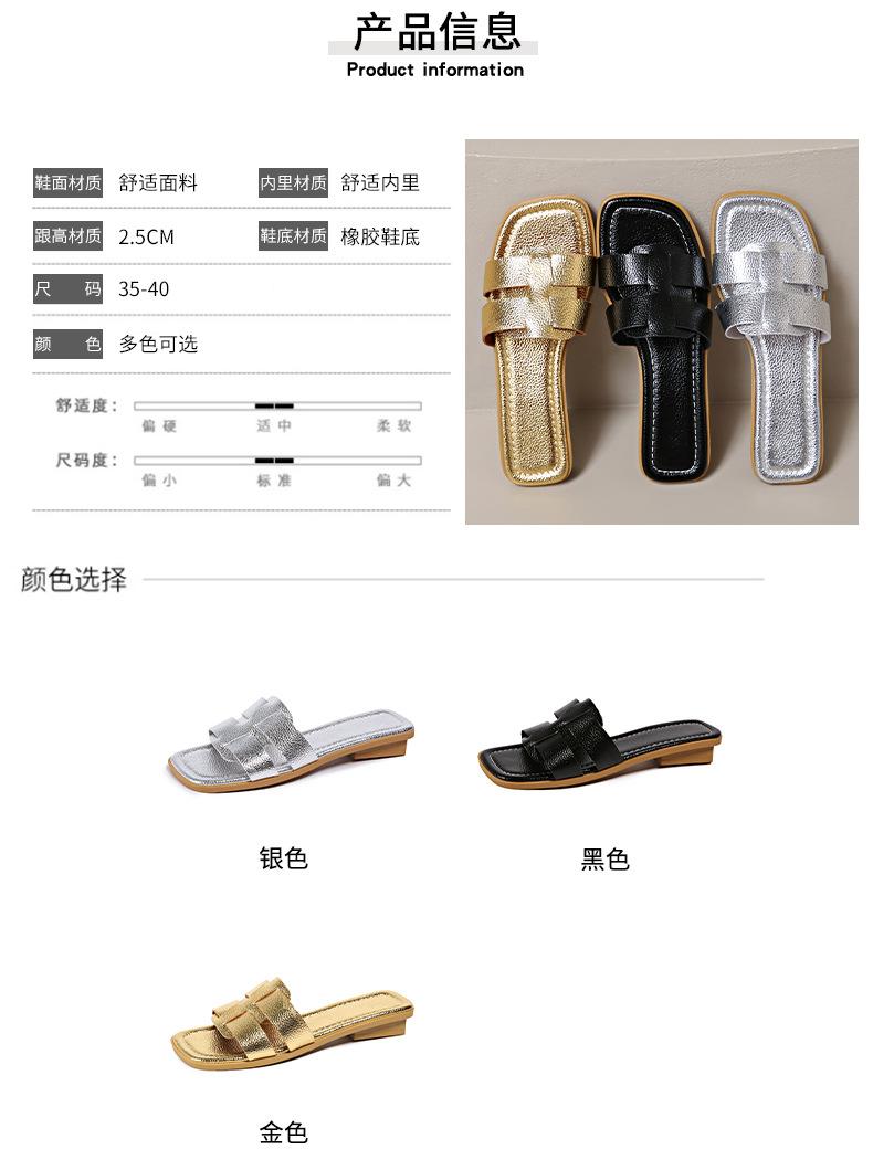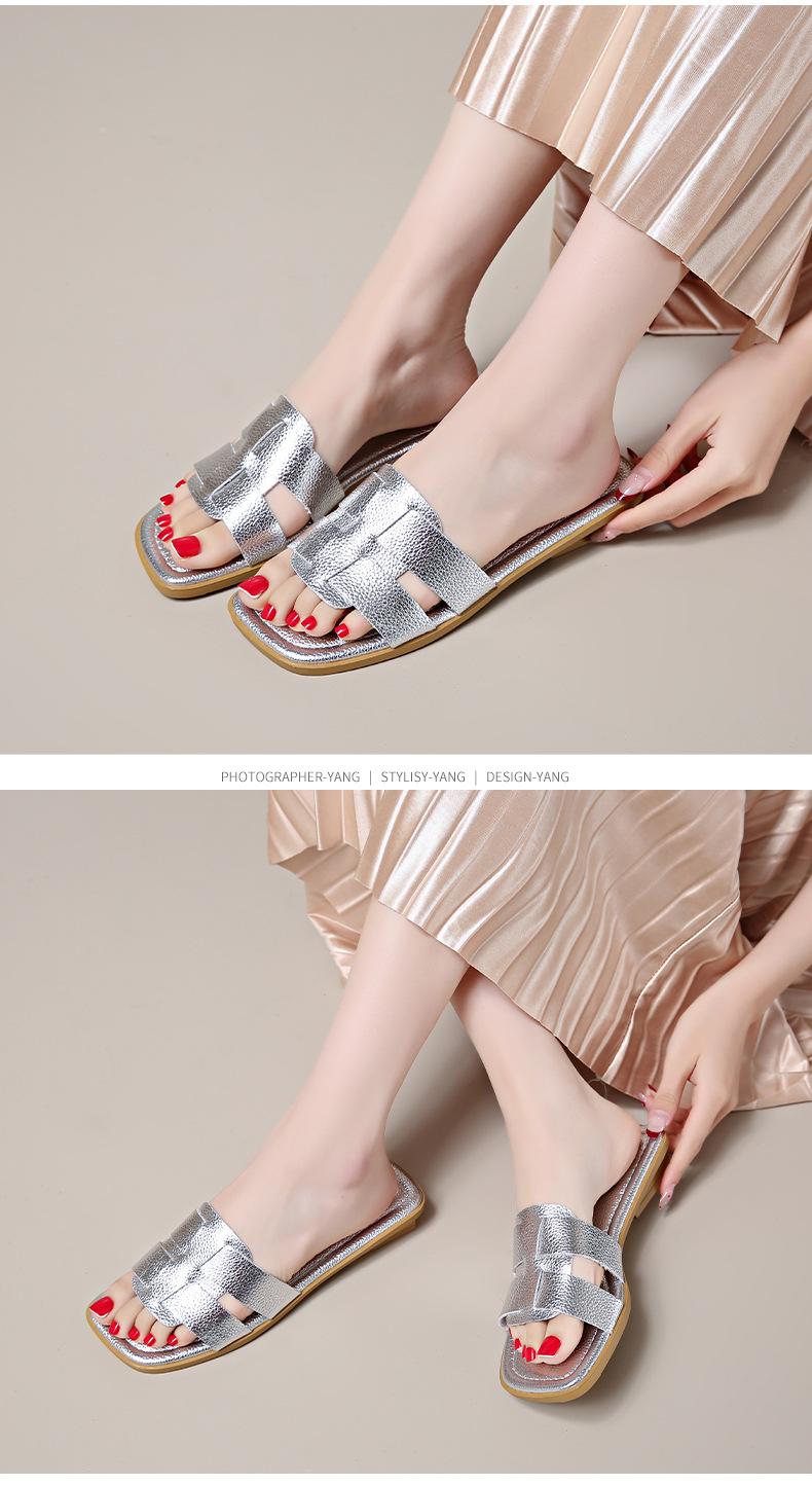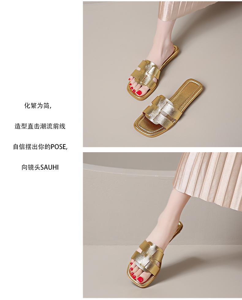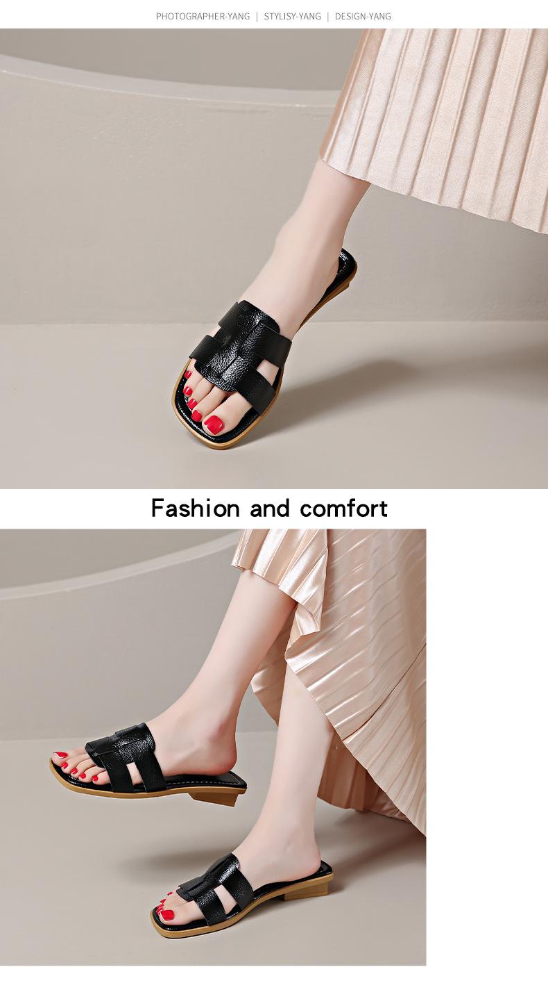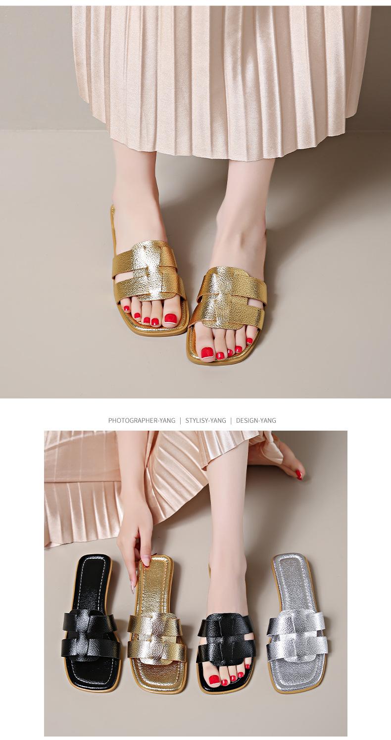 Talla grande Pantuflas Planas Cuadradas para Mujer 2025 Verano Nuevo Color Sólido Simple Tacón Bajo Casual Sandalias y Pantuflas de Playa