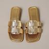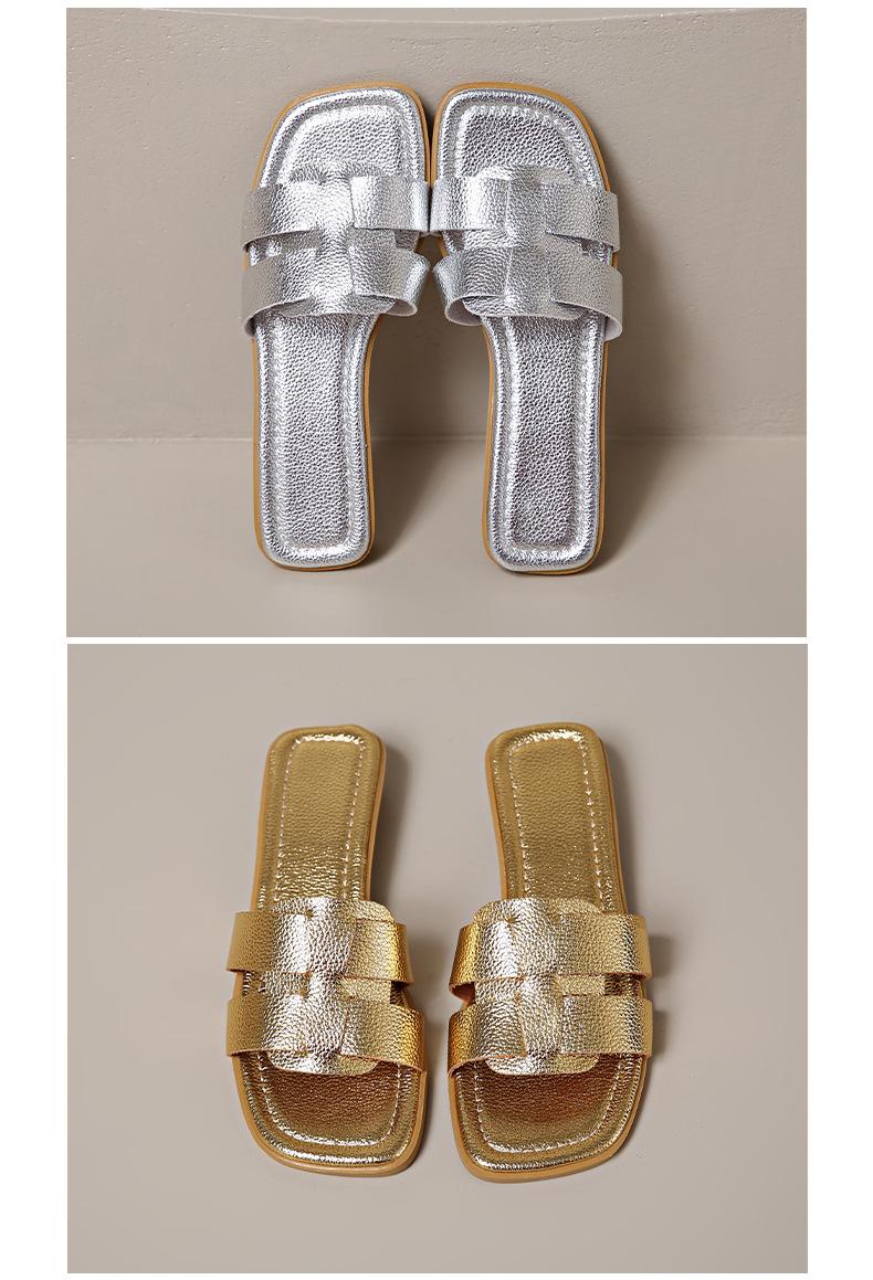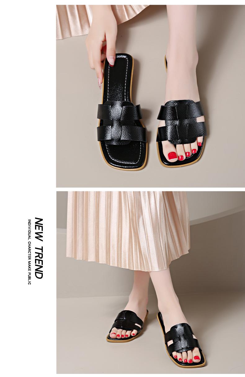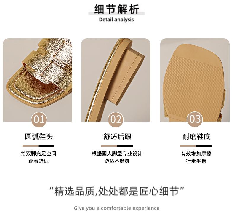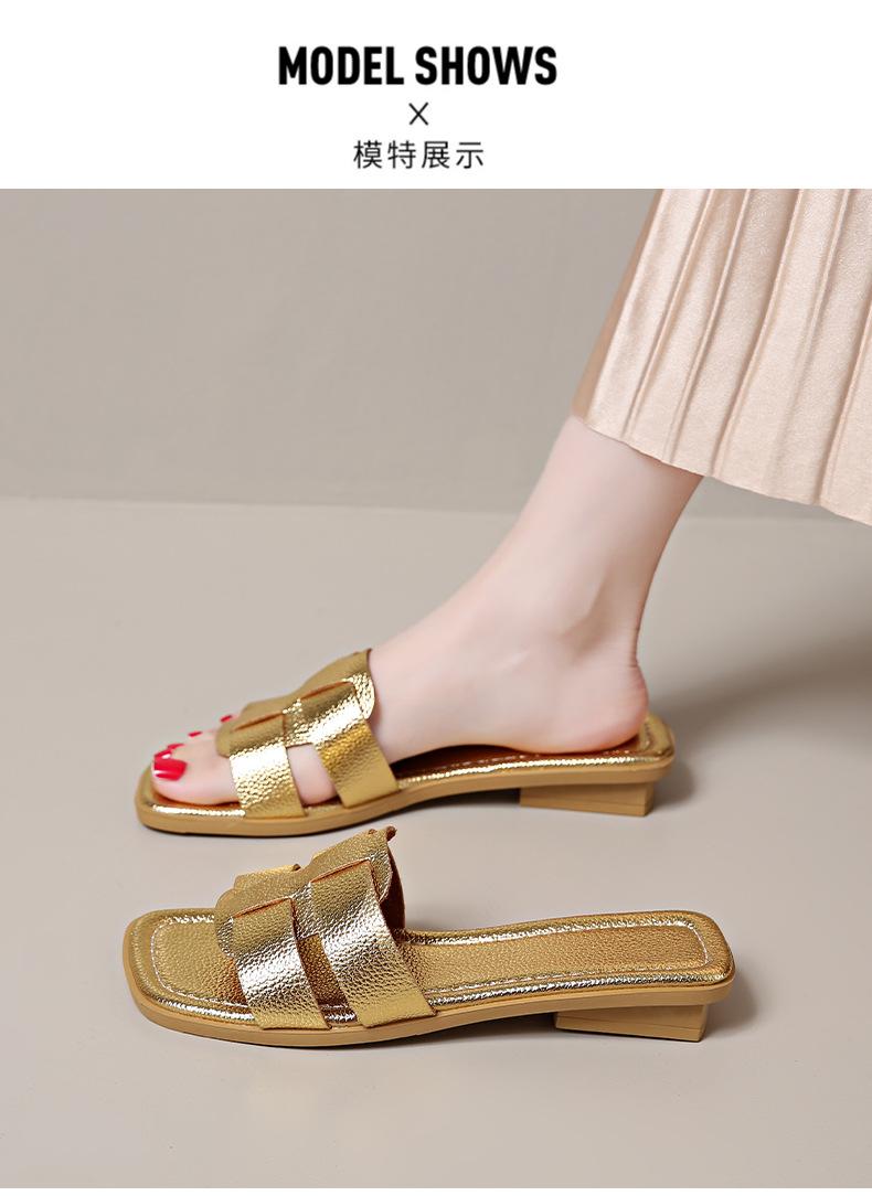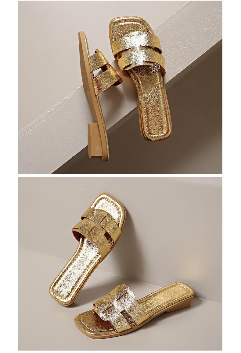Talla grande Pantuflas Planas Cuadradas para Mujer 2025 Verano Nuevo Color Sólido Simple Tacón Bajo Casual Sandalias y Pantuflas de Playa